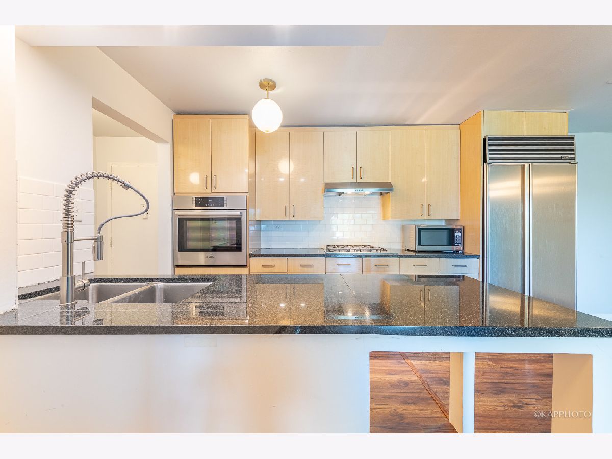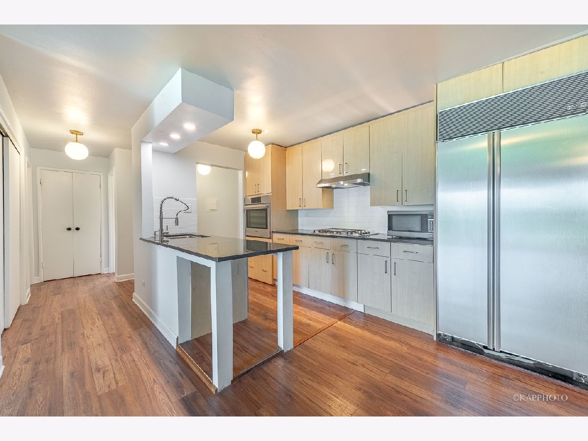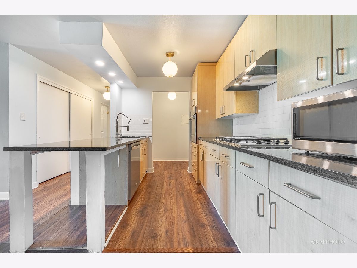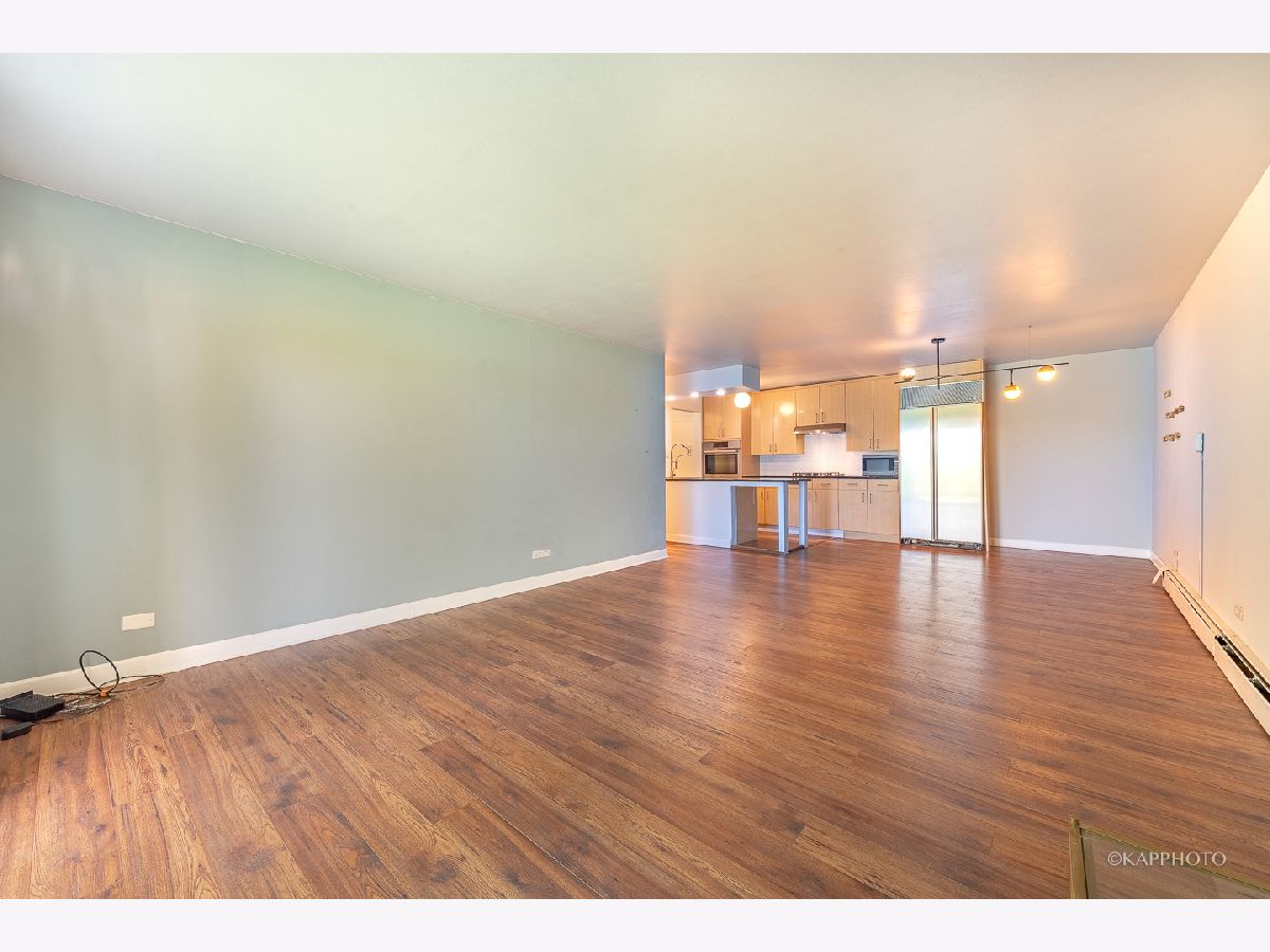 Beautiful, remodeled 1 bed/1 bath condo located in the quiet Royal Glen condo! Freshly painted! Property features modern kitchen with contemporary kitchen cabinets, granite countertops, full-tiled backsplash, high-end stainless steel appliances (Bosch oven, SubZero counter depth refrigerator), & more. Open concept floorplan - large living room is filled with natural light & a dedicated dining area. Generous-sized balcony oversees the greenery space. Oversized bedroom comes with plenty of closet space. Updated bathroom with soaking tub & subway tiles. Newer flooring & light fixtures. Building offers huge lobby with sitting areas on the main floor, updated party/community room, in-ground pool, & more. Conveniently located - close to park, restaurants, expressways, golf course, shopping center, & grocery stores. Move in now!