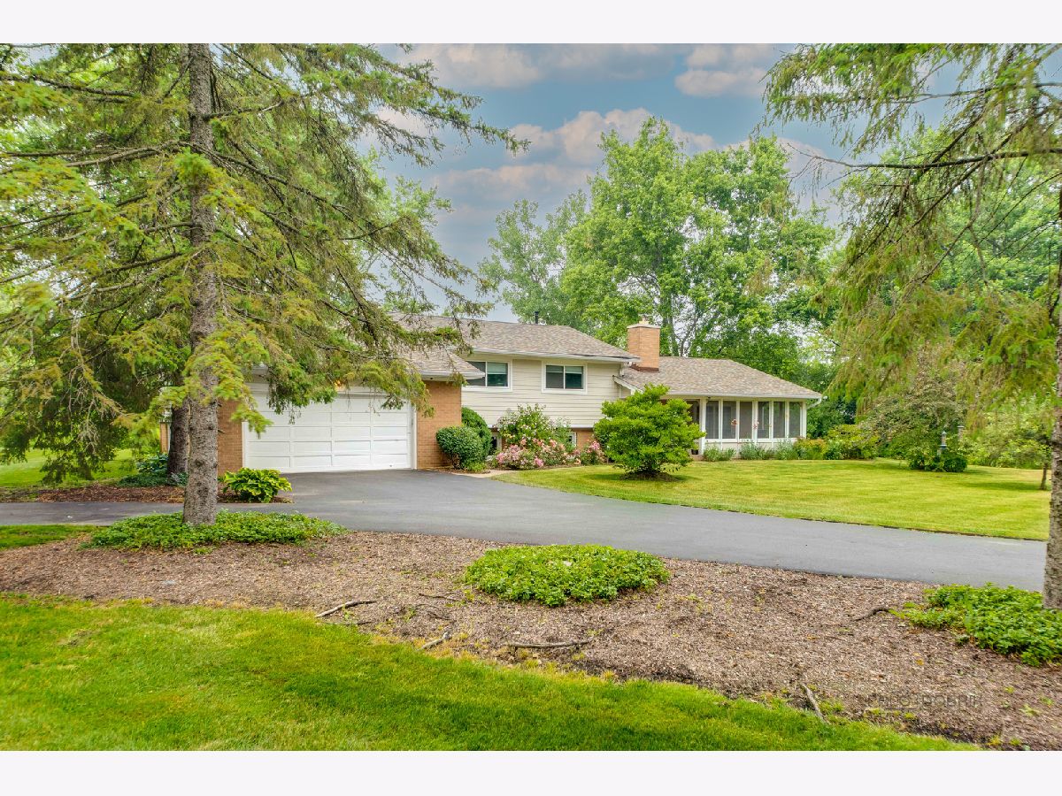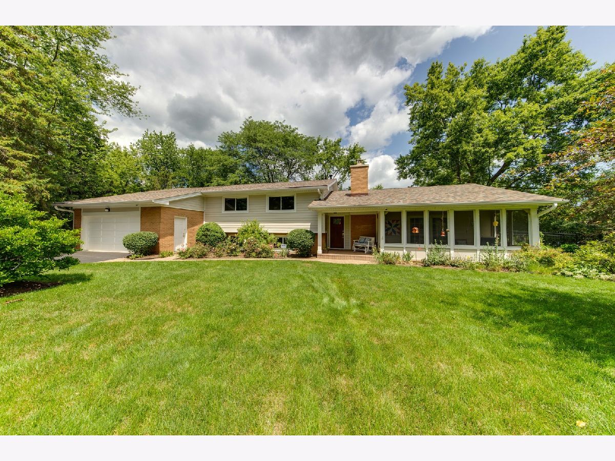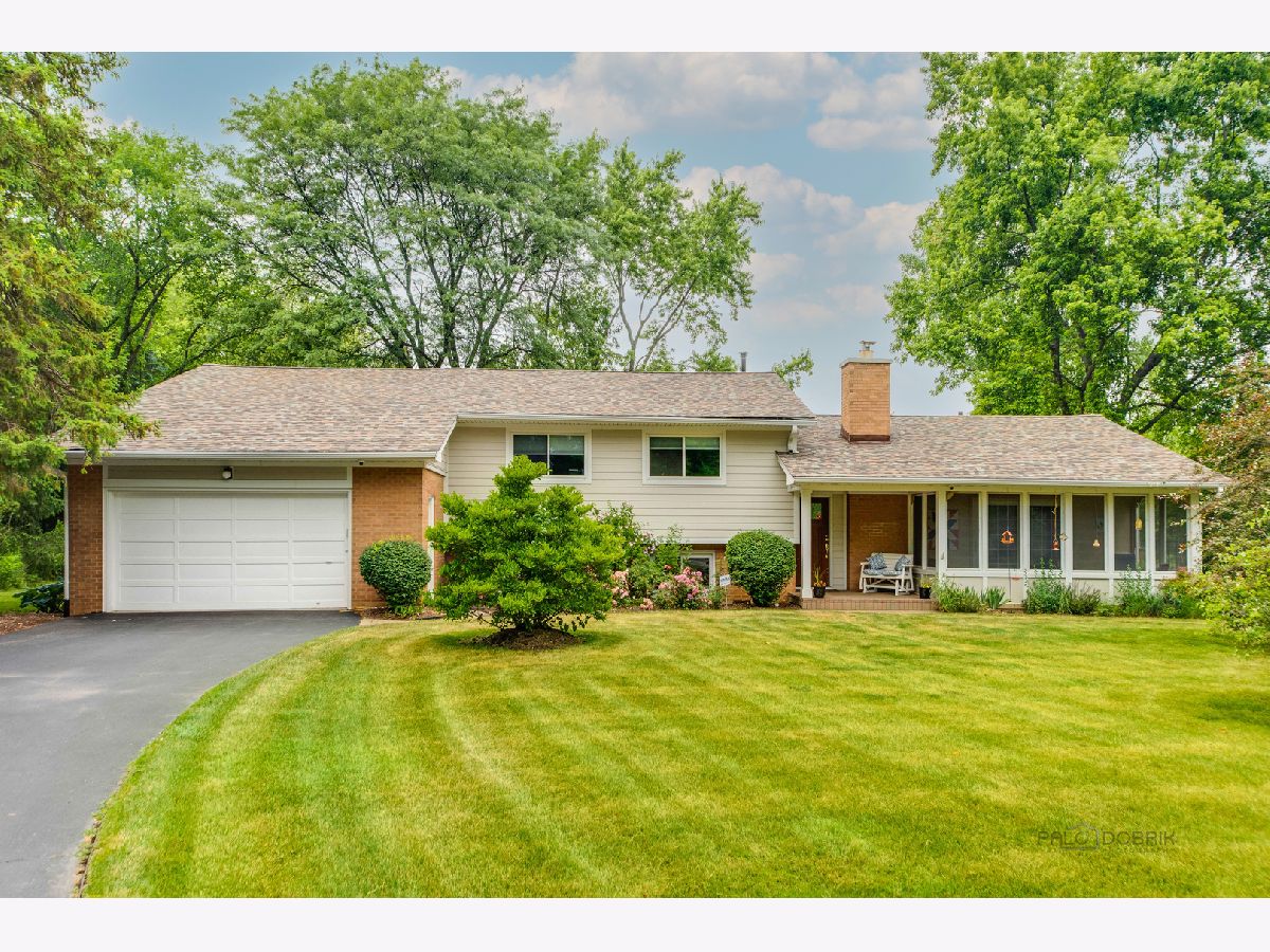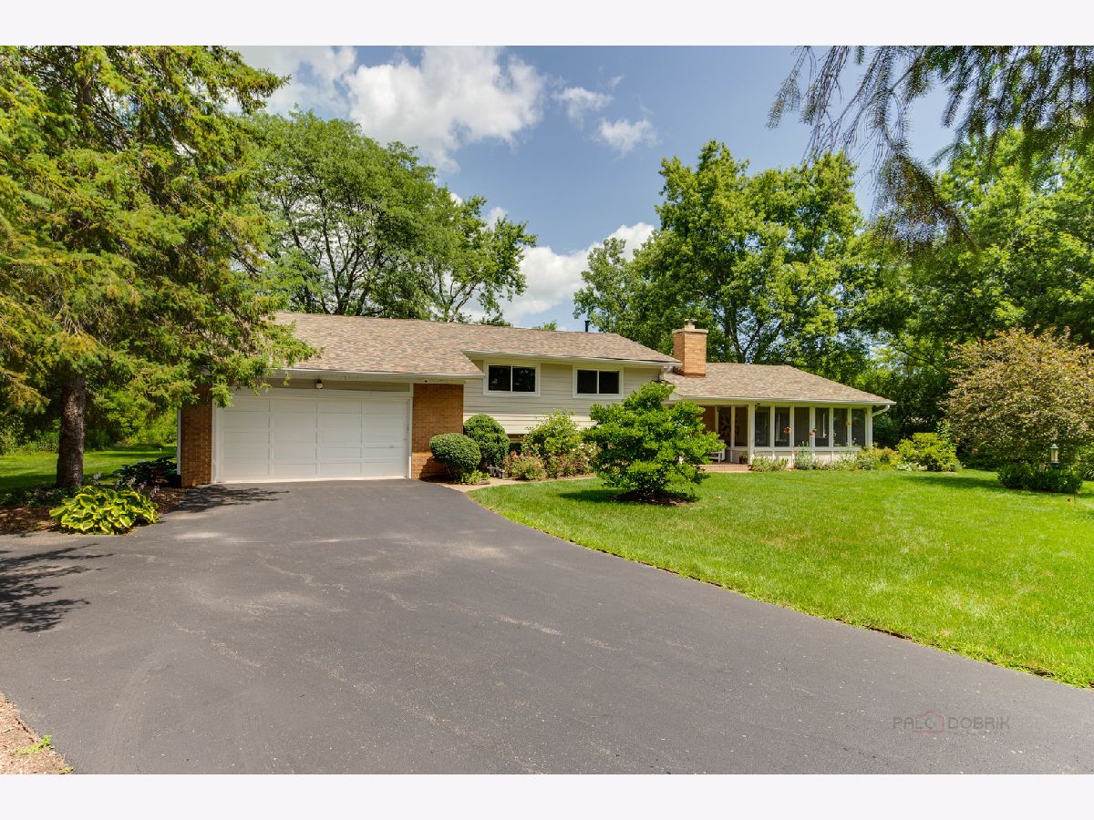 Resort living on 1.3 acres, with a fabulous POOL and magnificent prairie scape/walking path awaits you! You will be amazed at what this home and property have to offer! As you enter the circular drive, the privacy and tranquility is noted in this setting with birdlife abound. The entry opens to the foyer with a flexible floor plan, which is great for gatherings! This includes a dining area, gourmet kitchen with pantry, and living room with fireplace and vaulted ceiling. All with hardwood flooring and many windows to let the beauty of nature in your home! The dining area has views to the backyard through the sliding doors, with an extensive back patio and views of the azure blue heated pool. The living room can be extended by opening the sliding doors out to the screened in porch at the front of the home. Such a lovely space to peacefully read or office from! A powder room completes this level. Upstairs is the very large and recently renovated (2020) primary suite and spa bathroom, with a walk in closet, and a private screened in porch with views of the afternoon sunsets and backyard scape. There are two additional bedrooms on this level, and a full bath with updates. All bedrooms and hallway have beautiful hardwood flooring. The lower level is an english basement with tons of natural light from the numerous windows and full walk out access from the large laundry room. There is one bedroom (or home office) on this level and a huge family room. Storage is in the utility room with additional space beyond the primary bedroom closet, and additional outdoor storage area for pool needs is on the west side of the home. A portion of the yard is fenced around the pool and the remaining yard is divided between a large grassy space to throw a football and a restored native prairie to the far back with a walking path cut through it. Additionally, there are organic raised vegetable beds to the east of the home inside the fence. This residence has been impeccable maintained with new roof (6/22) new gutters and leaf filters (6/22) newer windows, remodeled kitchen, replaced Hardee board (7/19), chimney/fireplace (crown, liner and tuckpointing) (6/20) to name a few. Professionally landscaped and lovingly maintained paradise for you to move in and enjoy!