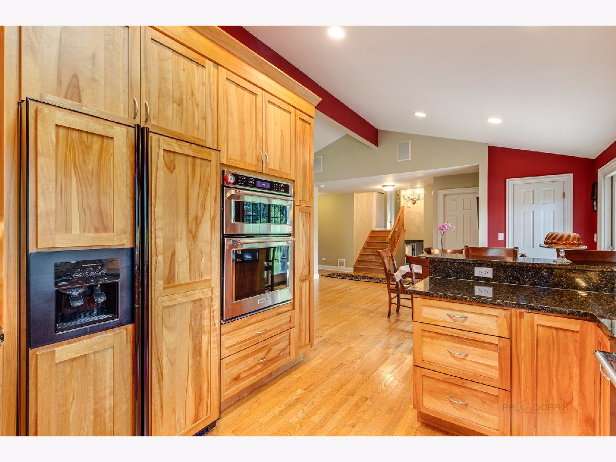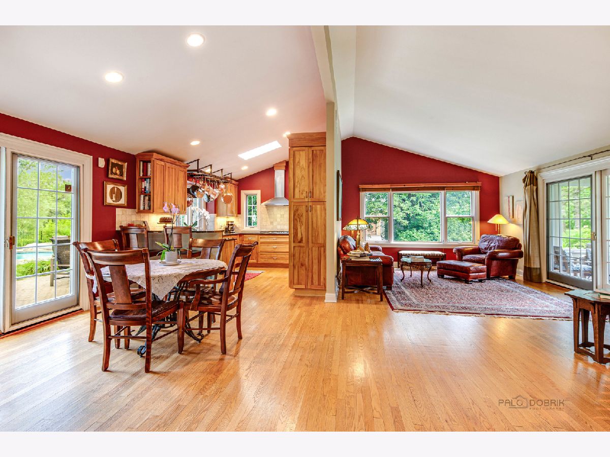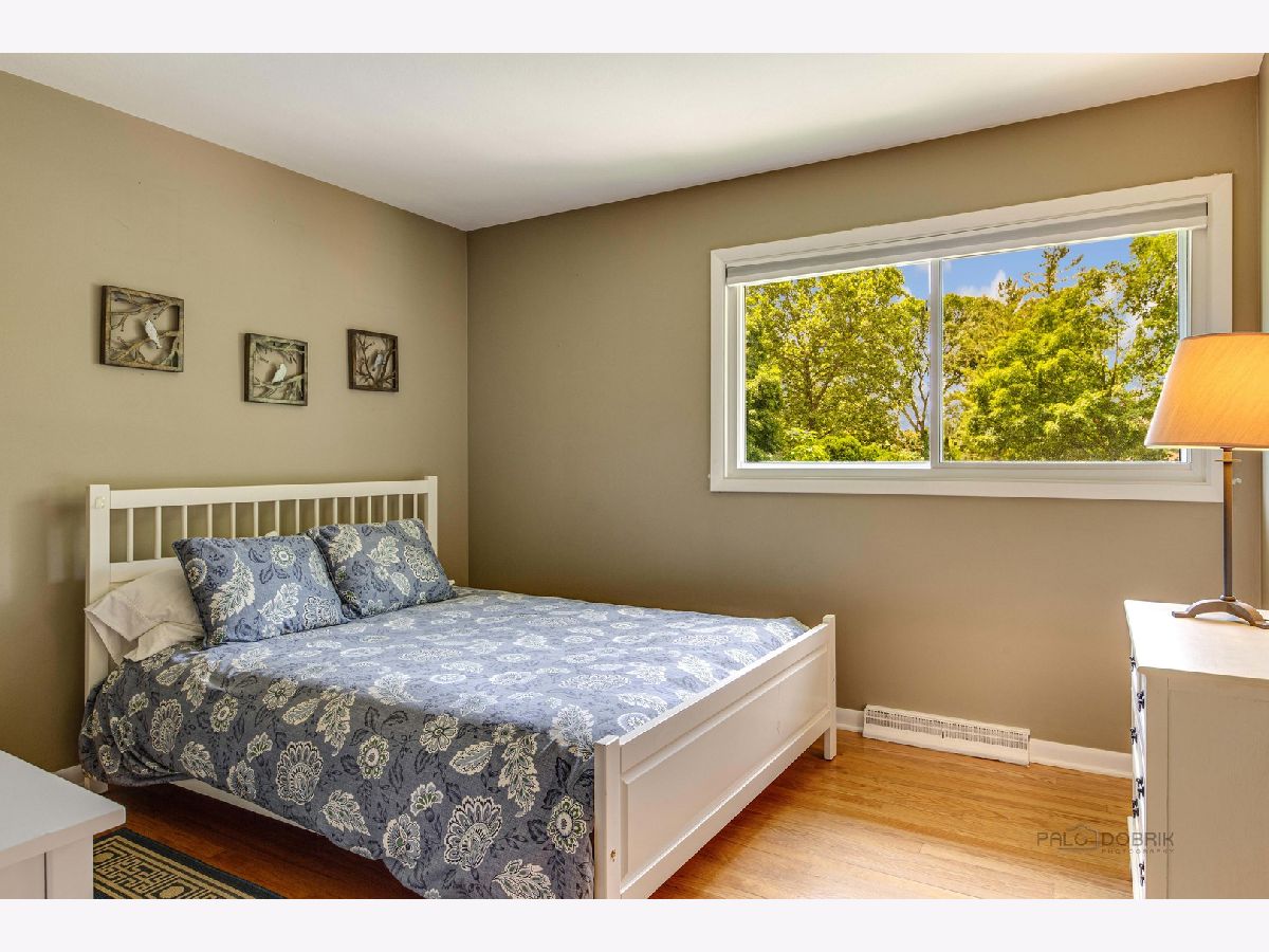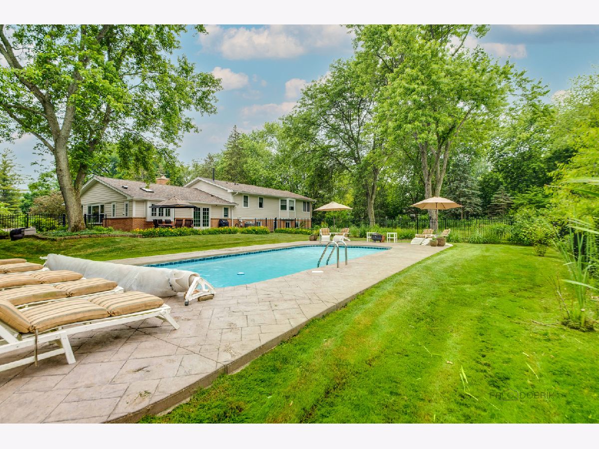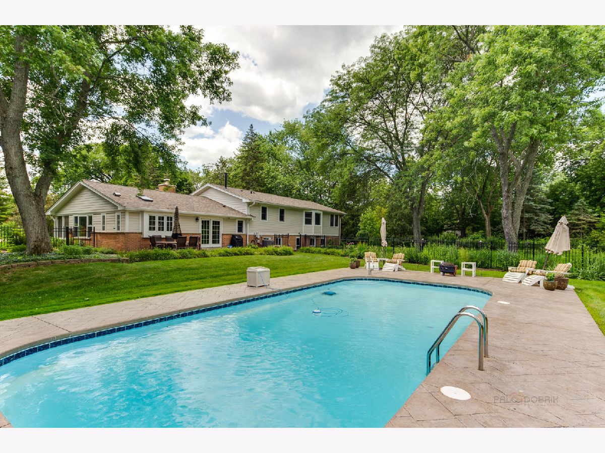 Resort living on 1.3 acres, with a fabulous POOL and magnificent prairie scape/walking path awaits you! You will be amazed at what this home and property have to offer! As you enter the circular drive, the privacy and tranquility is noted in this setting with birdlife abound. The entry opens to the foyer with a flexible floor plan, which is great for gatherings! This includes a dining area, gourmet kitchen with pantry, and living room with fireplace and vaulted ceiling. All with hardwood flooring and many windows to let the beauty of nature in your home! The dining area has views to the backyard through the sliding doors, with an extensive back patio and views of the azure blue heated pool. The living room can be extended by opening the sliding doors out to the screened in porch at the front of the home. Such a lovely space to peacefully read or office from! A powder room completes this level. Upstairs is the very large and recently renovated (2020) primary suite and spa bathroom, with a walk in closet, and a private screened in porch with views of the afternoon sunsets and backyard scape. There are two additional bedrooms on this level, and a full bath with updates. All bedrooms and hallway have beautiful hardwood flooring. The lower level is an english basement with tons of natural light from the numerous windows and full walk out access from the large laundry room. There is one bedroom (or home office) on this level and a huge family room. Storage is in the utility room with additional space beyond the primary bedroom closet, and additional outdoor storage area for pool needs is on the west side of the home. A portion of the yard is fenced around the pool and the remaining yard is divided between a large grassy space to throw a football and a restored native prairie to the far back with a walking path cut through it. Additionally, there are organic raised vegetable beds to the east of the home inside the fence. This residence has been impeccable maintained with new roof (6/22) new gutters and leaf filters (6/22) newer windows, remodeled kitchen, replaced Hardee board (7/19), chimney/fireplace (crown, liner and tuckpointing) (6/20) to name a few. Professionally landscaped and lovingly maintained paradise for you to move in and enjoy!