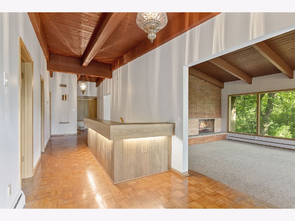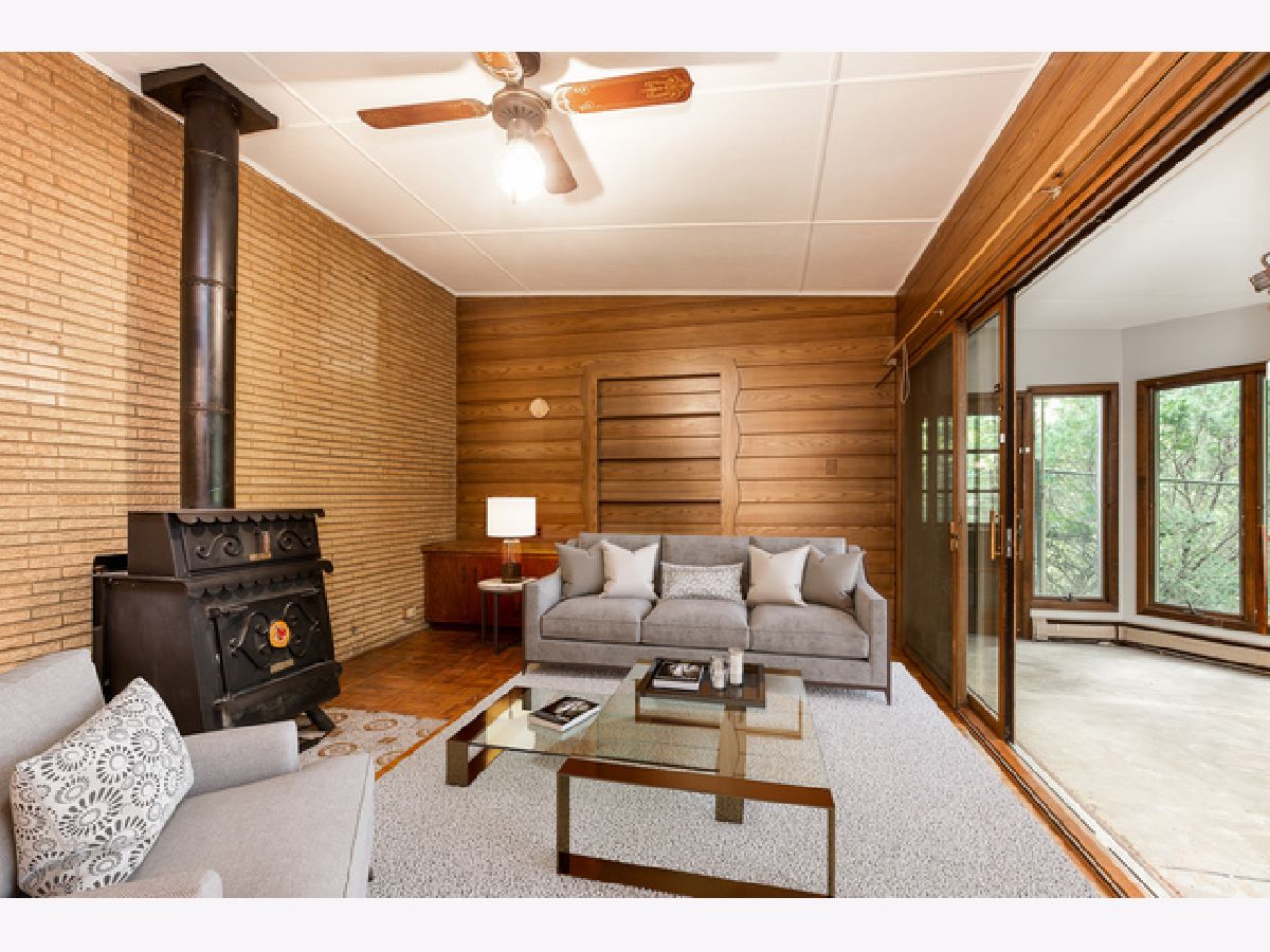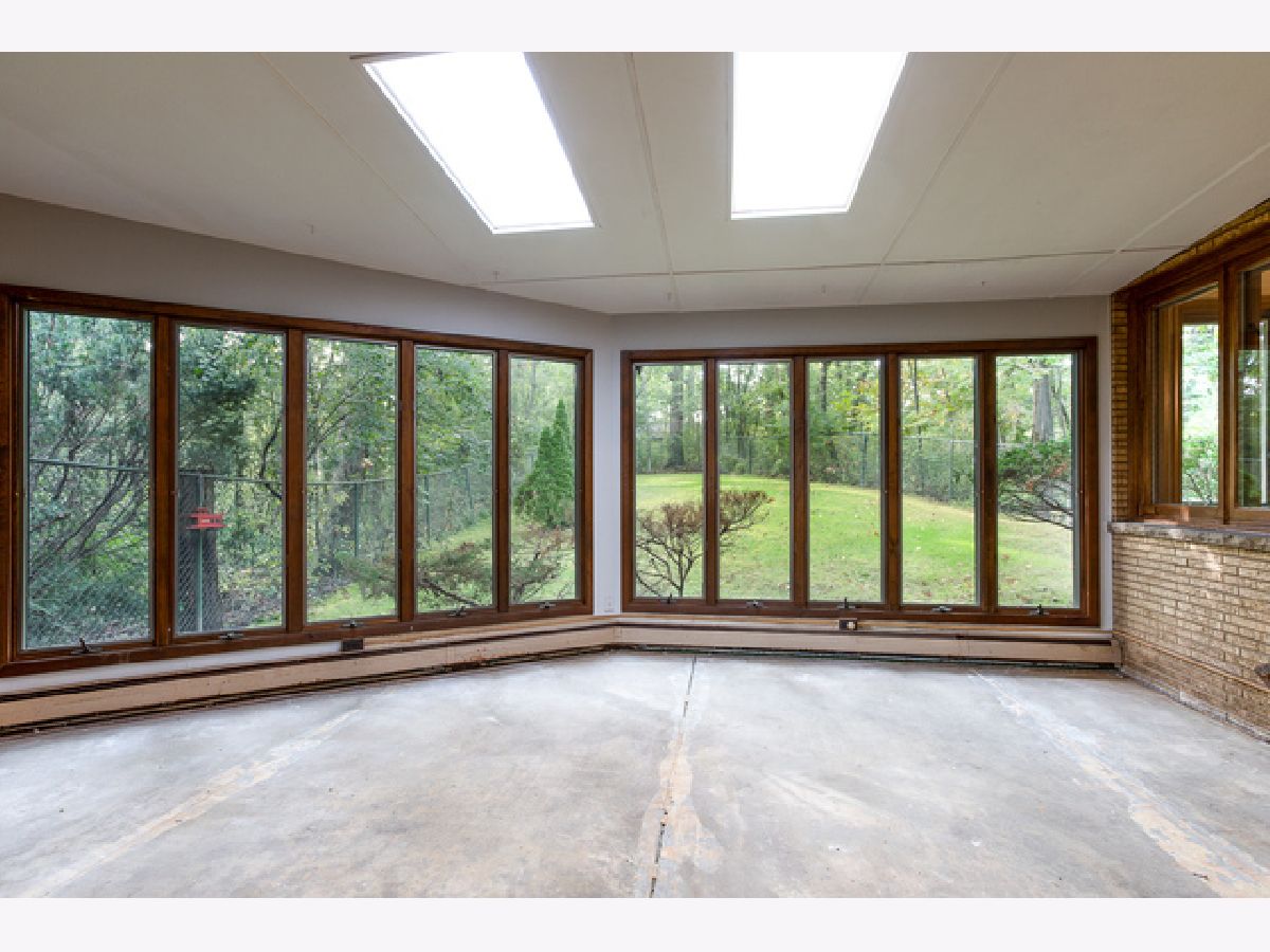 Enjoy the Pastoral Paradise of Palos Park in this Mid-century Contemporary Ranch. This house sits on an elevated hillside with 1.6 acres and a creek surrounded by nature. This Brick house is highlighted with Prairie Style Architectural Lines and Vaulted Ceilings. Three Bedrooms, including the Master, and Two full Bathrooms are located on the main level. Enjoy a fire in the Living Room or a meal in the Dining Room while taking in the forest view from a wall of windows. The Large Galley Kitchen, with a great skylight, has a sit-in eating area with built-in cabinets and shelving. The adjacent Family Room has a classic wood burning stove with sliding doors to a year round Sun Room looking into the woods with a fenced dog run. The Lower level walkout provides a relaxing environment featuring a Fireplace, Built-in cabinets, and lots of Windows to the Woods. Laundry/Utility Room with a Cedar closet and 1/2 Bath complete the lower level. The attached 2 car garage includes a work/project room. A New Flat Roof with 5 Skylights, soffit fascia replaced in 2018 has a Transferable Warranty. New AC unit. New Carpet in Living Room, Dining Room and Stairs to Lower Level. New Flooring throughout the Lower Level. Updated Lower Level Bathroom. Updated Electrical with 200 Amp service. Fresh Paint. A Rare Opportunity! Make this House Your Home!