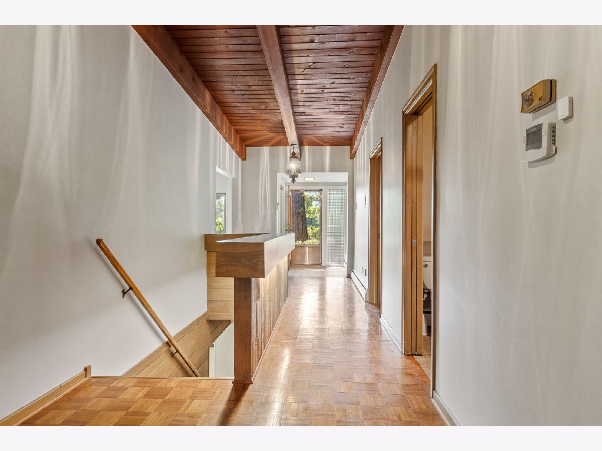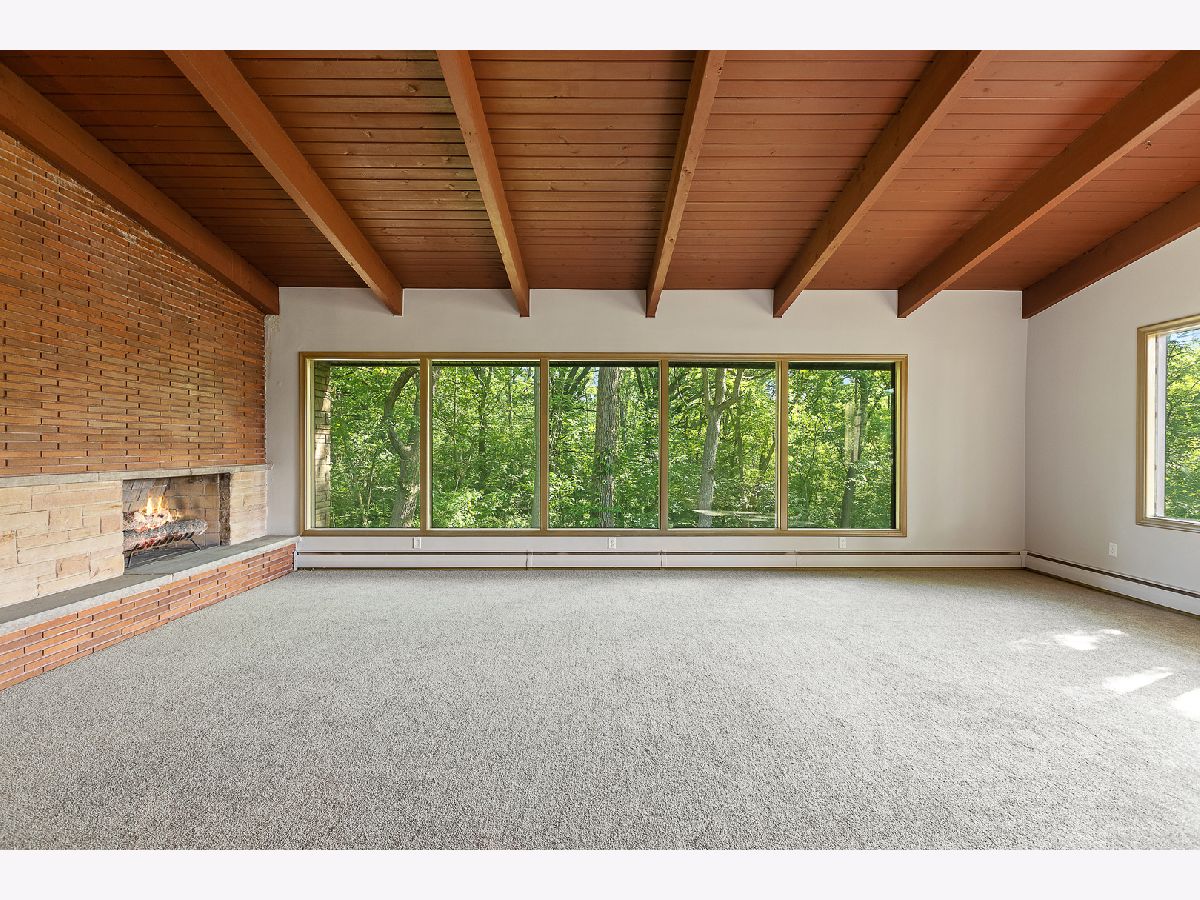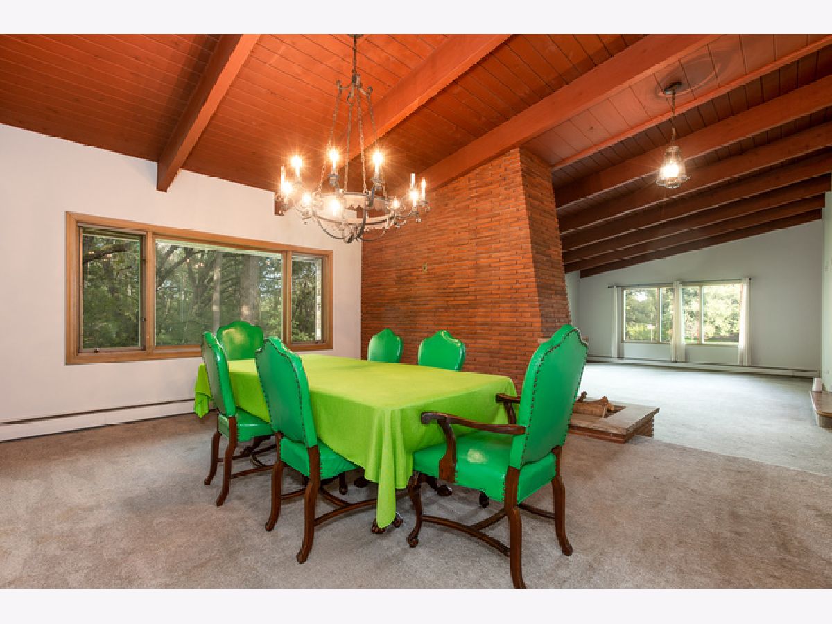 Enjoy the Pastoral Paradise of Palos Park in this Mid-century Contemporary Ranch. This house sits on an elevated hillside with 1.6 acres and a creek surrounded by nature. This Brick house is highlighted with Prairie Style Architectural Lines and Vaulted Ceilings. Three Bedrooms, including the Master, and Two full Bathrooms are located on the main level. Enjoy a fire in the Living Room or a meal in the Dining Room while taking in the forest view from a wall of windows. The Large Galley Kitchen, with a great skylight, has a sit-in eating area with built-in cabinets and shelving. The adjacent Family Room has a classic wood burning stove with sliding doors to a year round Sun Room looking into the woods with a fenced dog run. The Lower level walkout provides a relaxing environment featuring a Fireplace, Built-in cabinets, and lots of Windows to the Woods. Laundry/Utility Room with a Cedar closet and 1/2 Bath complete the lower level. The attached 2 car garage includes a work/project room. A New Flat Roof with 5 Skylights, soffit fascia replaced in 2018 has a Transferable Warranty. New AC unit. New Carpet in Living Room, Dining Room and Stairs to Lower Level. New Flooring throughout the Lower Level. Updated Lower Level Bathroom. Updated Electrical with 200 Amp service. Fresh Paint. A Rare Opportunity! Make this House Your Home!