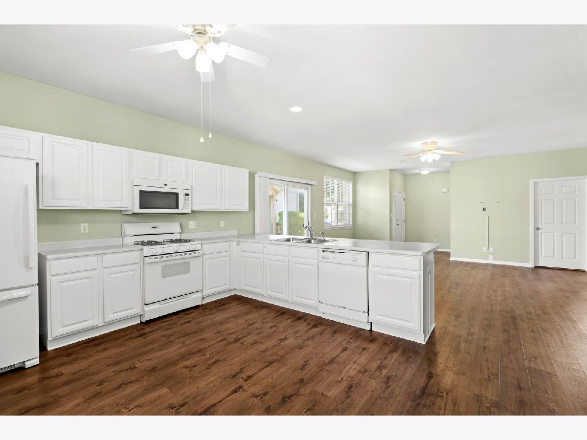 Beautiful main-level, maintenance-free condo featuring 2 bedrooms, 2 baths, and an open-concept layout. Plenty of natural light flows in through the many windows, creating a bright and inviting space. Enjoy newer luxury vinyl flooring in the living room, kitchen, and laundry room. The spacious living area opens to a concrete patio through sliding glass doors. The master suite offers two closets (one walk-in) and an en suite bath with a walk-in shower. Additional walk-in pantry/storage closet off the living room. Conveniently located close to entertainment, dining, and shopping, and just minutes from the Illinois border for an easy commute to Chicago. Plus, take advantage of Indiana's low taxes! HOA includes access to a community pool and exercise facility. One-owner home, move-in ready