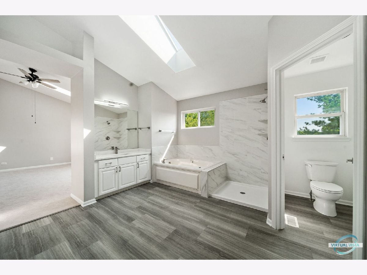Welcome to this spacious North facing home with 5 bedrooms and 4 baths in a great location. Perfect In-law arrangement with a bedroom and full bath on first floor. Upgrades in August 2021 includes new flooring in entire main floor and in all bathrooms, new carpeting in all bedrooms on 2nd floor, remodeled bathrooms with quartz vanity tops and modern lighting fixtures, new washer and dryer. whole houses painted in neutral colors. Recent upgrades: Roof 2018, A/C and water heater 2020. Large kitchen with white 42" cabinets, granite countertops, pantry. Light fixture in the dining room to be replaced by 9/25. Ample space in Family Room with fireplace and in the breakfast area. Plenty of natural light all year round. Formal Living and Dining room! The main suite on 2nd level has vaulted ceiling with three skylights, jacuzzi, updated separate shower (glass door to be installed by 9/22), double vanity plus an extended walk-in closet. Finished English basement includes 2nd kitchen, full bath, a Large Rec room, an office and a bonus room! Not to mention the finished crawl spaces for all your storage needs. Nice deck overlooking a private backyard. Bigger 2 car garage leading to mudroom. Highly rated Downers Grove schools. Minutes to highway. Nearby is the popular shopping promenade!