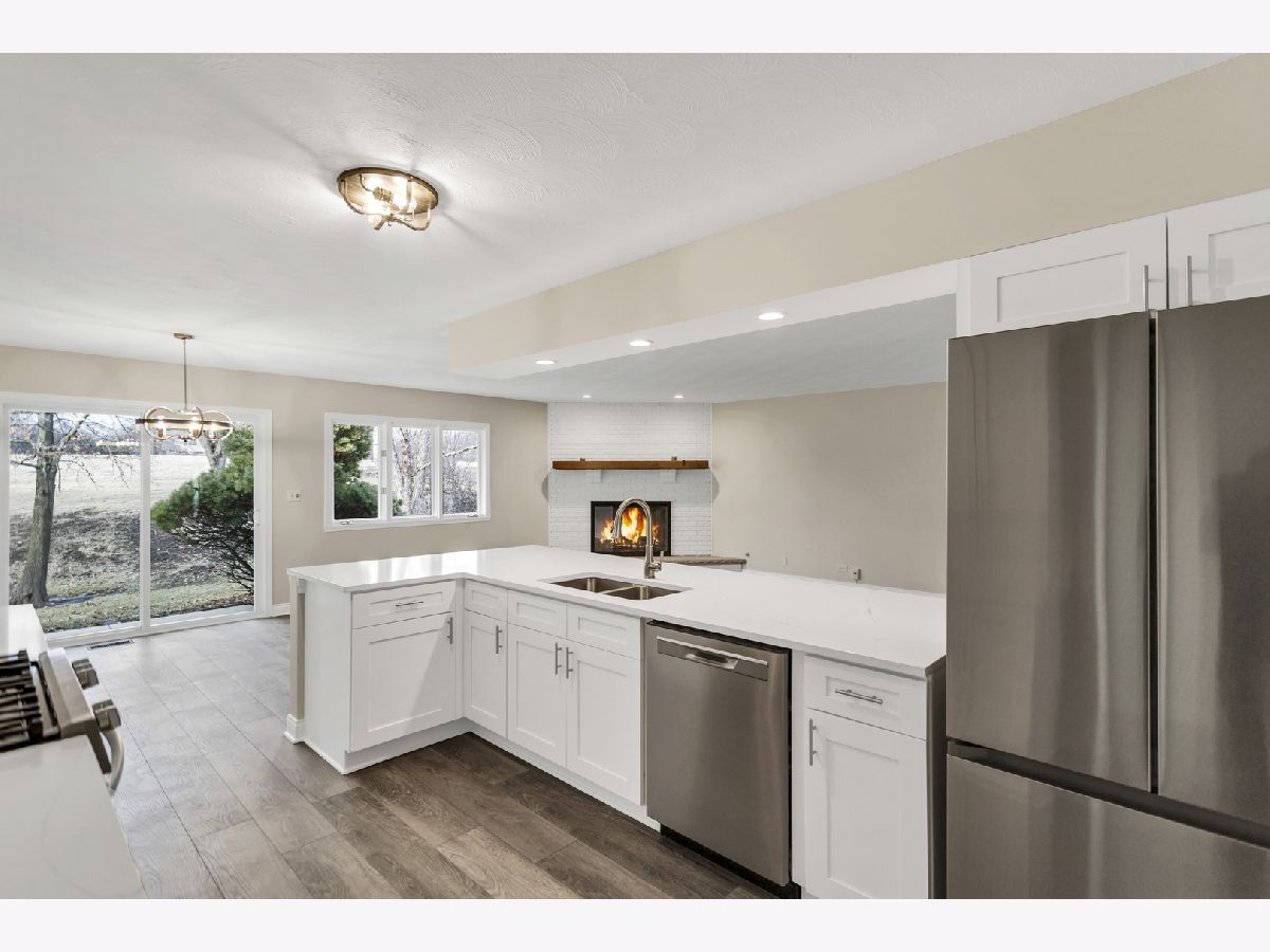 Beautiful rarely available sprawling semi-custom brick faced ranch with a private backyard backing to open space! A perfect space for entertaining in the formal living room, cozy family room with beautiful brick, gas start fireplace. Lovely kitchen with quartz counter tops, stainless steel appliances and separate eating area. Oversized master bedroom suite with double closets and an oversized master bath with double vanity large corner soaking tub and separate shower. This home also includes four spacious bedrooms 3 full baths, 1st floor laundry room and potential for in law arrangement. Partially finished 1500 sq foot basement, Enjoy cozy nights on the private patio or on the front courtyard patio!