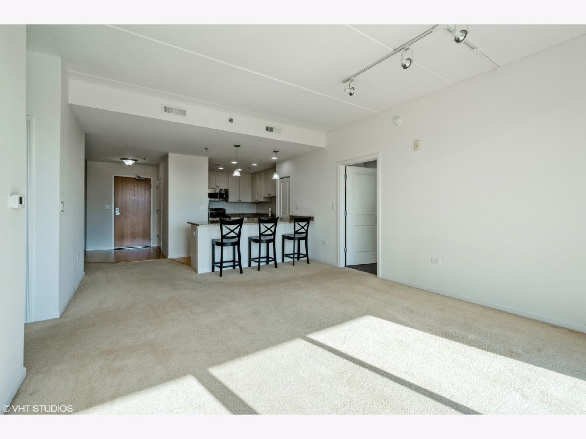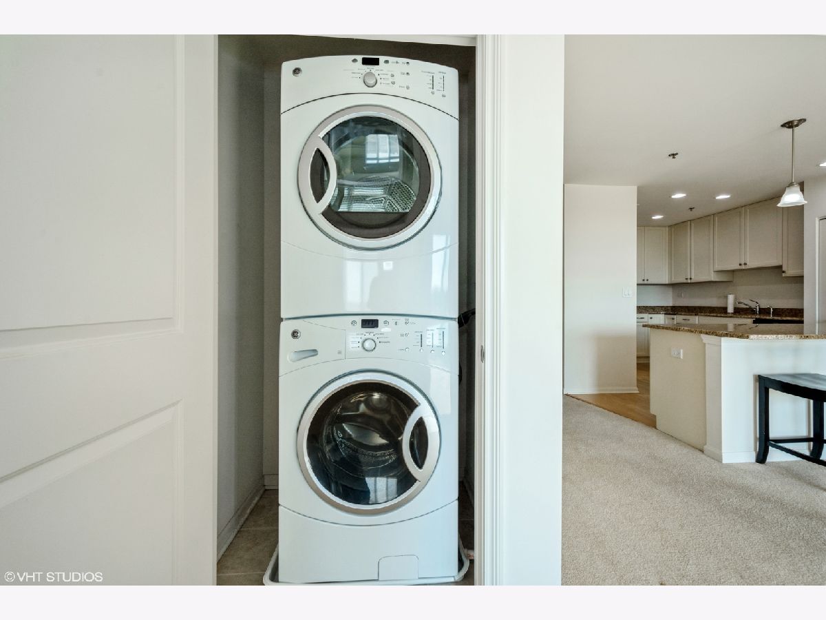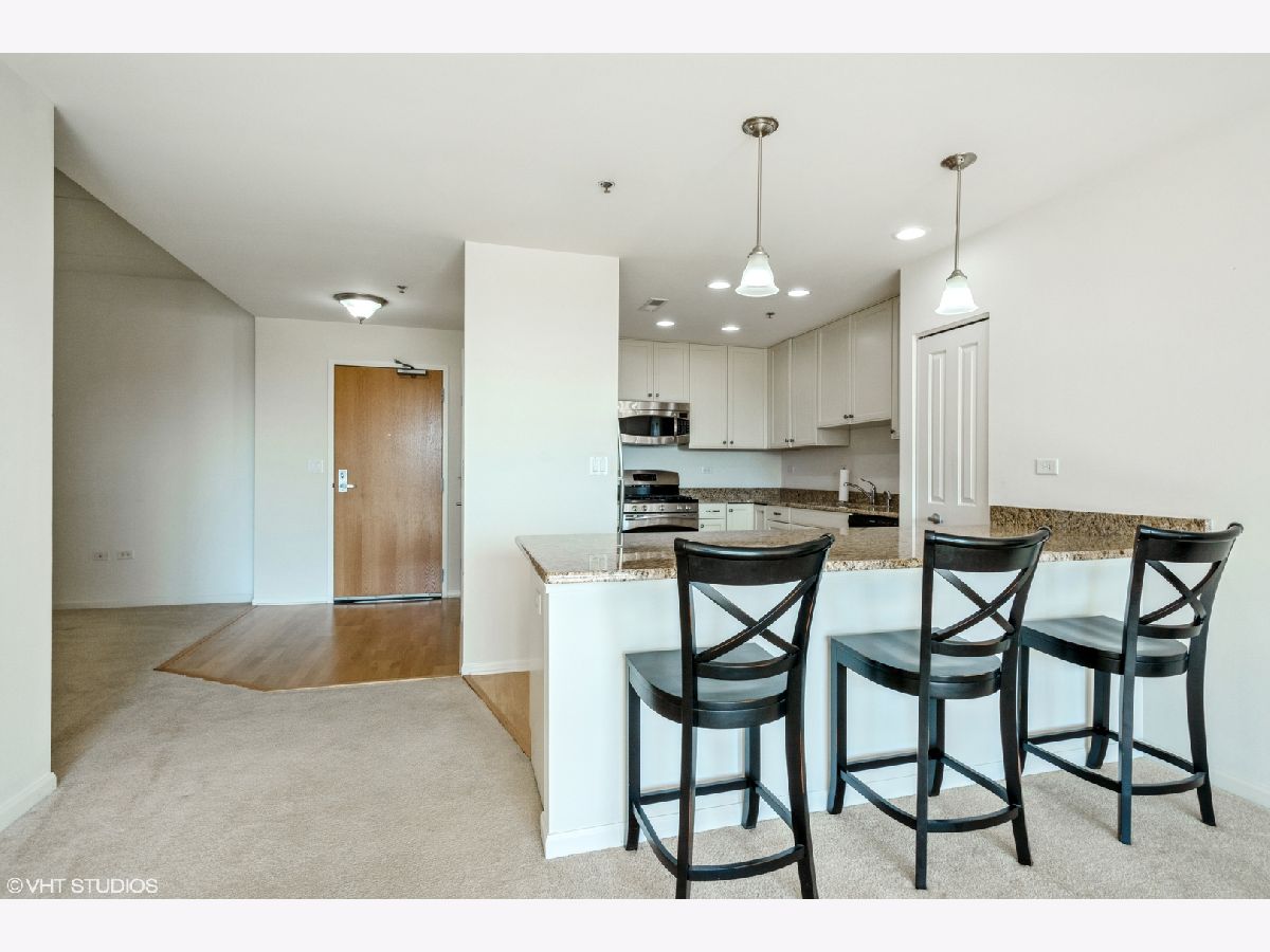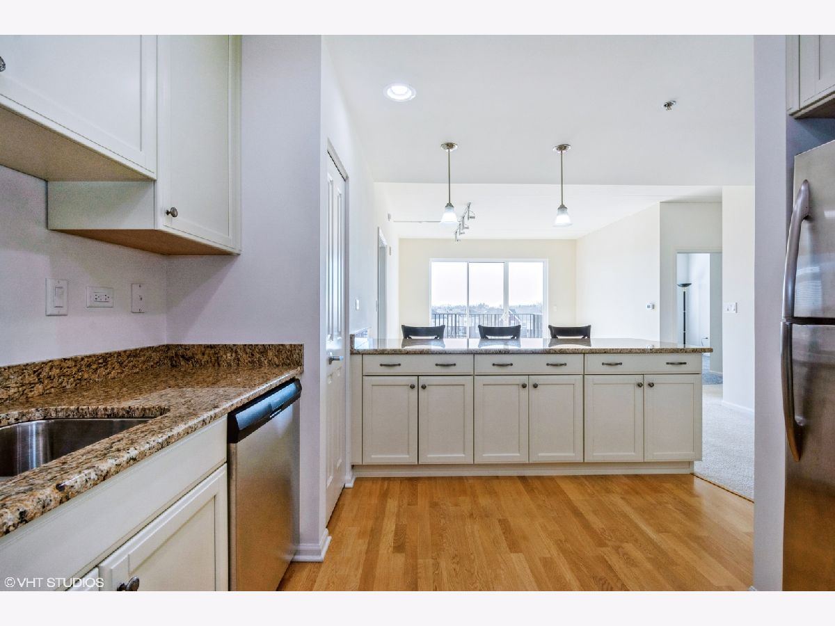 Open floor plan with generous ceiling heights and a great room that opens to a beautifully appointed kitchen with 42 inch cream cabinets, stainless steel appliances, gorgeous granite countertops and a large breakfast bar that comfortably seats four. Adjacent and also open to the kitchen is an ample sized den that could also be used as a formal dining area. Extra wide hallways and doorways contribute to the open and spacious feeling. The split bedroom floor plan allows both the primary bedroom and the second bedroom to live like suites with their own full baths. The primary bedroom has a walk-in closet along with a double door closet and a linen closet in the bath. Full size in-unit washer and dryer, indoor heated parking and a large balcony are a few of the other conveniences. The monthly assessment includes heat, gas, water and scavenger along with all exterior maintenance. This truly is carefree and stair-free condo living in what is truly one of the finest and most meticulously maintained elevator buildings in Lake County. Walk to Starbucks, Real Urban BBQ, Halsted Street Deli and several other restaurants. Also, a short jog or bike ride to miles of trails through the forest preserves along the Des Plaines River. Lincolnshire grade school and Stevenson HS districts.