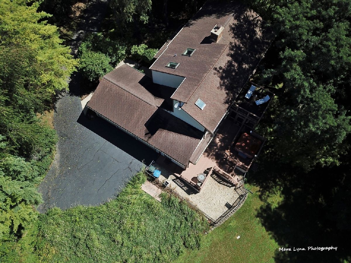 One of the few homes built in the area by George Lambie, this passive solar contemporary craftsman home is uniquely updated as well as solidly built with 2x6 construction, additional wall insulation and triple pane windows on the north side. The large two story foyer has slate floors and three skylights. A study/reading room is off of the foyer as well as a generous dining room, both with Brazilian hickory wood floors. The family room has a large brick two-story wood burning heatilator fireplace that is a part of the passive solar heating system which is aided by a gas forced air heating system to keep utility bills low. An upgraded humidification system has been added to keep the house comfortable in the winter. The huge wall of windows, tile floors plus the open floor plan to the second story rooms are what contribute to this system. The updated kitchen has all high end appliances including a Viking stove and wine cooler with Sub Zero refrigerator. In addition, the mudroom is actually also a working pantry with counter space, a second refrigerator and double wine refrigerator. A screened in porch which is off of the eating area has a LaCatina folding door which opens completely to give spectacular additional outdoor living area. Adjacent to this porch is a multi level deck to enjoy the very private, mature 1.2 acre yard. On the second level is a primary bedroom suite which has been extended and remodeled with a luxury Jacuzzi bath with two skylights, heated floors and a double glass shower with multiple shower heads, a walk in closet with skylight, a second laundry area with washer/dryer and a private walkout deck with glass hand rails. The three car, heated garage has a commercial epoxy sealed floor and the expansive yard is equipped with an irrigation system. This is an extremely well maintained builders home ready for a new owner to enjoy.