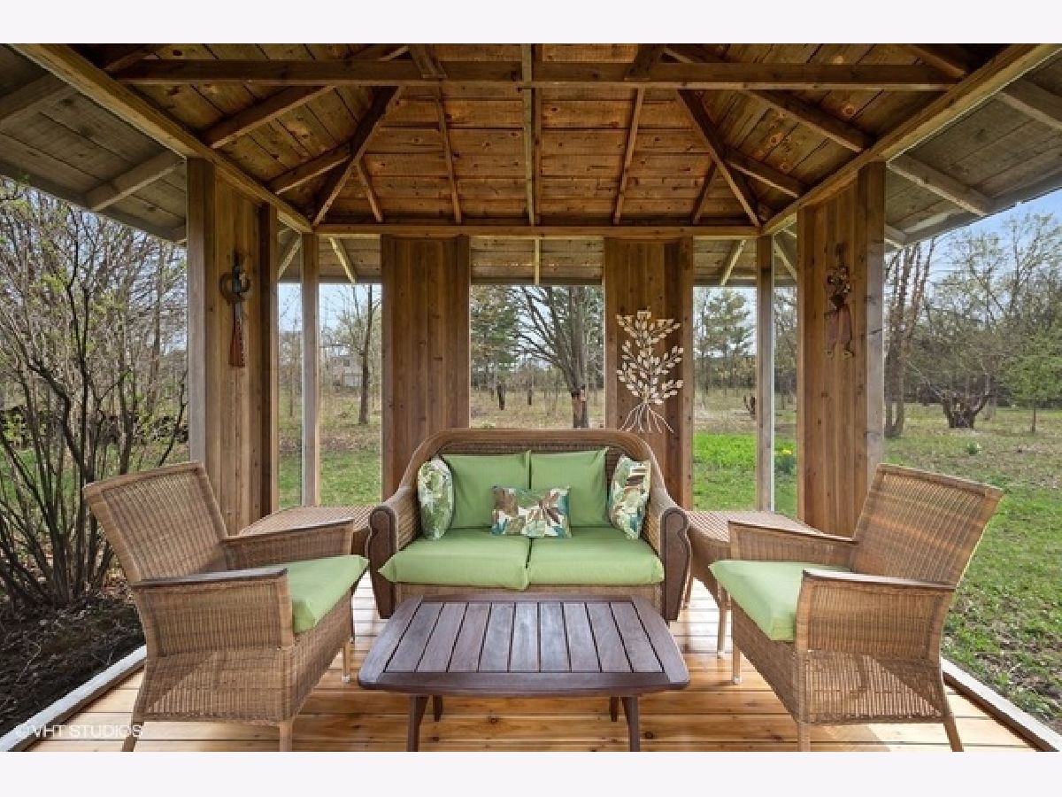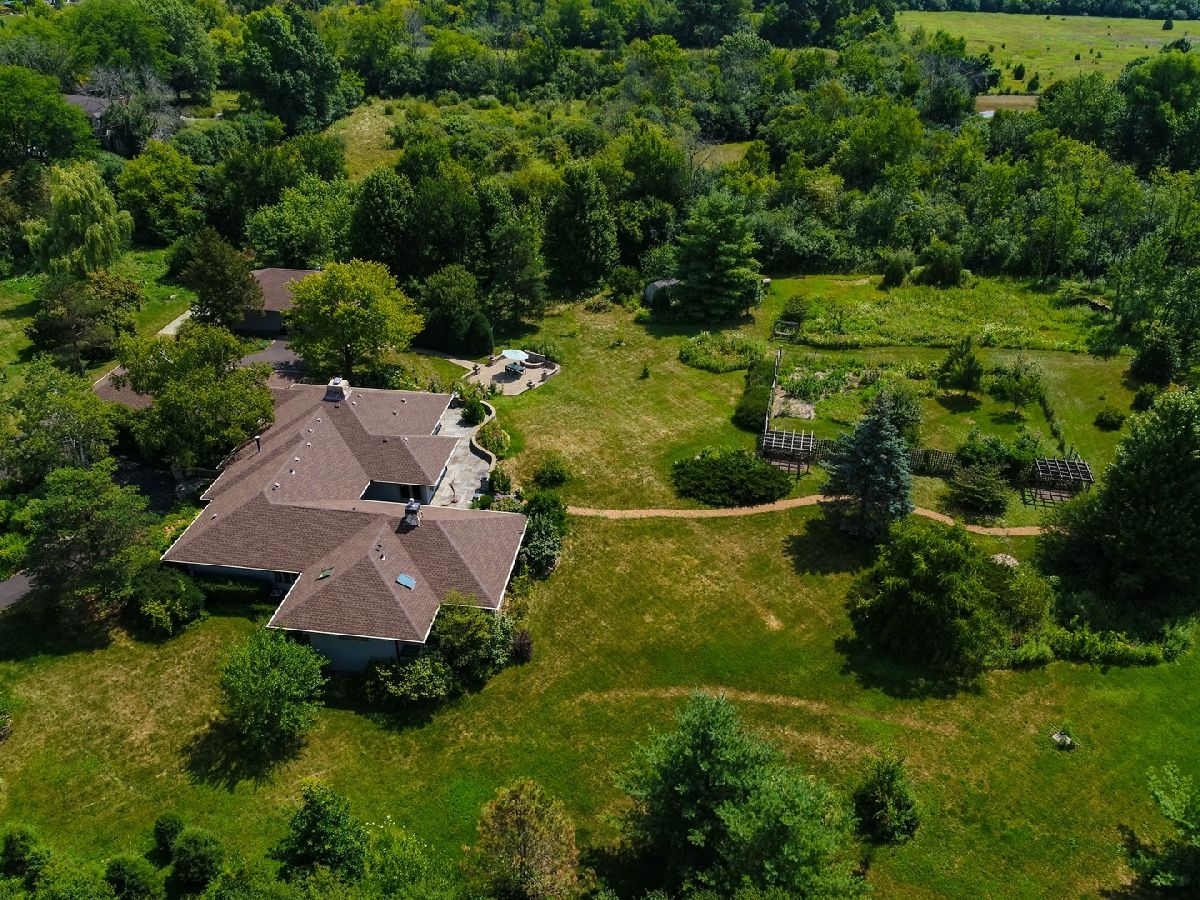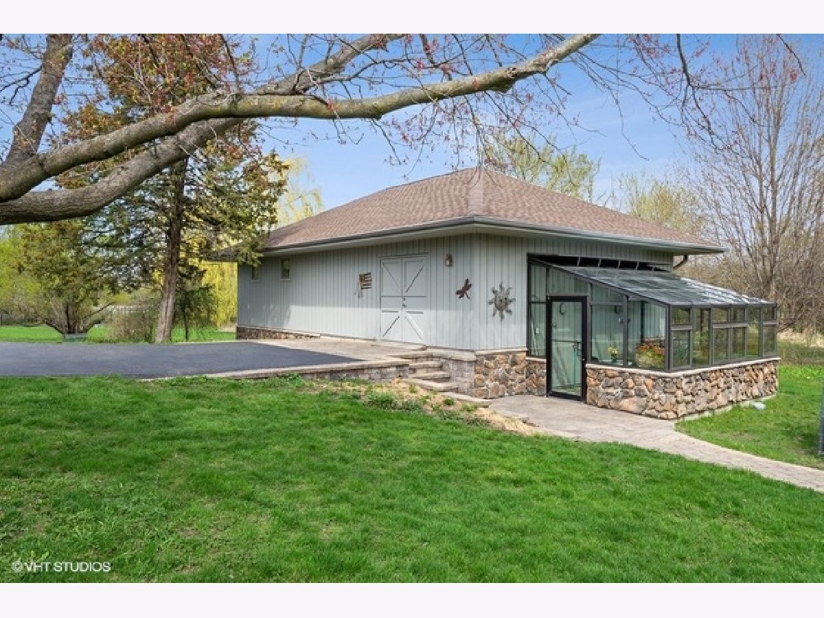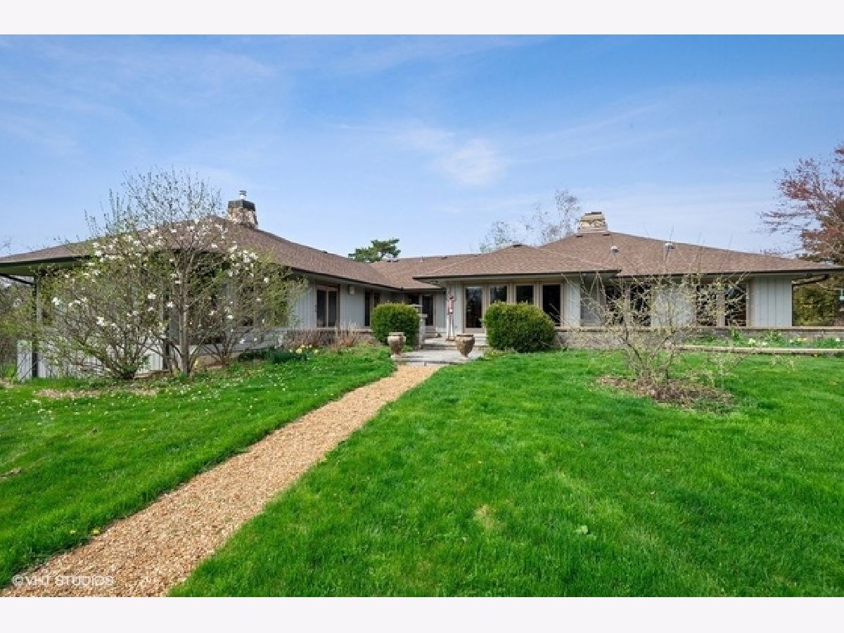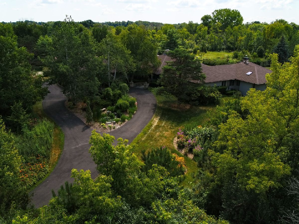 SOLD IN PRIVATE NETWORK. A rare Robert Parker Coffin Prairie style home. Live close to nature, close to town. Beautiful prairie ranch, views from the many windows. Property hosts over 30 species of native trees and shrubs. Koi pond with waterfall in the center of the circular drive. Organic vegetable garden and like new greenhouse for fresh food for most of the year. Expansive blue stone terrace with seat walls and fire pit. Dog heaven - gated entry into fenced yard, lawn for running and woods for exploring. Back yard screened gazebo. Entire interior of house is upgraded with solid wood doors, custom wood work, exotic HW floors and layers of lighting. Ample storage. Attd 4+ car htd gar + separate heated building for hobbies/private fitness center/golf simulator/car, boat, toy storage. Master suite contains his/her bathrooms. Finished basement under Master suite includes bathroom. New roof installed 2016 with 50 yr shingles. New gutter with screens also in 2016. Close to Barrington High, train station and village