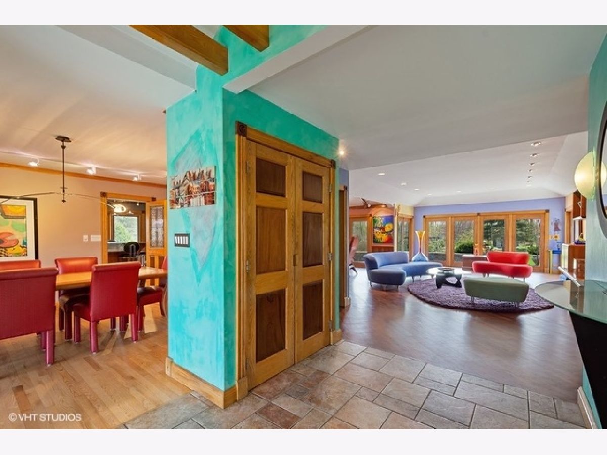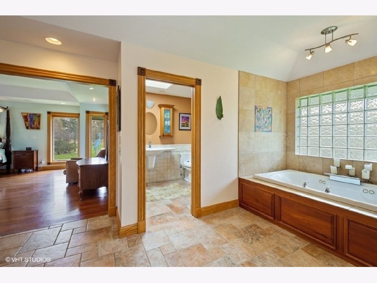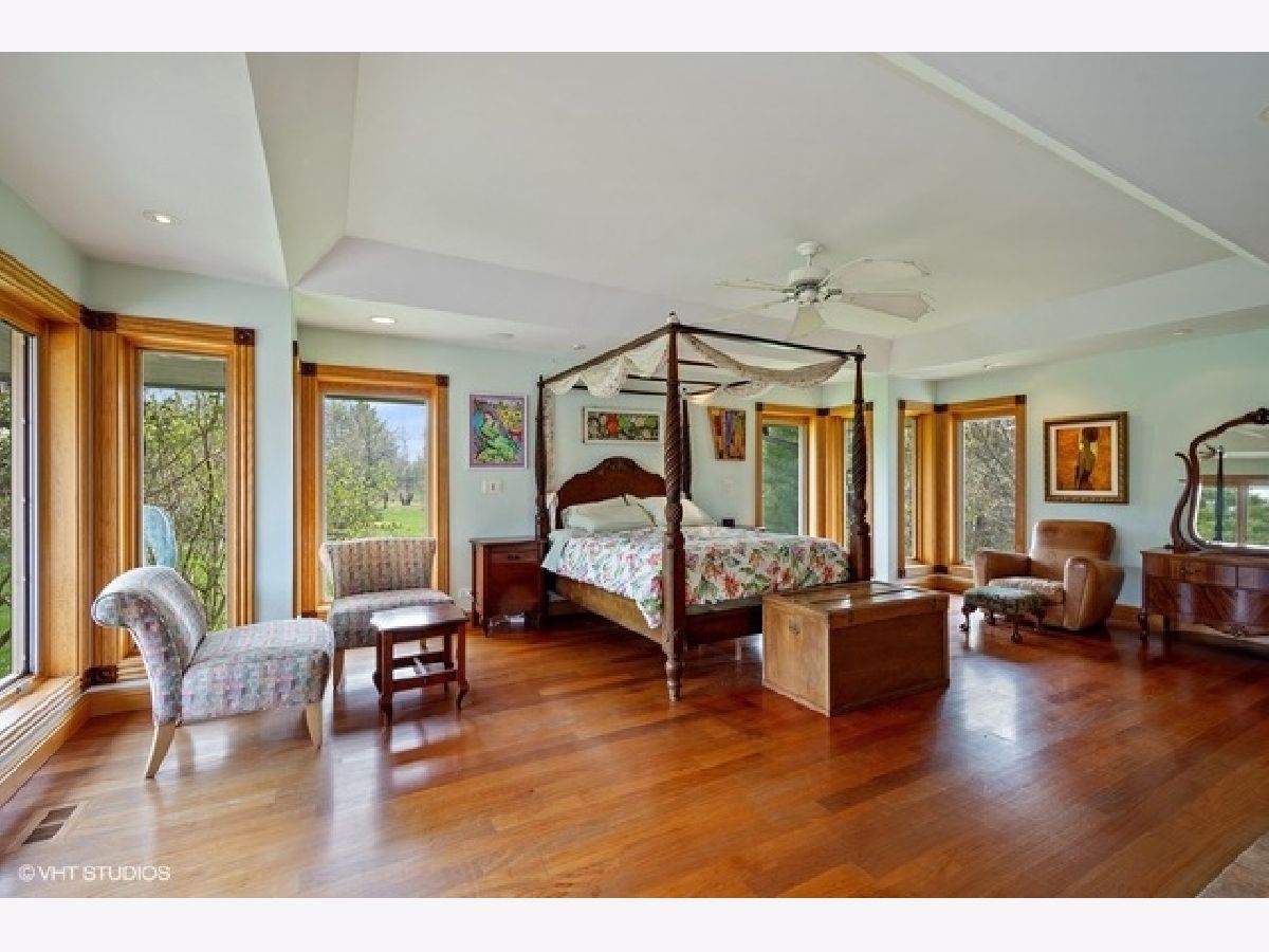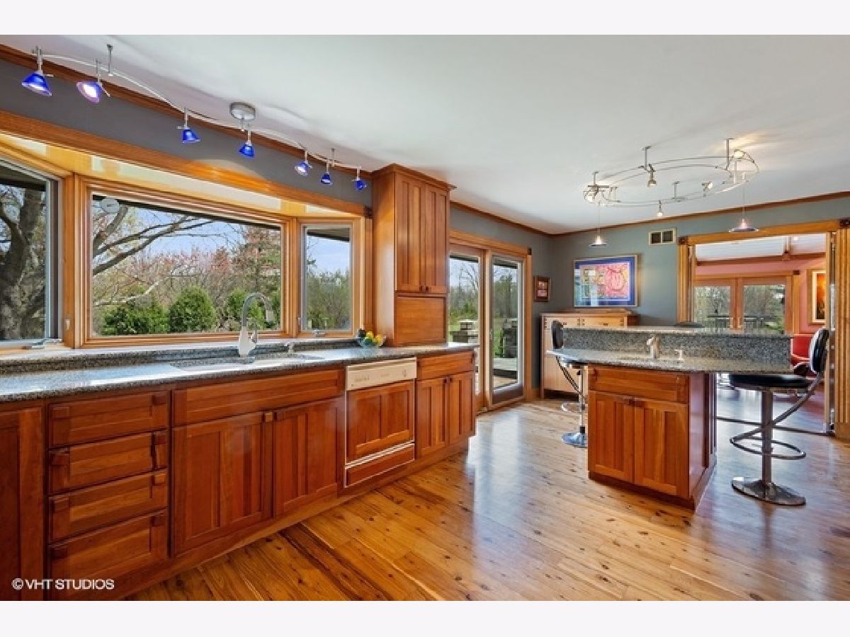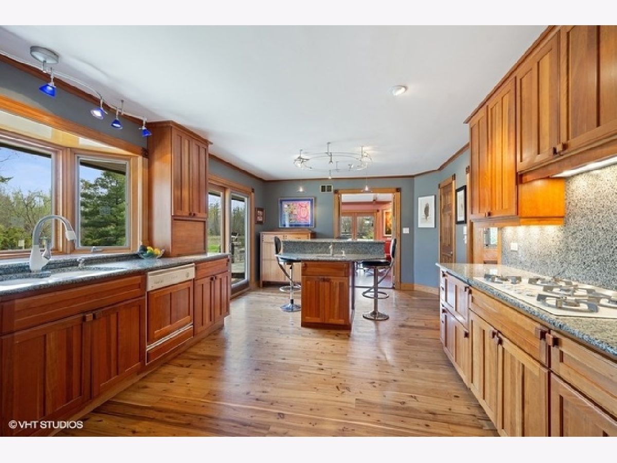 SOLD IN PRIVATE NETWORK. A rare Robert Parker Coffin Prairie style home. Live close to nature, close to town. Beautiful prairie ranch, views from the many windows. Property hosts over 30 species of native trees and shrubs. Koi pond with waterfall in the center of the circular drive. Organic vegetable garden and like new greenhouse for fresh food for most of the year. Expansive blue stone terrace with seat walls and fire pit. Dog heaven - gated entry into fenced yard, lawn for running and woods for exploring. Back yard screened gazebo. Entire interior of house is upgraded with solid wood doors, custom wood work, exotic HW floors and layers of lighting. Ample storage. Attd 4+ car htd gar + separate heated building for hobbies/private fitness center/golf simulator/car, boat, toy storage. Master suite contains his/her bathrooms. Finished basement under Master suite includes bathroom. New roof installed 2016 with 50 yr shingles. New gutter with screens also in 2016. Close to Barrington High, train station and village