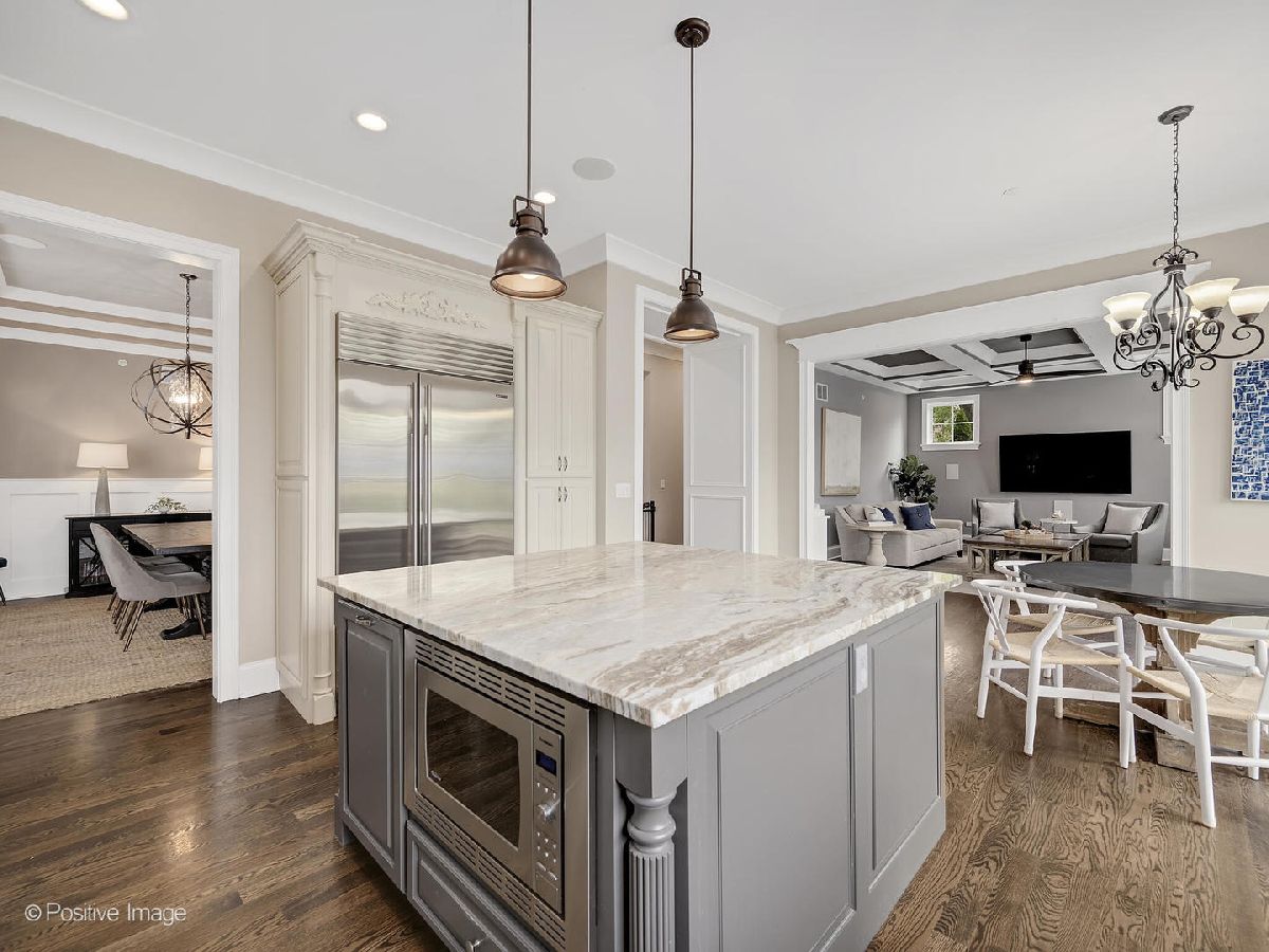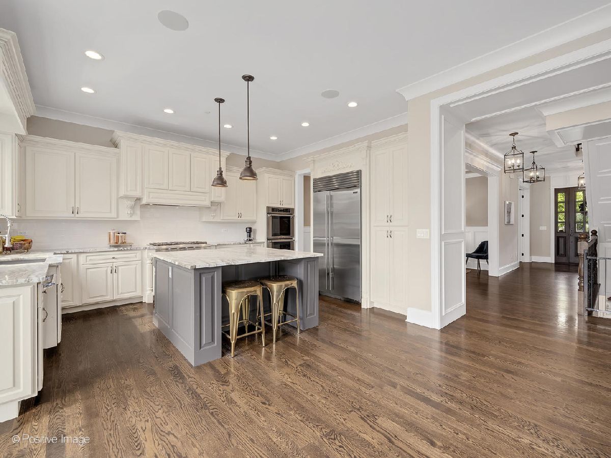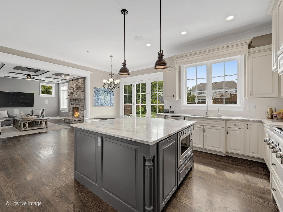 Situated on a beautifully landscaped lot in a true walk-to-everything location, this expansive, meticulously maintained home has been thoughtfully designed to accommodate today's discerning lifestyle. Showcasing over 4700 square feet of living space on three finished levels, this exceptional home offers 5 generous bedrooms, 4 full bathrooms, 1 half bath, office, a heated 2-car attached garage with EV charging station and much more. The open, light-filled entryway greets you with stunning hardwood floors, impressive 10-foot ceilings and intricate millwork, all which carry throughout. The well-positioned front office offers privacy and views of the beautifully manicured grounds and inviting front porch. The vast, eat-in kitchen is a designer showcase, anchored by a large custom island with seating, gorgeous quartzite countertops, opulent light-colored cabinetry, and top-of-the-line Thermador and Subzero appliances. A separate eating area leads to a gorgeous outdoor entertaining oasis, replete with an oversized bluestone patio, grilling station and fully-fenced, professionally landscaped back yard. Back inside, the inviting family room offers a floor-to-ceiling natural stone fireplace, coffered ceiling, an abundance of natural light and plenty of room to gather with family and friends. A spacious dining room with gorgeous wainscoting, well-appointed half bath and large mudroom with custom built-ins round out the first level. Upstairs, the expansive primary suite is a world unto itself with custom walk-in "his & hers" closets, vaulted ceiling, a spa-like bathroom with separate vanities, exotic granite, soaking tub and separate shower. Three well-appointed, generous bedrooms with vaulted ceilings and custom closet organization systems, two beautifully designed full bathrooms and a breathtaking laundry room complete this level. The finished, light and bright lower level is a dream, showcasing luxury vinyl plank flooring, a dedicated home gym (or 5th bedroom), an expansive dry bar with beverage fridge, a massive recreation area, full bathroom and immense storage. Steps to town, train, Prospect Park and Blue Ribbon Award Winning Prospect Elementary and Clarendon Hills Middle School. Hinsdale Central High School. Truly one of the best locations in Clarendon Hills. This one is not to be missed! Please see Features Sheet for additional updates.