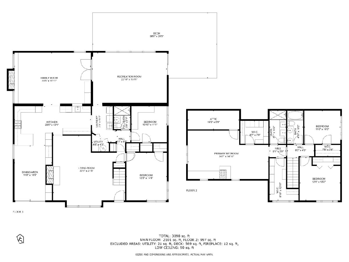 Welcome to 12 Williamsburg Court, Evanston where modern elegance meets thoughtful design in this stunning 5-bedroom, 3-bathroom residence. Spanning 3,100 square feet on a generous lot this home offers a harmonious blend of comfort and style. Step inside to discover three distinct living spaces on the main floor perfect for entertaining or relaxation. The vaulted ceilings create an airy atmosphere, while the wood-burning fireplaces adds a touch of warmth and charm. The open layout seamlessly connects the indoors to the expansive outdoor space featuring a large deck and a beautifully fenced yard ideal for gatherings and leisure. The heart of the home is the large kitchen which boasts abundance of cabinets, granite countertops, breakfast bar and high-end stainless steel appliances. The main floor also includes two spacious bedrooms, full bathroom and a laundry room offering versatile living options. On the second floor you'll find three additional bedrooms, including a luxurious primary suite. This serene retreat features two walk-in closets, high ceilings and skylights that flood the space with natural light creating a tranquil escape from the everyday. Completing this exceptional property is a 2-car detached garage providing ample storage and convenience.
