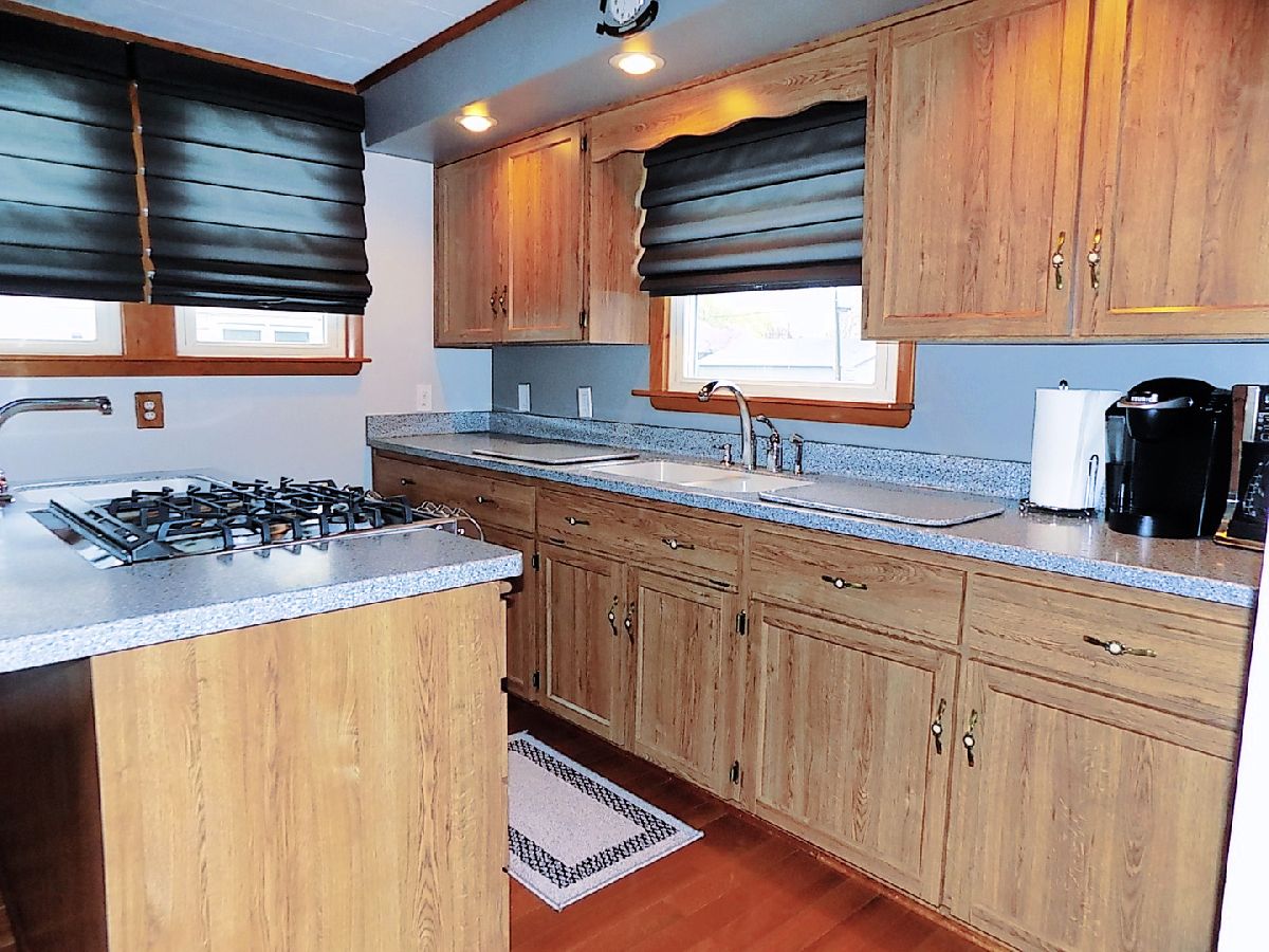 Beautiful, clean, well maintained home with 3 bedrooms, updated kitchen with Corian countertops, breakfast bar, full dining room, walk in closets, full basement, maintenance free deck, and 2+ car garage. Garage has extra driveway area and alley access.