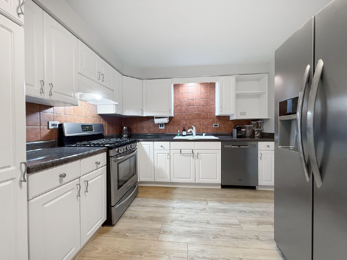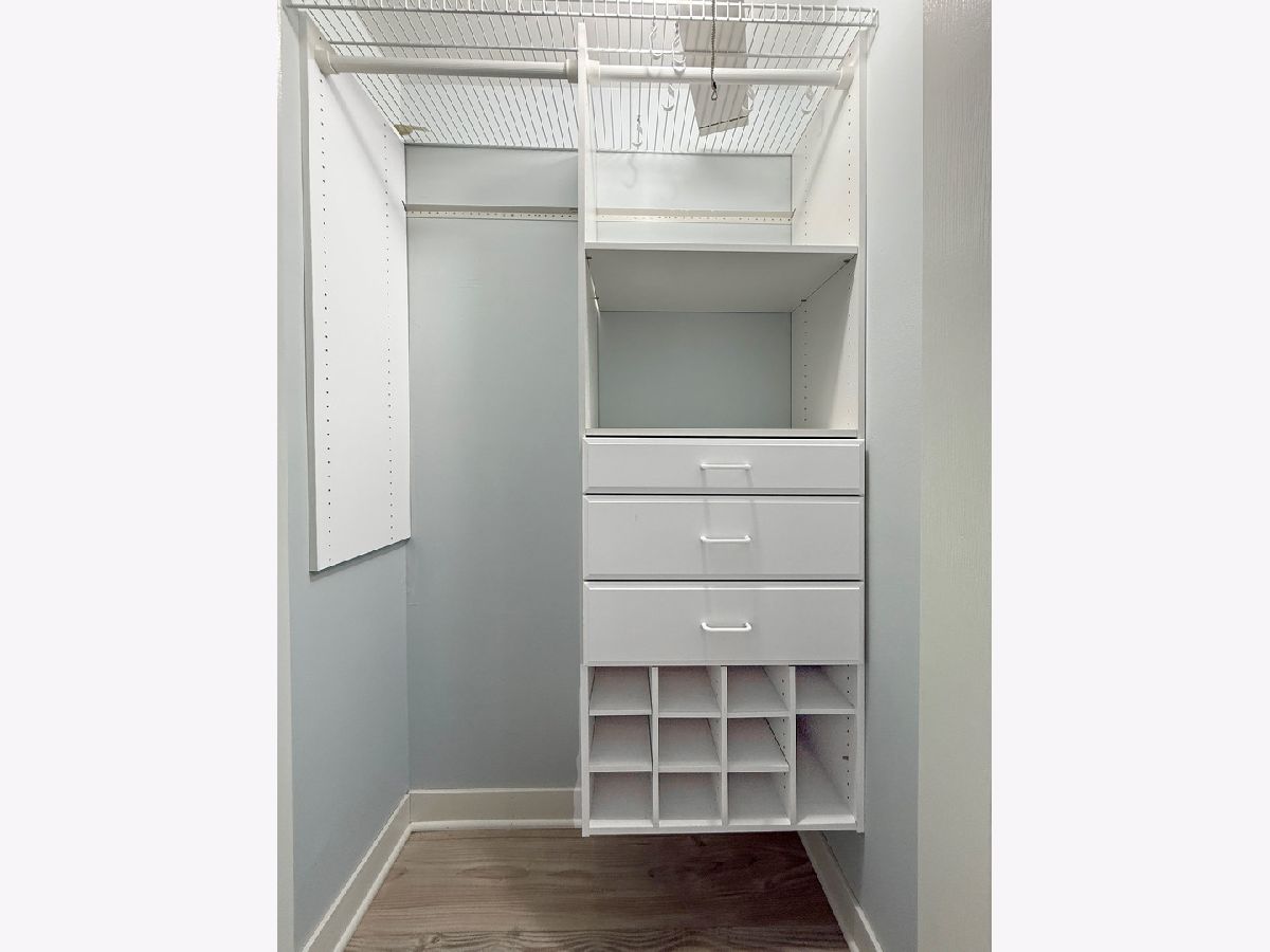 Beautiful and updated, this bright unit is so much more than you expected! Brand new remodeled bath boasts custom tile with recessed shelf storage, light-up medicine chest, and updated lighting. Built-in California closets in bedroom, plus built in cabinetry for extra storage. Gorgeous wine bar with refrigerator in dining room, and premium Shaw vinyl plank flooring throughout the unit (all 4 years old). Large kitchen with white cabinets and stainless appliances, new dishwasher in 2023. Smart fixtures throughout include locks, light switches, and power window treatments, plus outlets with USB port. Dryer in closet for added convenience. Lovely balcony off living room. Enjoy summer days in the outdoor pool! Great location close to schools, shopping, expressways. You're home!