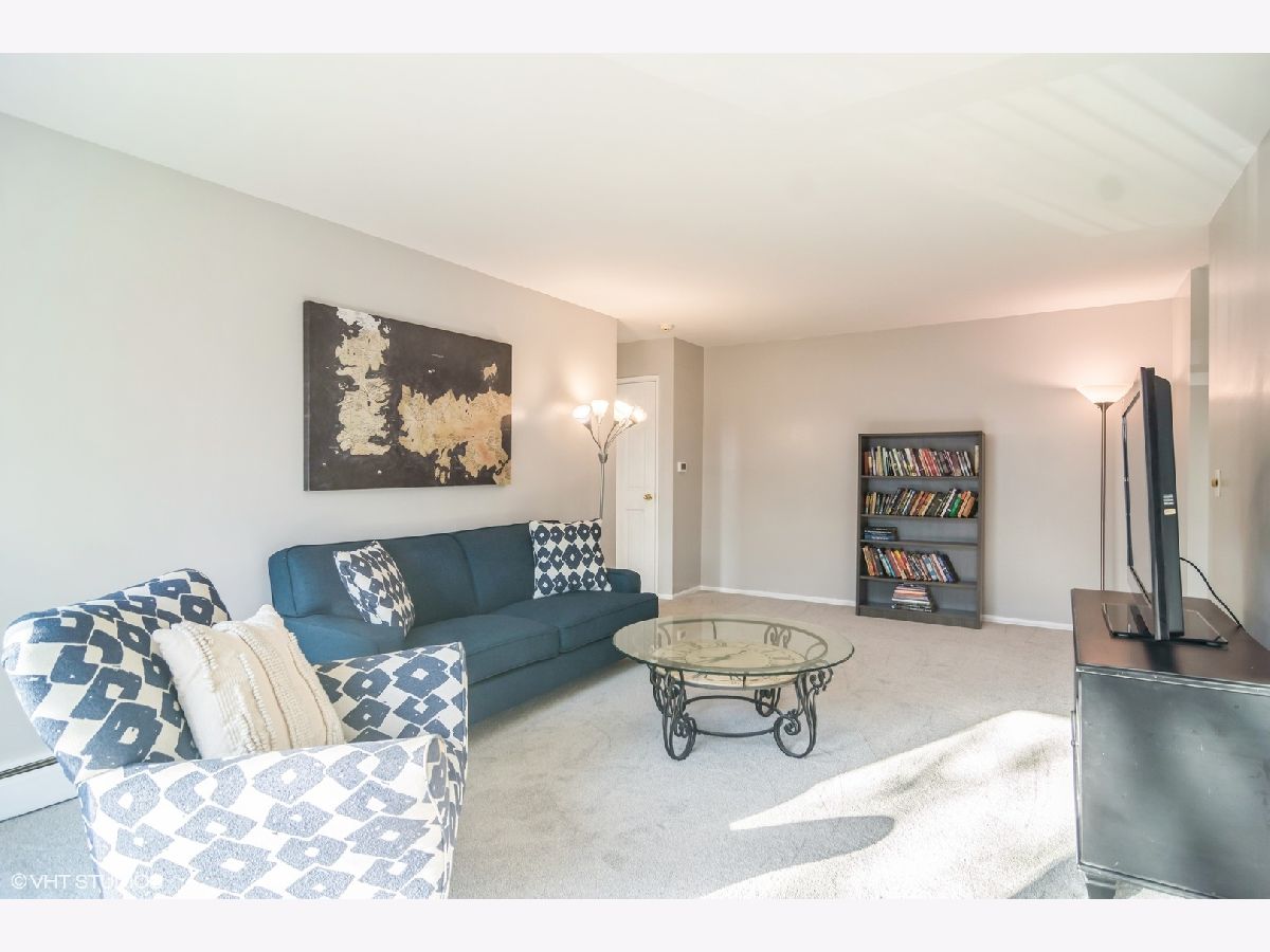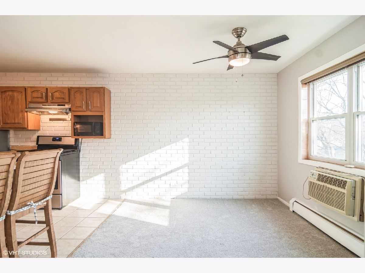Welcome to this sun filled spacious 1 bed 1 bath condo in Arlington Heights. Kitchen with SS appliances and breakfast bar off dining area. Large living room with views looking out onto balcony and tree lined street. Freshly painted and brand new carpet throughout! Laundry conveniently across the hall with app access, no need to carry coins!! Additional storage space in basement. Assigned parking spot in back of the building with plenty of guest/street parking available. Rentals allowed. Close to downtown Arlington Heights, Mariano's, Metra, restaurants, parks and more!!