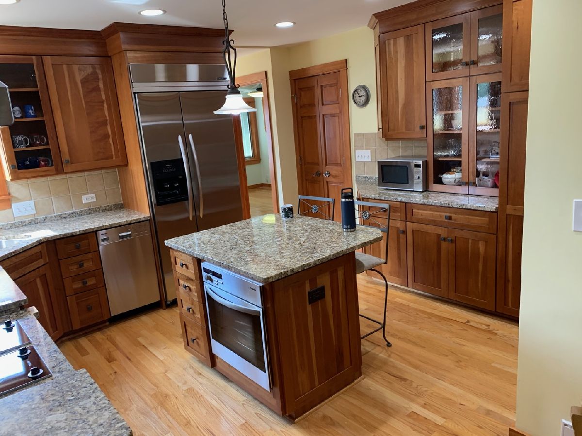 Stunning, Amazing, Beautiful describe this home Located in highly sought-after downtown Hinsdale. You will love this meticulously kept 2 story home with hardwood floors and radiant floor heating throughout. No need to turn on the furnace most of the time and hypoallergenic. Solar water heating... Very low gas bills, BEAM central vacuuming system, which also contributes to being hypoallergenic. Large kitchen featuring level 2 granite countertops, Miele kitchen appliances, built in KitchenAid refrigerator, water filtration system, chef grade stainless hood, some glass door cabinets, crown, splash, recessed lighting and an awesome breakfast island boasting plenty of drawers and storage throughout. There's also a built-in planning desk with drawers and cabinets above for which flows perfectly into the dining area. Master suite on the 1st floor with Spa like large bathroom with separate shower & tub. The large bedrooms feature Elfa Closet Systems with solid wood 6 panel doors and ceiling fans. You have beautifully remodeled bathrooms, a whole house fan as well as a walk-up attic. All window, door trim and baseboards in the house were re-done and upgraded in 2011 when the upstairs was completed with final touches. There are 2 sets of washers & dryers, one set in the basement and one set of Miele washer & dryer on the 1st floor for your convenience. Large yard, 2 car garage, great deck right off the kitchen for grilling and entertainment, and a brick patio below featuring a Sunsetter retractable awning. Your beautiful yard also features a unique beautiful Japanese Yoshino Cherry Blossom Tree. Short walk to the Hinsdale main train station. No beating the rush to search for a parking space in the morning. Enjoy an evening walk with the family to downtown Hinsdale to visit many local shops, restaurants or village events. Kramer grocery store, Walgreens pharmacy, and doctors' offices, banks, cleaners, and etc. are also a 3-5-minute walk with a pedestrian crossing on this Vine St. Madison elementary school and Hinsdale Middle School (both Blue Ribbon Schools) and Hinsdale Central districts schools.
