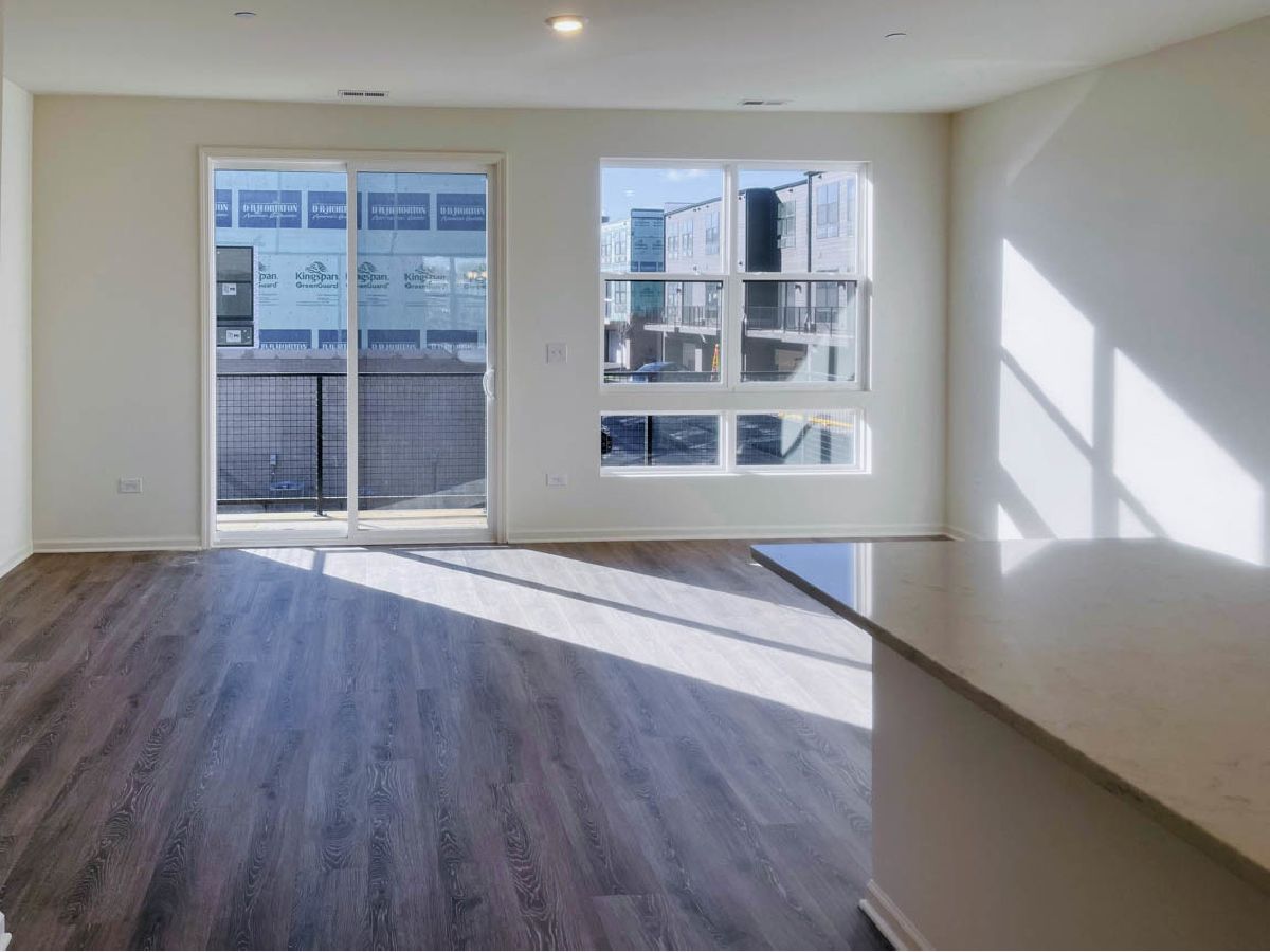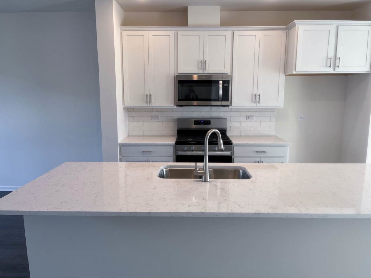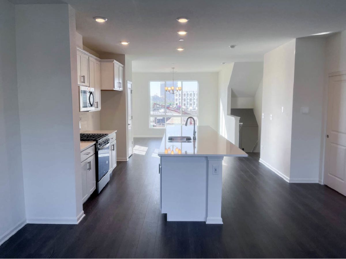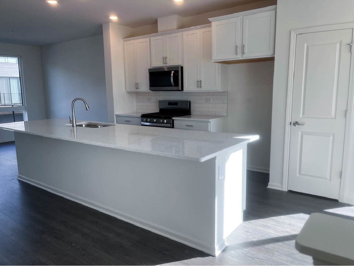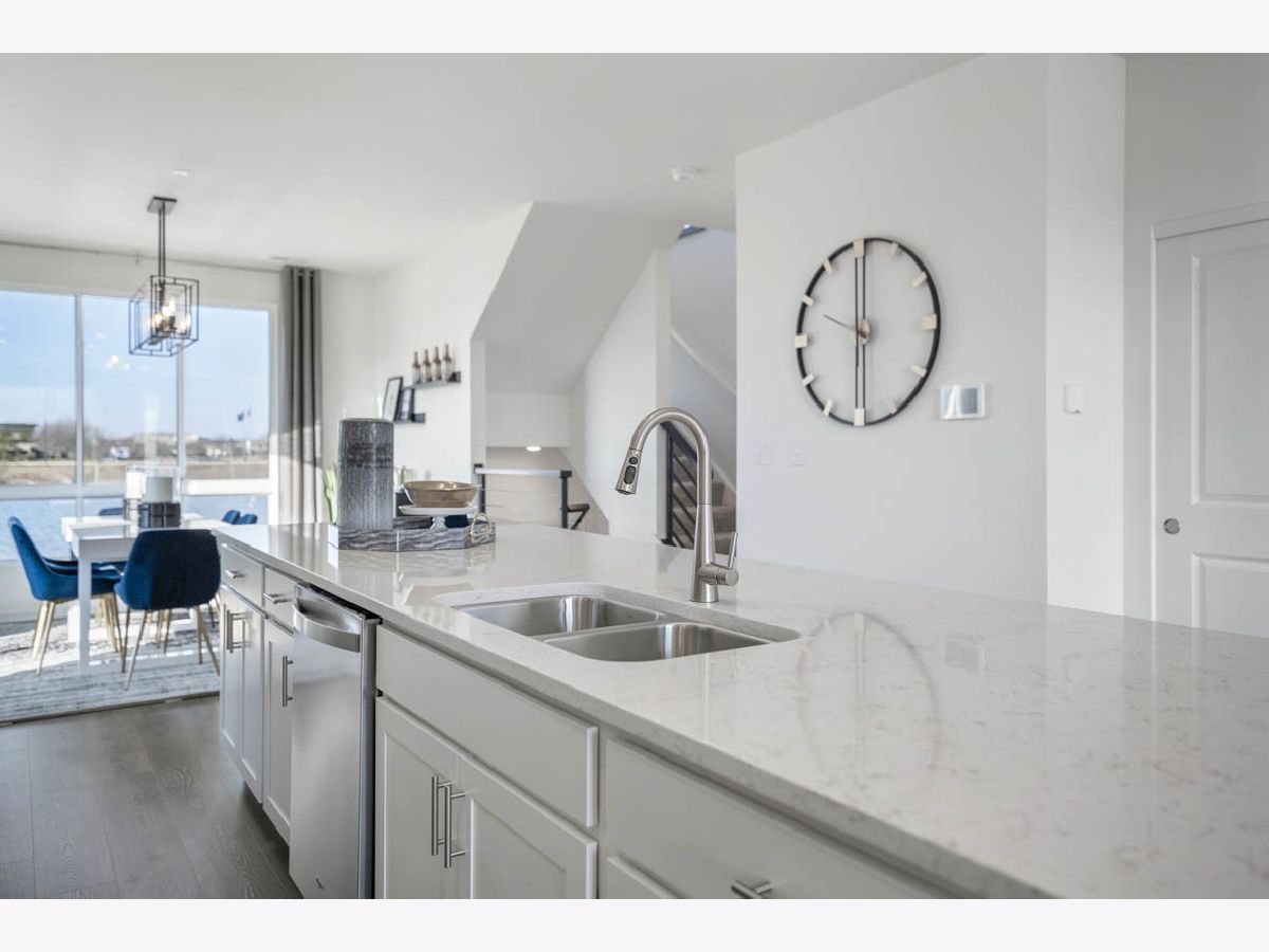 Discover yourself at 1200 Lakepointe Dr, Schaumburg, Illinois, a beautiful new construction CORNER townhome with water views and beautiful sunsets in our Northgate at Veridian community! This townhome is ready for an immediate move-in! Homesite includes low maintenance, professional landscaping in this exemplary community of Northgate at Veridian! This Grayson townhome plan offers approximately 1,800 square feet of living space with 3 bedrooms, 3.5 baths, and a flex room. As soon as you step inside, you'll be greeted by the finished flex room featuring a full bathroom, which is perfect as a den or playroom, workout room, office or even a 4th bedroom! Walking up the stairs, you will find this home's open concept living space. The expansive kitchen overlooks both the front dining and back great room areas, making it the ideal space to entertain. The vast floor to ceiling windows boasts a larger feeling to this magnificent home that already includes 9' ceilings on the main level. Additionally, your kitchen features 42" white designer cabinetry with dove tail drawers and soft close features and matching crown molding, in addition to a spacious island with quartz countertops, ceramic backsplash, farm sink and pantry. Enjoy your large primary bedroom with a walk-in closet and connecting en suite bathroom. The rest of the upper level features a laundry room, secondary bedrooms with a full second bath, and linen closet. You will find Revwood flooring throughout the main level living space, foyer and owner's entry and the full bathrooms include fully tiled flooring. Impressive innovative ERV furnace system and tankless water heater and conduit for future electric car charger in the garage, round out the amazing features this home has to offer! Northgate at Veridian is in a premier location just minutes to I-90, Rt. 53, 20 minutes to O'Hare Airport, and 45 minutes to Chicago on the Metra train. Residents attend School District #15, and Fremd High School District #211. Living at Northgate at Veridian, you'll experience the excitement and convenience of all the shopping, dining, and entertainment you need at your fingertips. All Chicago homes include our America's Smart Home Technology, featuring a smart video doorbell, smart Honeywell thermostat, Amazon Echo Pop, smart door lock, and more. Exterior photo of actual home. Interior photos are of similar home and model home. Actual home built may vary.