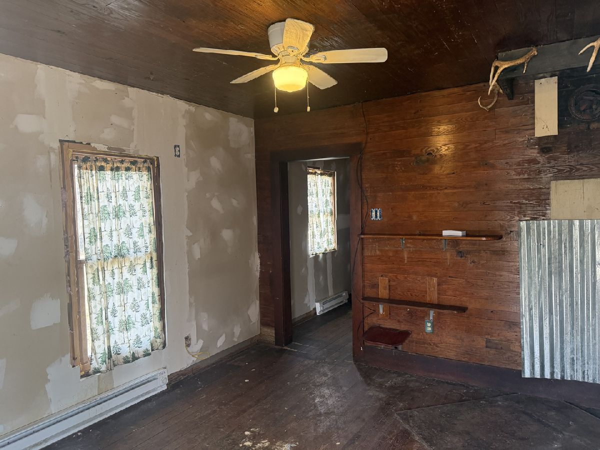 Step back in time with this charming 1930's bungalow nestled on just under 5 acres of peaceful countryside. Offering the perfect blend of privacy and convenience, this property sits on its own slice of paradise just minutes from town - a location that's hard to beat. Recent improvements provide a strong head start for the next owner. A new 200-amp electric panel with underground service has been installed (in last 10 years), along with a new roof, siding, and soffit since 2022. Blown-in insulation has been added to all exterior walls for improved efficiency, baseboard heat has been installed, and the bathroom has been updated. Inside, you'll find a cozy living room, kitchen, bedroom, full bathroom, large pantry, and a back porch offering additional storage or flex space. The covered front porch is the perfect place to enjoy your morning coffee while taking in the peaceful surroundings. A 60x30 detached garage with a 4-inch concrete floor and electricity adds incredible potential. Repair the existing structure or build a new barn on the existing concrete pad to suit your needs. This property is being sold AS IS. All items in the garage, with the exception of the motorcycle, will remain with the sale.