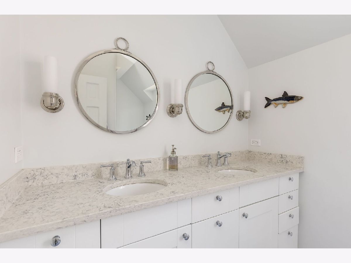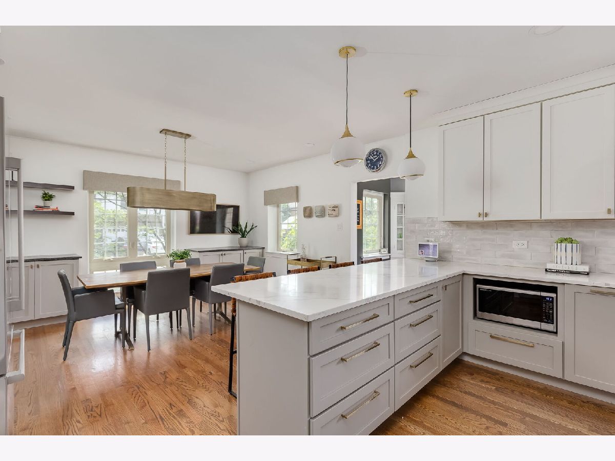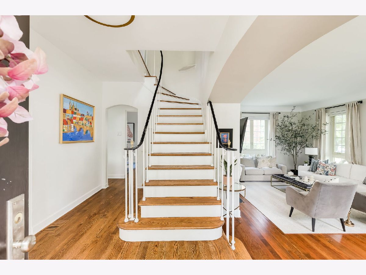 This beautifully renovated home offers the ideal layout for today's lifestyle. The central foyer is just off of the spacious sunken living room, complete with a cozy fireplace and ample space for multiple seating areas, dining, or game nights. The formal dining room seamlessly connects to the professionally designed custom kitchen, outfitted with top-tier appliances (2021), stone counters, and thoughtful details-The kitchen sink offers views of the backyard, seamlessly connecting indoor and outdoor living. A sunny den with corner built-ins, a bedroom, and a stylish powder room (2018), round out the main level. Step out from the kitchen's mudroom addition (2021) to the paver patio, garden beds, green space, and the refurbished 2-car garage (2024) with a new roof, floor, and door. Upstairs, you'll find three generous bedrooms with organized double-door closets, built-ins, and space for desks or play. The two rear bedrooms share a freshly remodeled (2018) family bath with double sinks, while the spacious primary suite offers a serene retreat with a luxurious bath-featuring a walk-in shower, double vanity and a walk-in closet with custom built-ins. The fully finished basement (2022) includes a large family room, a third full bath, a finished workout/storage room and laundry area. Most windows were replaced in 2017, bringing efficiency and comfort throughout. Other major updates include-new ductwork, furnace and air conditioning (2017), water heater (~2021) and drain tile system (2020) on top of the major kitchen and bathroom renovations-making this home truly move-in ready. Situated on a corner lot with easy access to parks and in the sought-after Mann Elementary School district, this is a rare opportunity to own a thoughtfully upgraded home in a wonderful community.