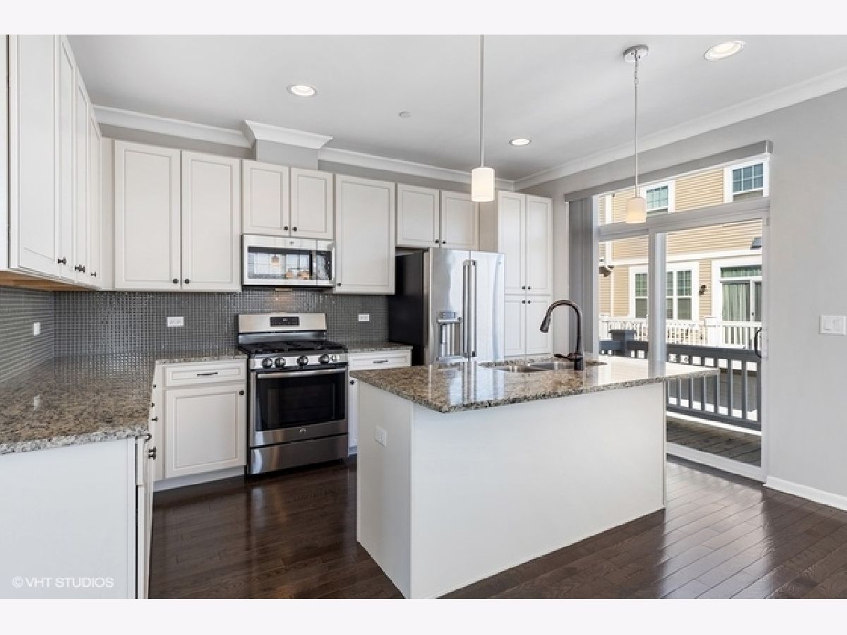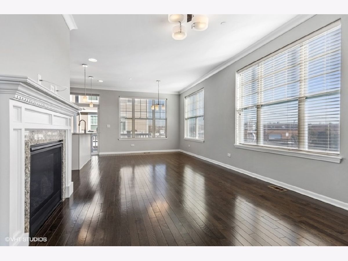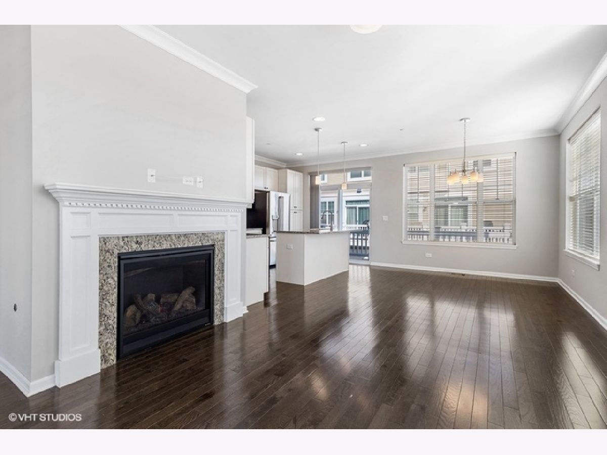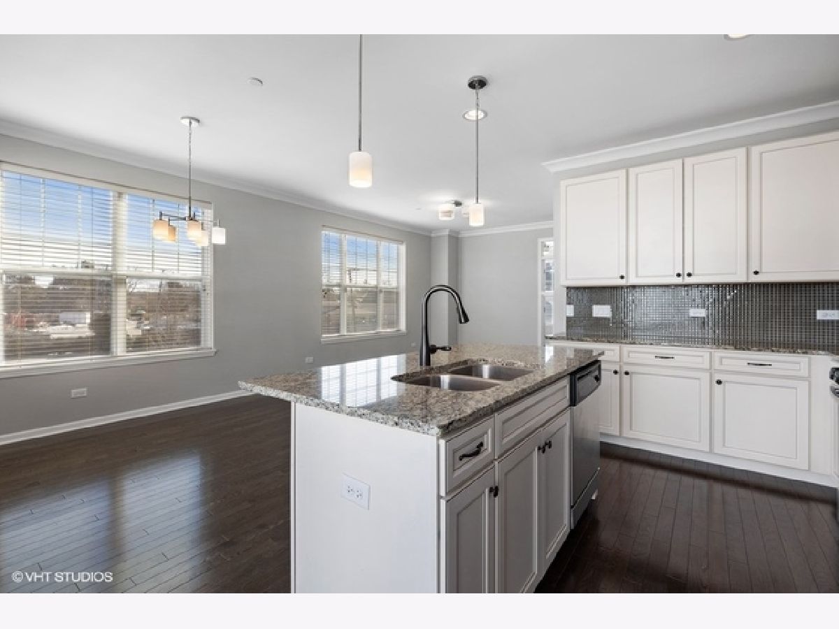 Move right into this immaculate 2017 new construction 3 bed/2.1 bath fee simple end unit townhouse in Park Ridge. Natural light shines through this 3 story open concept townhouse with three exposures. Great flow throughout; main level features open great room leading to large den or office with glass paneled French doors and half bath. Kitchen features gorgeous white shaker cabinets with subtle inlays, full height glass tile backsplash, stainless steel appliances, double sink and granite countertops with center breakfast island. Walk out to your own private balcony, perfect for breakfast table or grilling. Living room offers gas fireplace with wood mantle and granite surround. 3 beds and 2 full baths upstairs, offering a true primary suite. Primary suite features 11' vaulted ceilings, large walk in closet and ensuite bath with granite counter vanity and extra deep soaking tub. 9' ceilings, hardwood floors, custom blinds throughout and recessed lighting. Lower level features family room and additional storage. In-unit washer/dryer on your bedroom level. Attached oversized 2 car garage with extra storage. Wonderfully maintained, landscaped gated community in a super convenient Park Ridge location close to town, restaurants, shopping, parks, schools and trains.