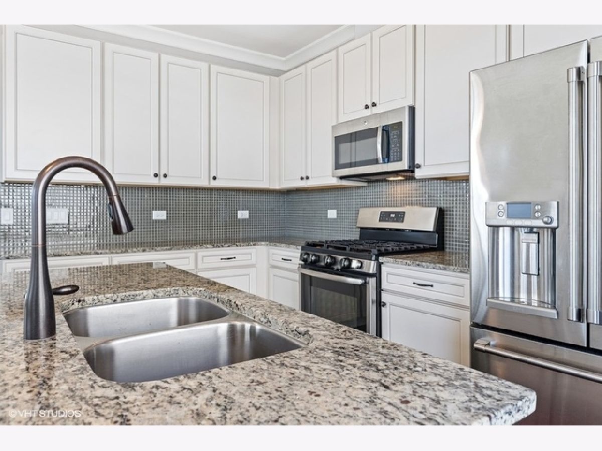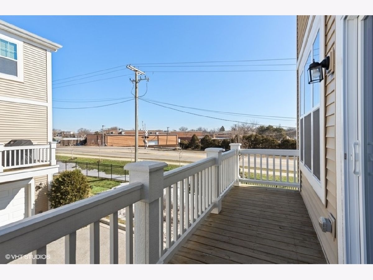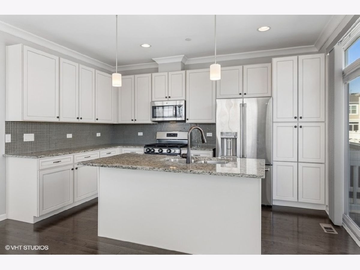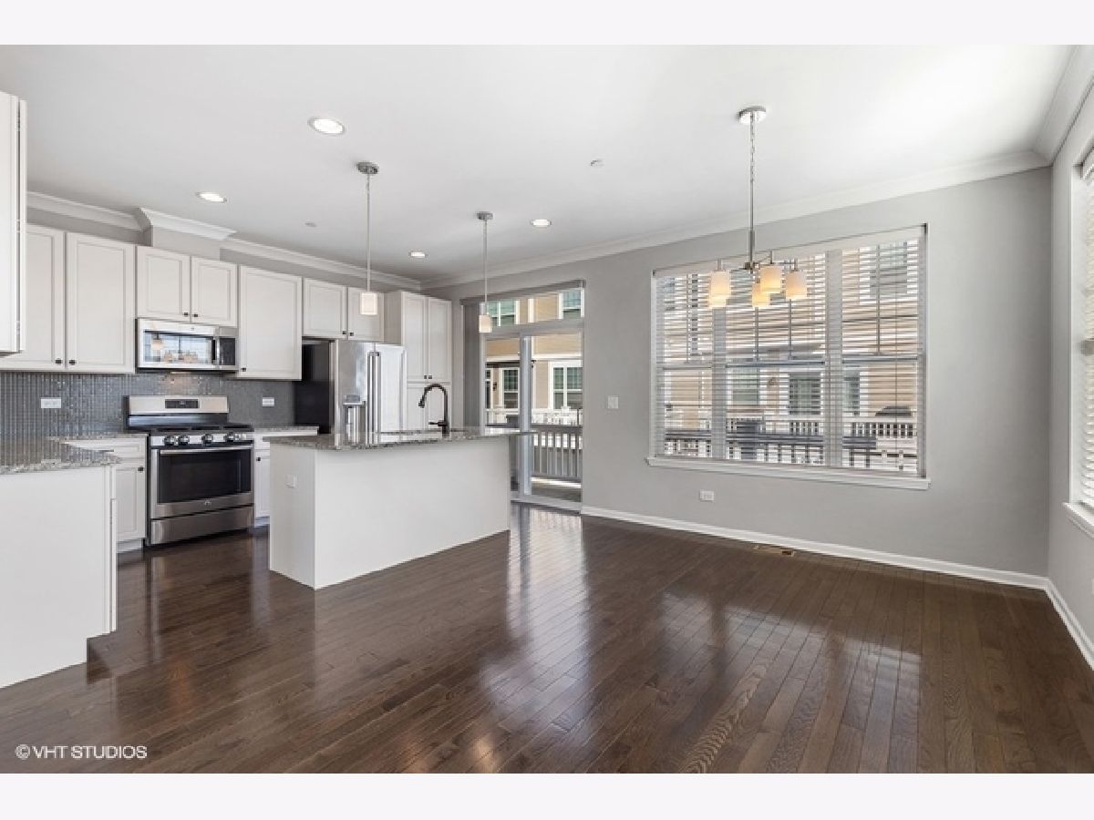 Move right into this immaculate 2017 new construction 3 bed/2.1 bath fee simple end unit townhouse in Park Ridge. Natural light shines through this 3 story open concept townhouse with three exposures. Great flow throughout; main level features open great room leading to large den or office with glass paneled French doors and half bath. Kitchen features gorgeous white shaker cabinets with subtle inlays, full height glass tile backsplash, stainless steel appliances, double sink and granite countertops with center breakfast island. Walk out to your own private balcony, perfect for breakfast table or grilling. Living room offers gas fireplace with wood mantle and granite surround. 3 beds and 2 full baths upstairs, offering a true primary suite. Primary suite features 11' vaulted ceilings, large walk in closet and ensuite bath with granite counter vanity and extra deep soaking tub. 9' ceilings, hardwood floors, custom blinds throughout and recessed lighting. Lower level features family room and additional storage. In-unit washer/dryer on your bedroom level. Attached oversized 2 car garage with extra storage. Wonderfully maintained, landscaped gated community in a super convenient Park Ridge location close to town, restaurants, shopping, parks, schools and trains.