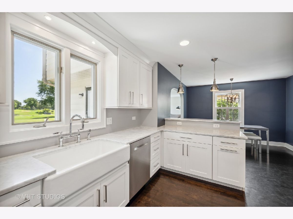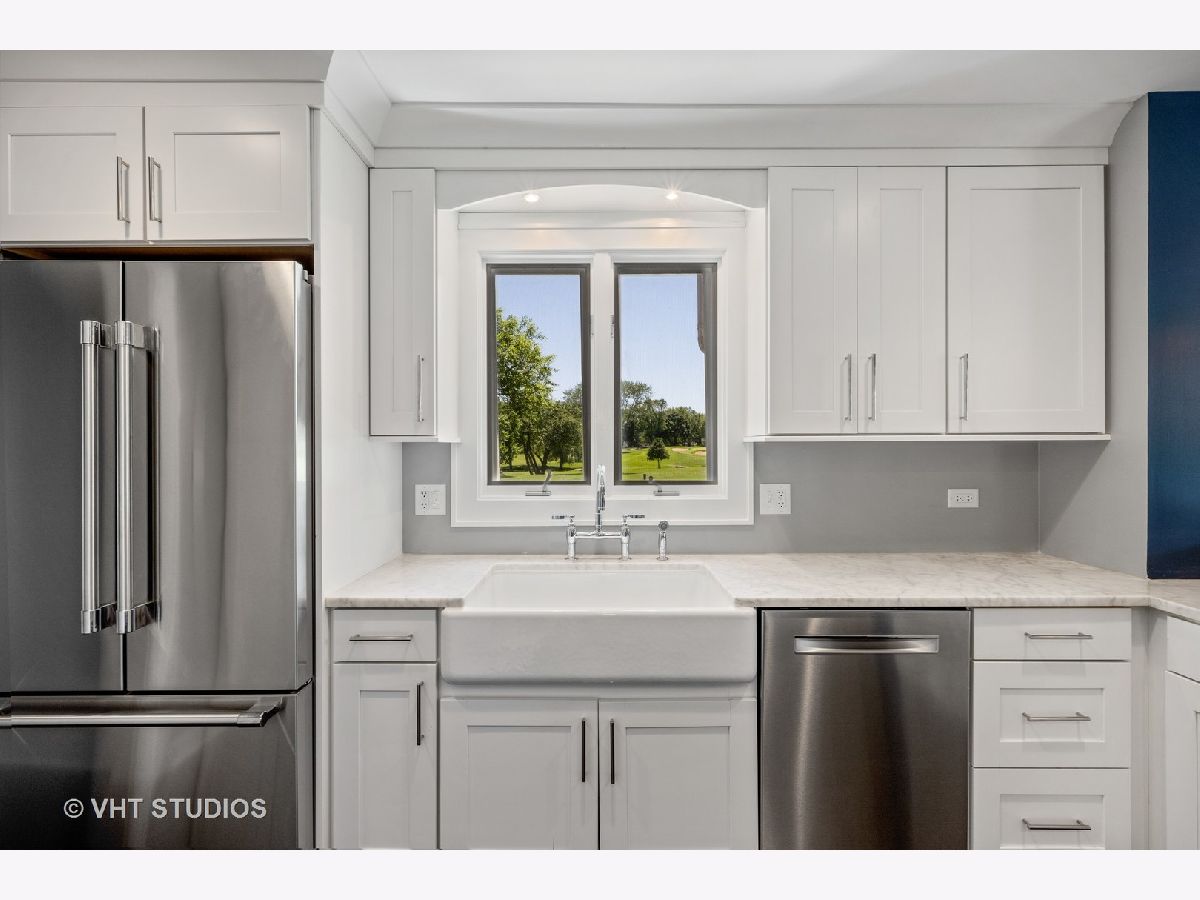 Amazing Value on one of the most desirable streets in-town Geneva!!! FABULOUS COUNTRY CLUB GOLF LOCATION... All updated and remodeled "on-trend" two-story white house with black shutters backing to rolling open golf course panoramic views! A gourmet chef's kitchen allows you to enjoy ever-changing vistas while working at your farm sink---cooking is a pleasure! White cabinetry, stainless steel appliances and range hood, marble countertops, "trendy" light fixtures, hardwood floor, built-in beverage refrigerator, breakfast bar, and table space for sit-down dining! Living room has built-in shelving/cabinetry, brick fireplace with custom surround, hardwood floor, and great place to entertain or relax! Family room and dining room have walls of windows highlighting incredible vistas---perfect place to entertain guests! First floor laundry and remodeled powder room. Ample master bedroom has hardwood flooring and pleasant golf course scenery! Redone vaulted bath boasts huge shower with contemporary tile and chic flooring. Three other bedrooms (BR 3 -4 are tandem) on second floor. Room for EXPANSION or adding full bath upstairs---endless potential! Basement has sink for projects and great storage or play area. Enjoy the one-of-a-kind locations that offer a brick paver patio AND a stone patio with outdoor brick fireplace---relish your SMORE'S by moon light! Walk to town, Metra train, river, parks, festivals, library, and shopping! Make this special home and location your next residence---make life-long memories here!