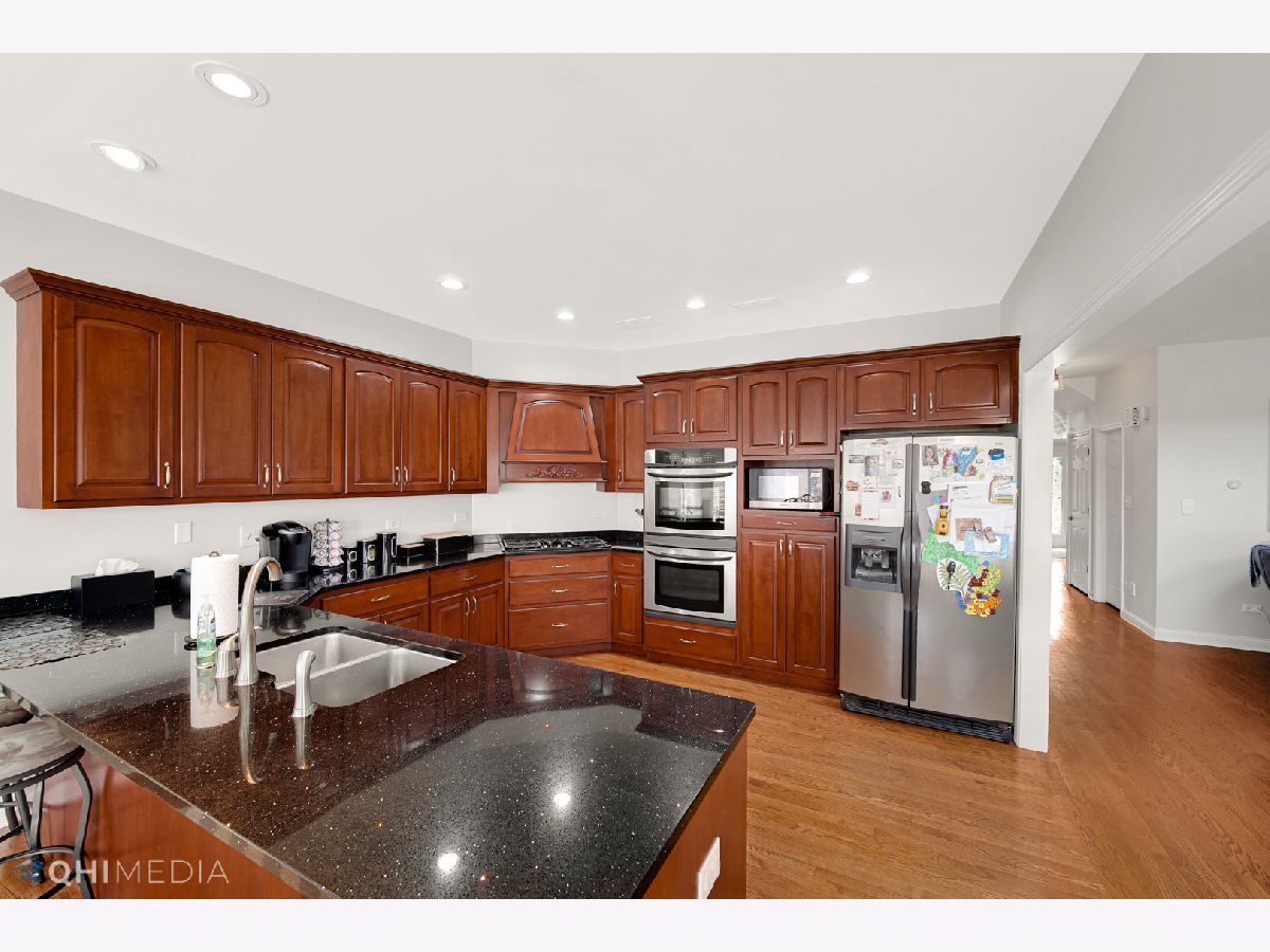 HUGE PRICE REDUCTION on this Exceptional home with stellar layout! Included floor plan images give a snapshot of the design but only walking through this property does justice to its creative, multi-faceted build. Double french doors on the left of big, bright foyer open to large den, adjacent office/living space and separate bedroom with full bath and separate laundry room. Wood staircase to upper level with four large bedrooms. (The master is almost 400 sq. ft. and another is over 250 sq. ft.) Tray ceilings, large walk-in closets, six-panel doors and new carpet. Main living space with a wood-burning/gas fireplace, radius windows and cathedral ceiling. Meals and entertaining are chores no more thanks to the extensive kitchen complete with long breakfast bar, expansive high-end granite countertops, double oven and plenty of cabinet space. Private hallway from back entry houses a upscale wash sink, cabinets and bath - making active family lifestyle and outdoor parties a breeze! Mega full basement with high ceilings, roughed in rec room and additional bath. Recent updates include new main level a/c unit, carpet, light fixtures, door hardware & hinges, garbage disposal, dishwasher, sump pump and chimney cap. All grout was cleaned and resealed - ductwork was professionally cleaned & sanitized. The 3-car plus garage is huge, bright and CLEAN. Fabulous location near newer shopping developments and Metra station - on a premium corner lot. Custom design is ready for you to move right in! (Seller may not have time to excavate area pool was removed from and is offering a credit in lieu.)