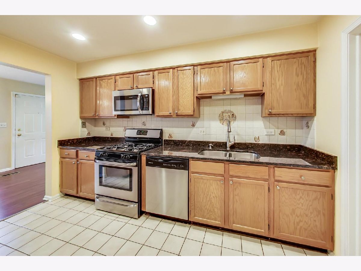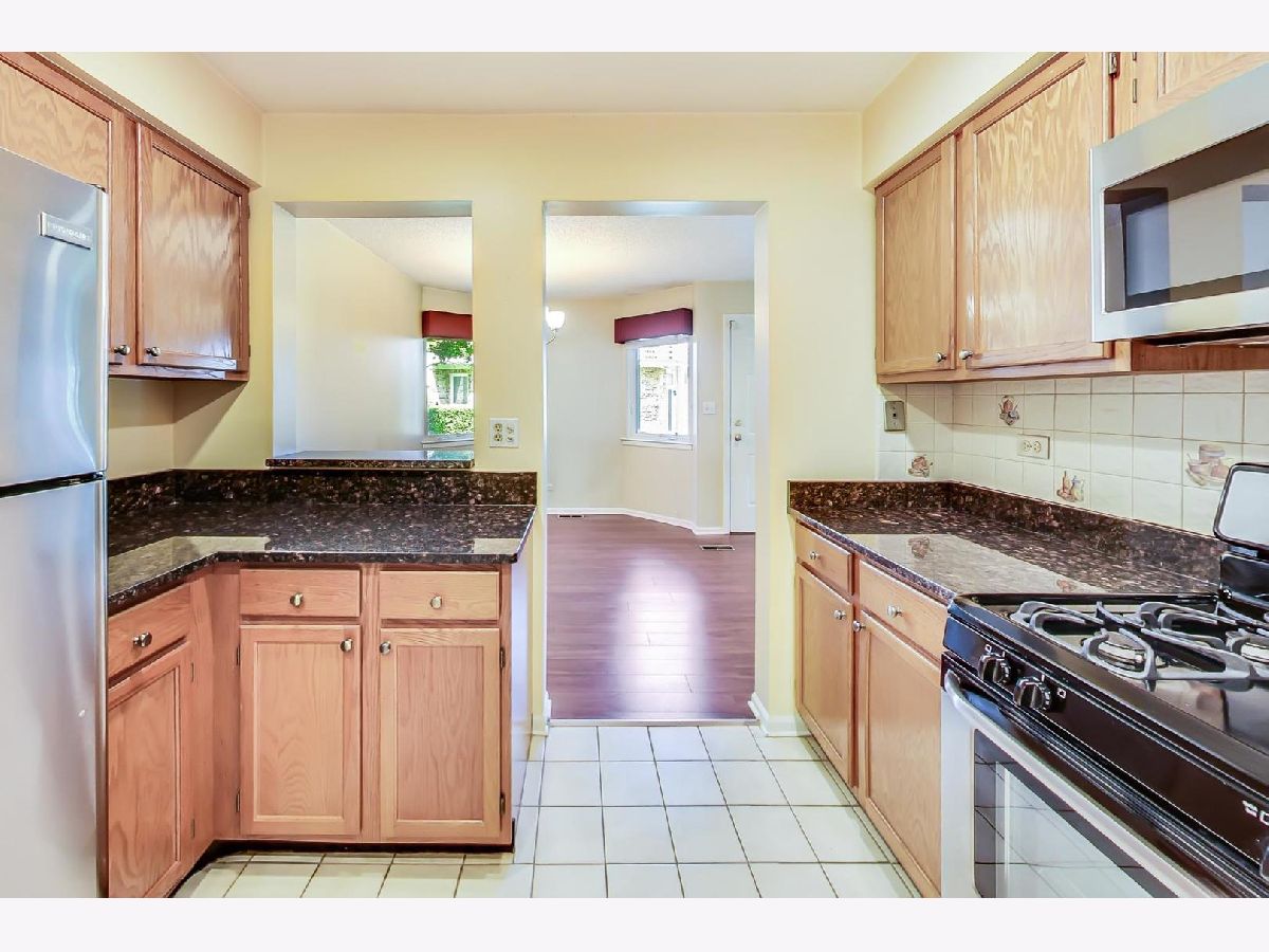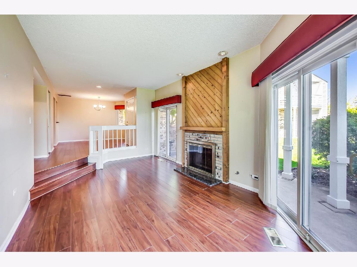 BEAUTIFUL 2 bedroom RANCH townhome/condo with private entrance. Stevenson High School! You will fall in love with this sunny end unit. Gorgeous hardwood floors throughout, 2 slider patio doors, tall ceilings, numerous windows, fireplace, primary en-suite, first floor laundry, attached garage. Kitchen is large with granite counter tops, updated cabinets and stainless steal appliances, plus enough space for a kitchen table. Step off back patio into wide open green space - beautiful. Award winning schools, minutes to train, 53, shopping, restaurants and more. Welcome Home!