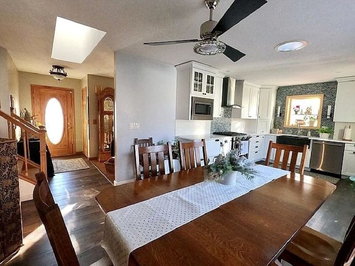 Located on a quiet street just steps away from Thomas Park, Pond, Playground, Basketball Court and Walking Path. New kitchen offers Maple cabinets, Quartz countertops, Granite Farm sink, Garden window, waterproof luxury vinyl tile, Ceramic Backsplash and upscale stainless appliances. Etched Patio door. Dining area overlooks the spacious family room with skylight, Sandstone Gas fireplace with Granite Hearth and custom mantle. New oak woodwork, 6-panel doors and banisters. Main floor laundry room with 1/2 bath. Recessed lighting, ceiling fans and storage throughout. Master bedroom offers full bath with Granite floor and walk-in closet. Furnace and Central Air (2015), Water Heater (2019), Roof (2012), Garage Door & Opener (2017) and newer Windows throughout. Radon Mitigation System. Finished and heated garage with built-in work bench and shelving. New large storage shed with loft. Large patio and chain link fence. Nicely landscaped. This home is total perfection inside and out.