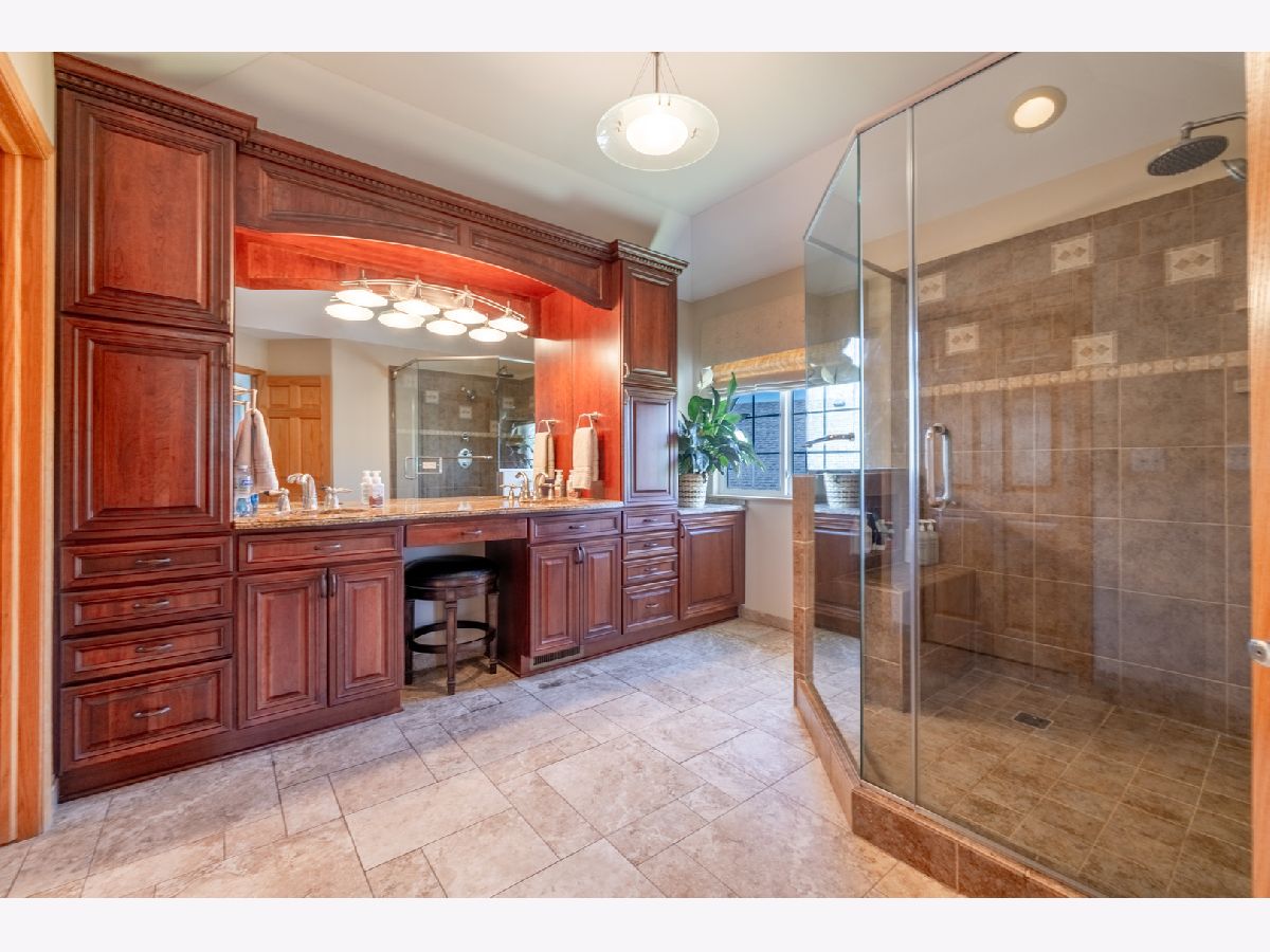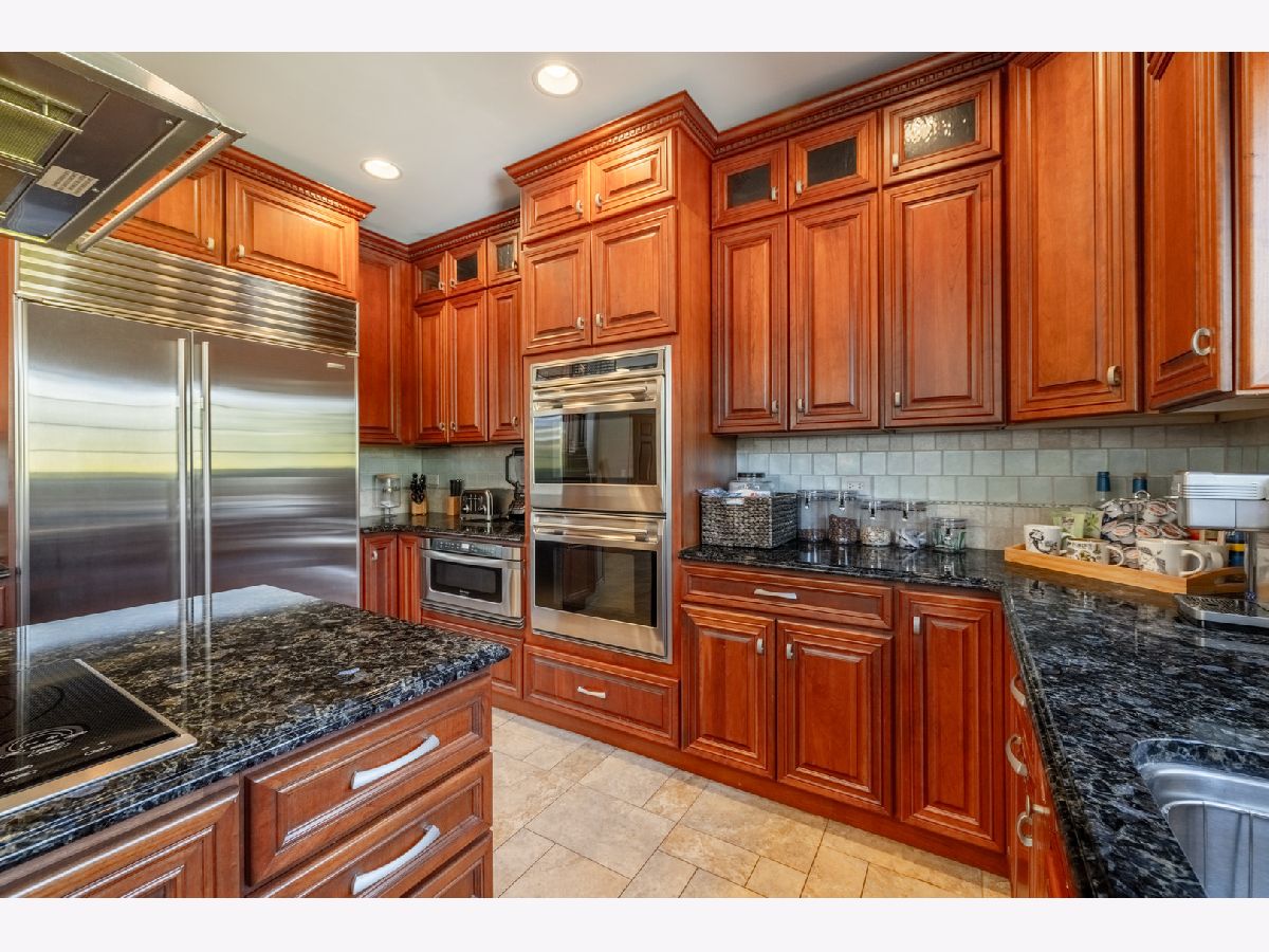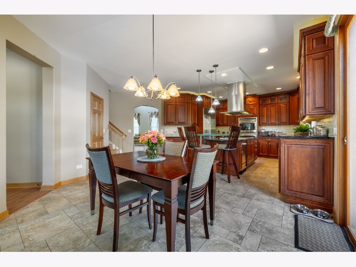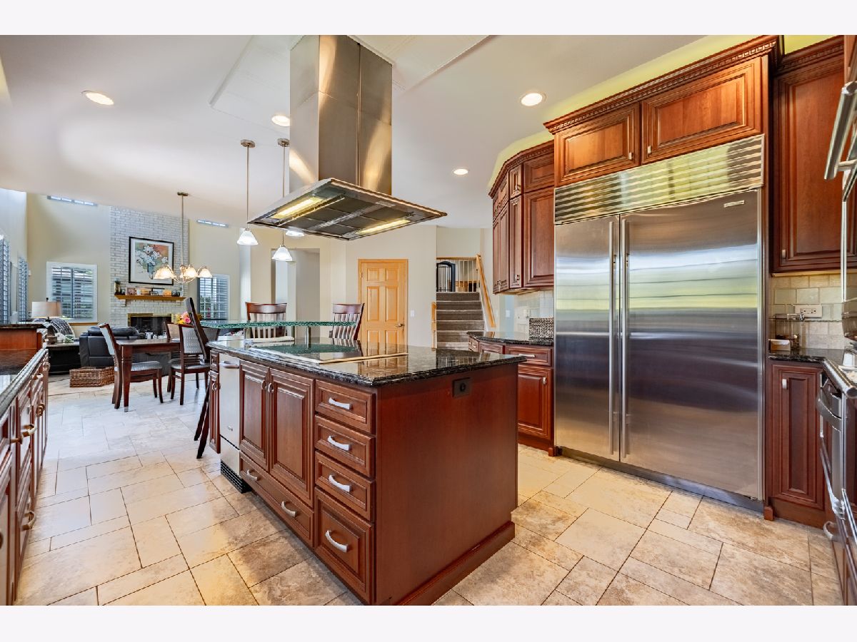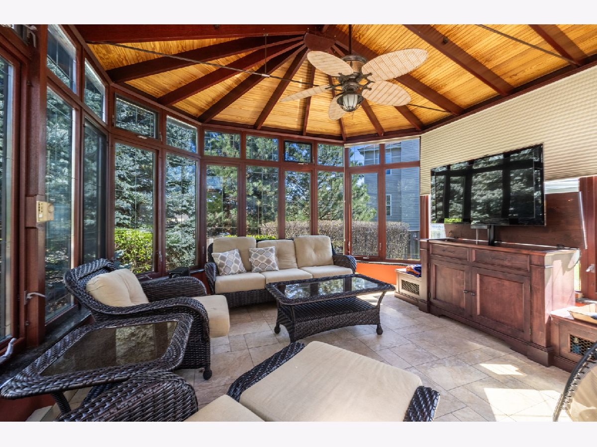 Stunning custom home in desirable subdivision at the top of a cul-de-sac awaits you with no work needed, just move in! The living room boasts a 2-story ceiling that flows into the formal dining room. The gourmet kitchen features top-of-the-line appliances including a Sub-Zero refrigerator-freezer, Wolf double oven, microwave, Wolf cooktop on the island, double drawer dishwasher, and a built-in KitchenAid ice machine. The large island also includes a glass top table, wine rack, and granite countertops, with sliding doors leading to the oversized paver patio. Enjoy ample relaxation space in the 2-story family room with a gas log fireplace. The first floor also has a home office. Upstairs, you'll find 4 bedrooms, with the primary bedroom offering a generous sitting area, 2 walk-in closets, an extra closet, and a luxurious master bath. The finished basement provides additional entertainment space with bamboo hardwood flooring, a spacious TV room, a bar, and a full bathroom with a steam shower. Experience the outdoors on the large brick paver patio leading to a fabulous 4-season room, perfect for enjoying all year round. This room is heated, ideal for watching winter sports or just relaxing. The three-car garage offers plenty of space with built-in cabinets for storage and an epoxy floor. Additional features include a high-efficiency furnace, an Aprilaire steam humidifier, whole-house air filtration system, lawn sprinkler system, and professional landscaping. Roof and garage doors replaced within the last 2 years! Conveniently located near restaurants, highways, schools, and more, this home has it all. Don't miss the chance to see it before it's gone!