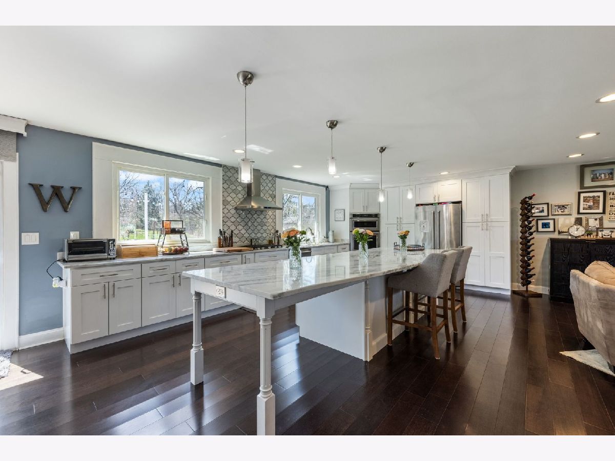 ABSOLUTELY STUNNING sun drenched home! You will love all of the custom work and high end finishes in this home. The kitchen is open to the large family room, perfect for entertaining large/small groups. The impressive kitchen has a massive island that alone is over 12' long and 4+' wide. Marble counter tops throughout kitchen with custom tiling behind the cooktop create a luxurious look. Upgraded lighting throughout main floor. The fireplace in the family room has floor to ceiling stone creating a stunning focus point. Designer wallpaper in dining area, hall bathroom, upstairs third bedroom and laundry room. Custom blinds in office, kitchen and living room. 3 bedrooms & 2 bathrooms upstairs including the primary suite & a 2nd primary suite downstairs which could also be used as an office/playroom/den. Beautiful serene views out of the master bedroom. Windows, roof, siding and interior all new in 2017. Easy walk to downtown DG, train, farmers market, library, shopping and more.