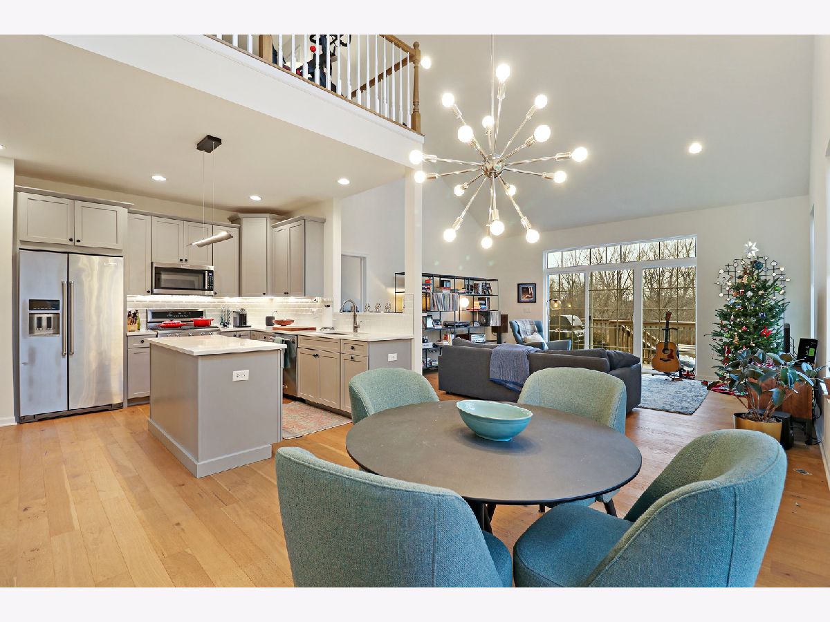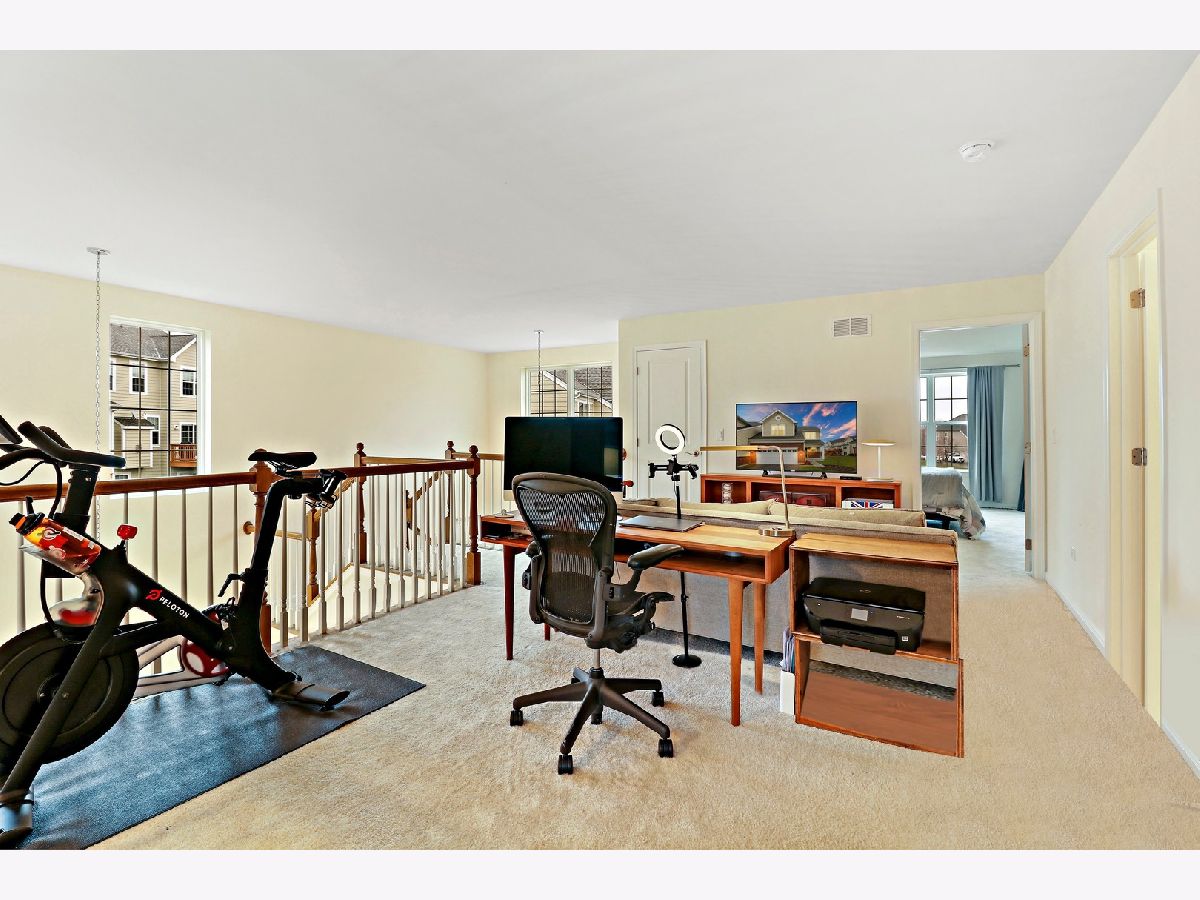 One of a kind, luxury end-unit townhome is now available for you to enjoy your New Year. Built in 2019, this Toll Brothers 3 bedroom, 2.5 bathroom home is the only Tamarack Elite model that has the expanded chef's kitchen and upgraded owner's suite. Located perfectly in Elgin's coveted Bowes Creek Country Club community, you will love having a golf course along with Porter's Pub and Johnny's Supper Club restaurants a short distance from you doorstep. The main level of the home features an open concept layout ideal for entertaining. The kitchen is complete with gray shaker cabinets, white subway tile backsplash, white quartz countertops, smart tech under cabinet lighting and a center island. Soaring cathedral ceilings adorned with recessed lighting and contemporary light fixtures provide a spacious, airy and yet comfortable feel to the family room which also features sliding glass doors opening to the elevated deck. The oversized primary bedroom with large walk-in closet and luxurious ensuite featuring sleek black cabinets, white quartz countertops, and spacious walk-in shower, as well as a laundry room complete the main level. The second level boasts 2 ample-sized bedrooms, sophisticated shared bathroom, and a loft with an abundance of space to house an office, TV area and more. A full English basement with rough-in and 9-foot ceilings can be finished for an additional 900 square feet of living space. The home is situated in a private cul-de-sac location which backs to trees and has direct access to miles of trails which wind through the community. Minutes from the Randall Road corridor make this location ideal. This home is just what you're looking for so make your appointment today.