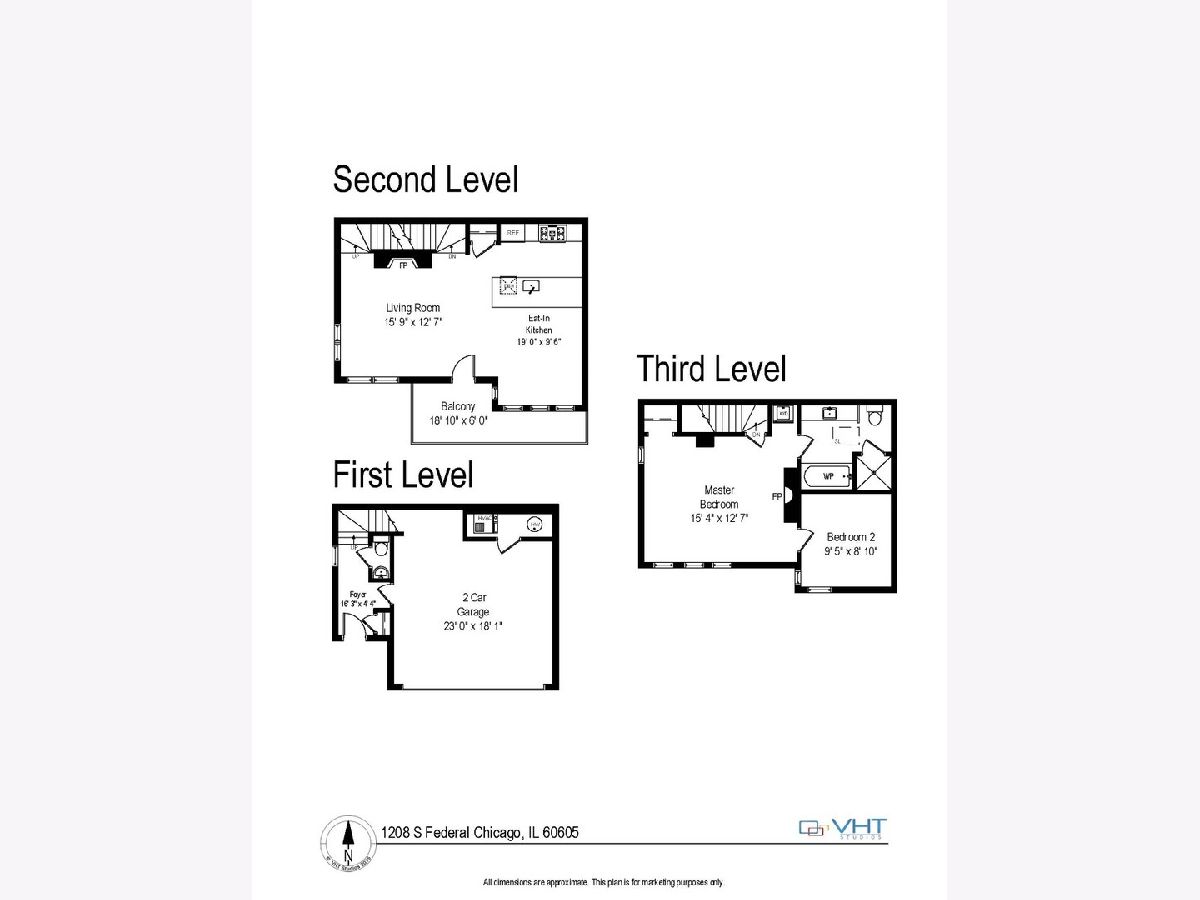 Welcome to this fabulous One of a kind upgraded and well maintained corner unit, 3 story townhouse with 2 fireplaces and 2 car garage, spacious bathroom with separate shower and whirlpool tub. Rarely available 1 bedroom, 1.1 bath townhouse in highly sought-after Dearborn Park II. Owner converted the home from a 2 bedroom unit into a large unique one master bedroom with gas granite fireplace and walk-in closet. Can be reconverted back to 2nd bedroom if you wish. This sun-filled, three level townhome also boasts an attached 2 car garage, hardwood floors, eat-in kitchen, granite counter tops, large breakfast bar, stainless steel appliances, pantry, in-unit washer and dryer, new replaced windows and dining area. Enjoy the spacious, private terrace adjacent to the living level for outdoor entertainment. Two (!) granite fireplaces in both the living room and master suite. The spacious master bathroom features: a whirlpool tub and a shower with a separate high power shower heads, granite vanity sinktop and skylight. Ideally located in the heart of the sought-after South Loop. close to schools, shopping, restaurants, the loop, Lake Michigan, Grant Park, Soldier Field and four world class museums(The Field Museum of Natural History, The Shedd Aquarium, The Adler Planetarium and The Art Institute of Chicago). Easy access to public transportation and major expressways. Ample permit parking for your guests. This is a magnificent, move-in condition home in one of Chicago's desirable neighborhoods.