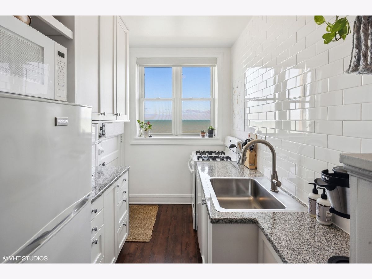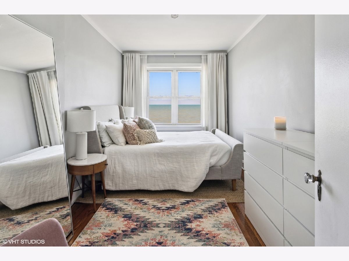 Here is your chance at waking up every morning to breathtaking and unobstructed views of Lake Michigan! This sunny, top floor, beautiful and move-in ready 1 bedroom condo in Rogers Park features hardwood floors throughout, fresh paint, and a very cool Murphy table in the dining room that hides away when not in use. No need to worry about storage as there are 2 big closets, a large cabinet in the bathroom and a storage room in the basement. The building also features a lovely landscaped yard on the lake with a sitting area to gather with friends or simply enjoy the view. Assessments include heat, hot water, cable and internet. No dogs, sorry. Laundry in building. Rental parking available nearby. Just over a mile from Loyola University, a 7 minute walk to the Jarvis red line and steps from the 147 bus.