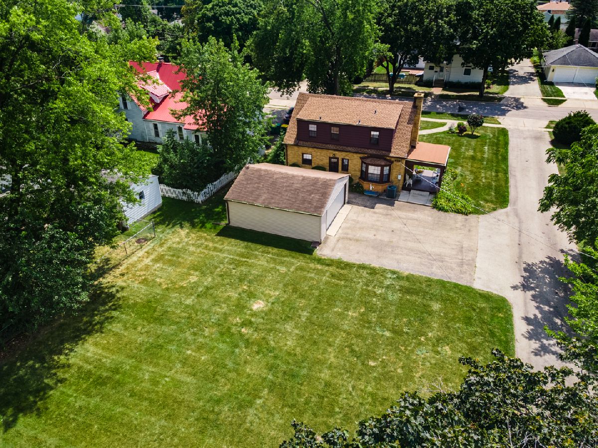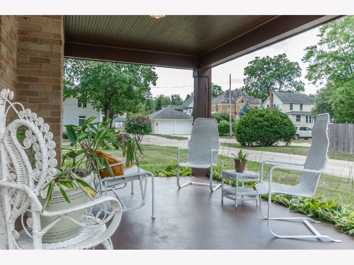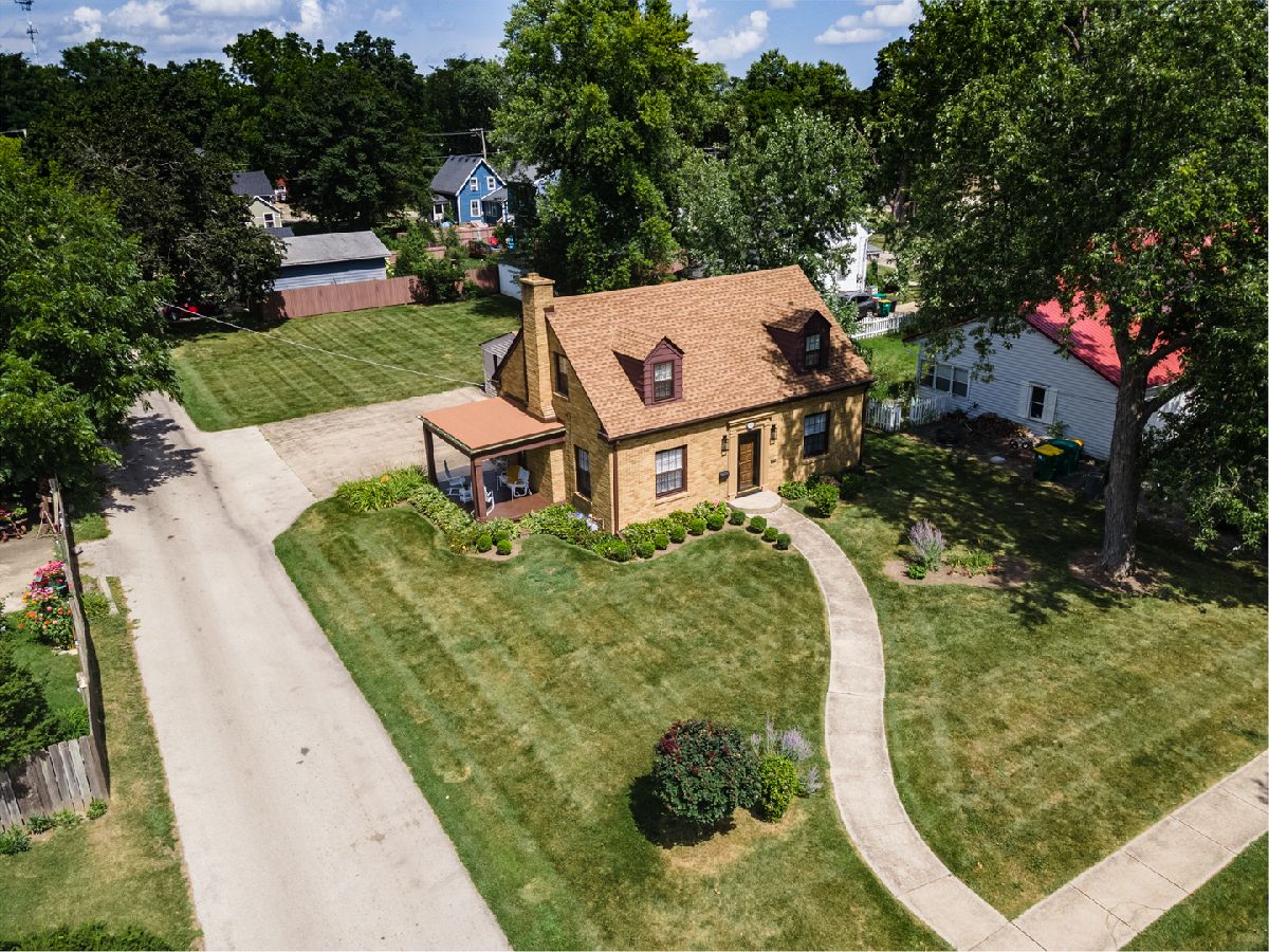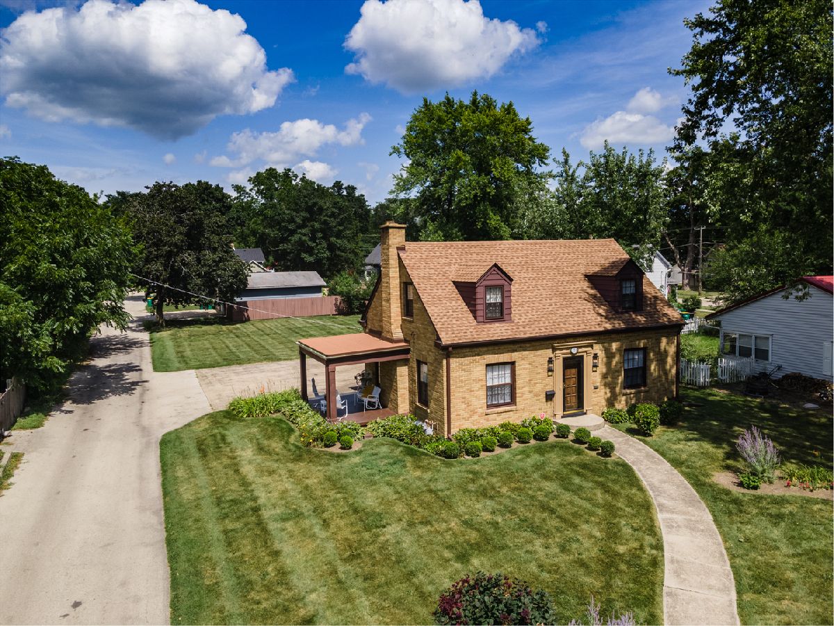 PRISTINE ALL-BRICK 1,545 SQ. FT. CAPE COD HOME SHOWCASES A CLASSY DECOR WITH ATTENTION TO DETAIL! This setting boasts 160' deep lot with alley access and an inviting covered porch with wood wainscoting on ceiling... a favorite gathering space! Winding walkway leads you to the front entry featuring enchanting lantern-style lighting and 15-panel solid wood door... welcome to 121 Home St.! The inviting foyer area presents guest closet and elegant open staircase with white balusters and painted black returns on stairs. Living Room hosts crown molding, tile surround wood burning fireplace with white dentil detailed mantle, cozy bay window setting and a full view atrium door that opens onto the outdoor covered 14'x10' patio. Dining Room displays eye-catching wood beams. Gleaming hardwood flooring, fresh wall color, white window sheers/curtains and candle-like lighting fixtures add ambiance and charm to the heart of this stunning home! Kitchen features solid white countertops, attached white cookbook cupboard, free standing island, open wood display shelf, abundant recessed lighting and ornamental millwork embracing window and vented range hood. 1st level powder room provides mirrored medicine cabinet, pedestal sink and stylish wall sconces. Beautiful staircase leads to the upper level with antique lighting. Primary Suite showcases 3 closets; 1 is cedar-lined & another is a walk-in! Charming dormer window nook, built-in dresser drawers, ceiling-light fan. A quaint glass door opens onto a flat roof... imagine a future roof top setting while enjoying sunrises and sunsets from your Master Suite! 23'x12' bedroom also presents a dormer window nook with built-in dresser drawers and antique light fixture. Linen closet, laundry chute, full bath with antique vanity white top, mirrored oval medicine cabinet, pretty chrome faucet, arched tub/shower opening, wainscoting ceiling and candle-like lighting... a spa-like retreat! The structural integrity of this property consists of steel beam and concrete foundation while also being equipped with copper plumbing, Rheem energy efficient furnace, central air system, 100-amp electric service, double utility sink, washer/dryer hook up, security system and newly painted basement. The 24'x22' 2-car garage provides a workbench, overhead lighting with 3-car wide driveway for additional parking. Recent improvements are new water heater and softener in 2021, some newly painted interior areas and basement walls 2021, new motor in furnace 2020, new gutters installed on home, porch and garage 2020, new blown-in insulation in attic 2019, newer architectural-style shingles and flat roofing installed on this home 2018, newer storm windows and screens in 2018. Only 1 block from historical Main St., you'll enjoy our annual Pumpkin Fest parade route! This ideal location is just a quick walk to downtown Sycamore, the library, restaurants, bars, outdoor dining, parks, farmer's market, walking paths and more. "LOVE your HOME and where you LIVE!"
