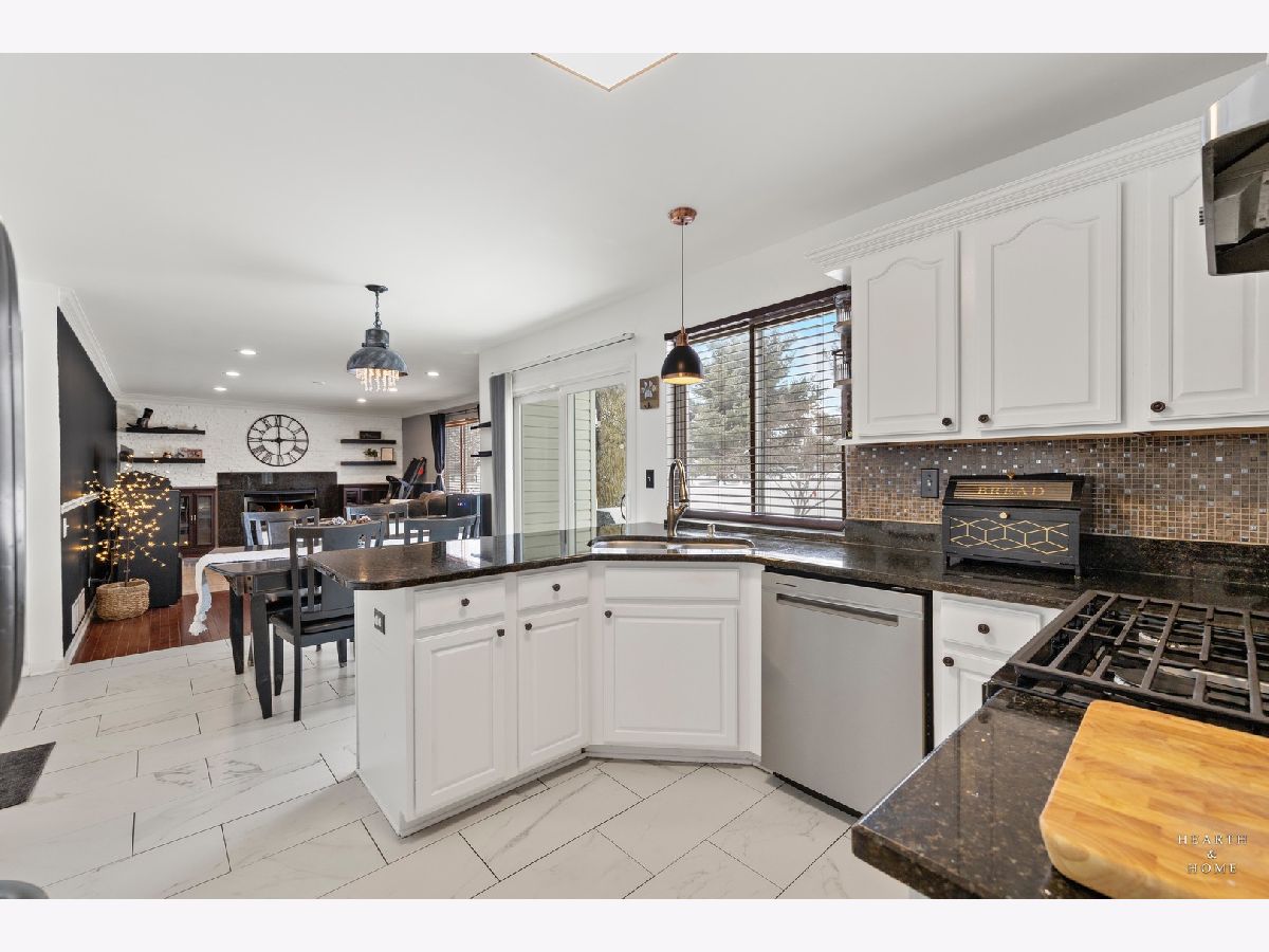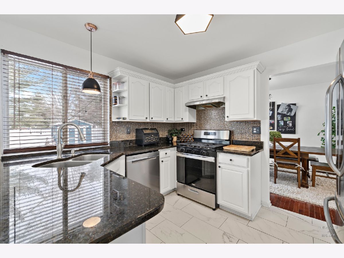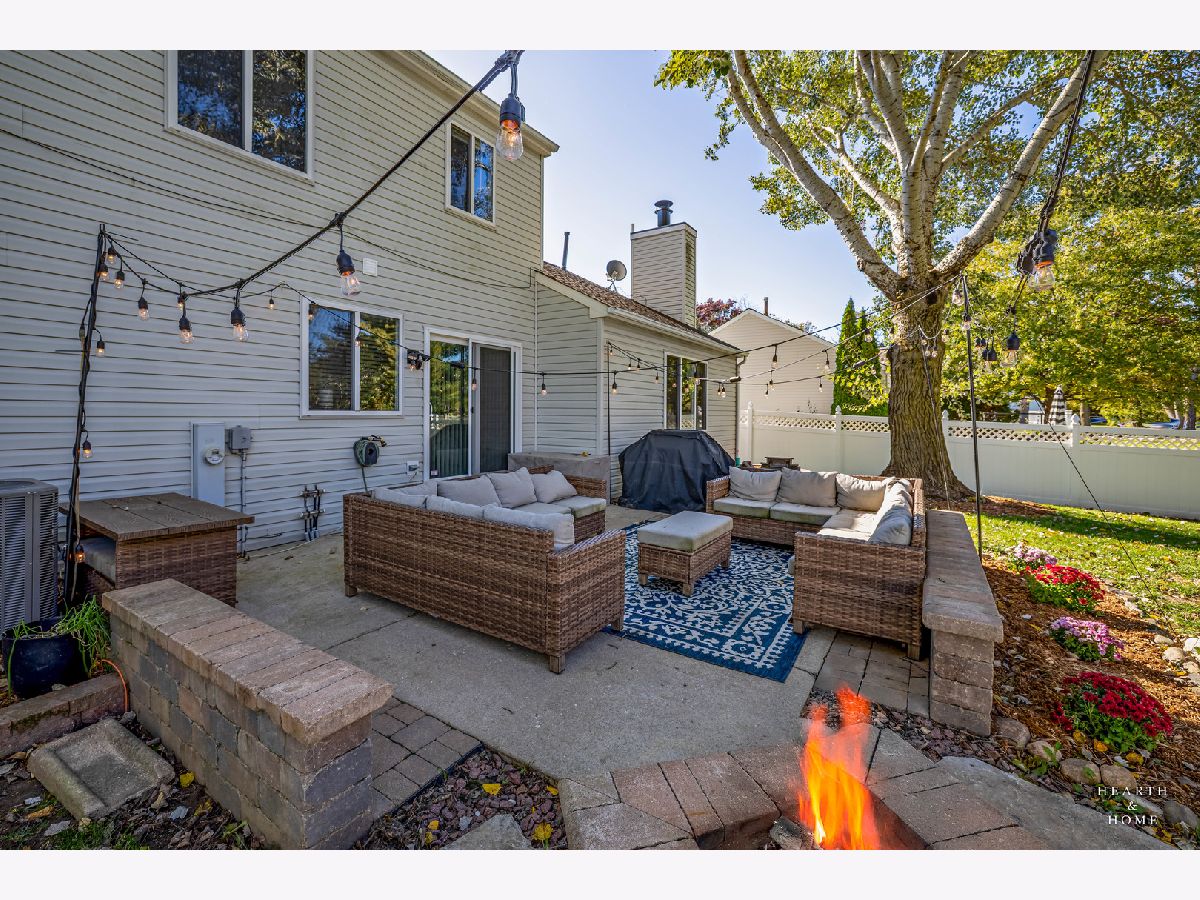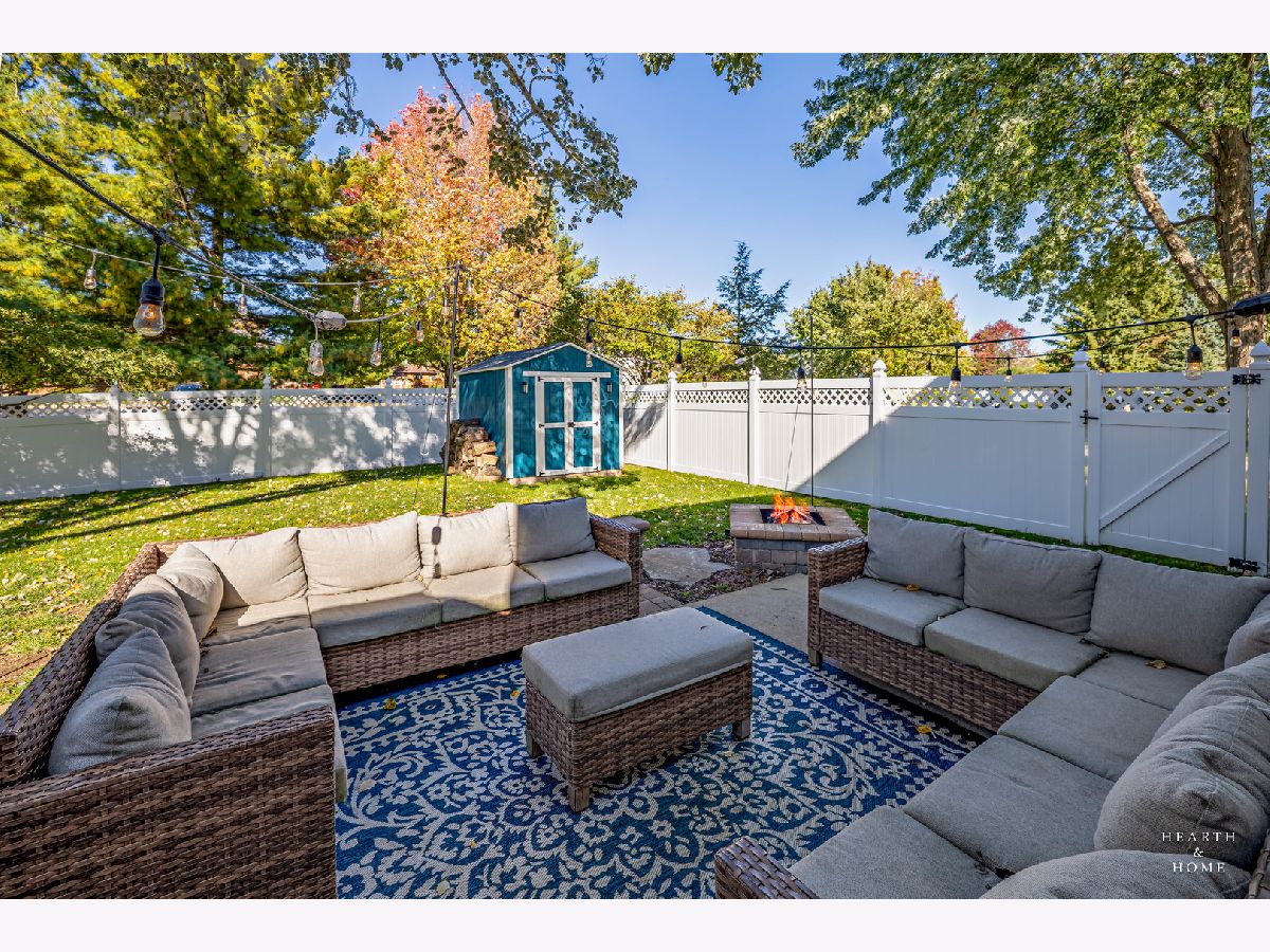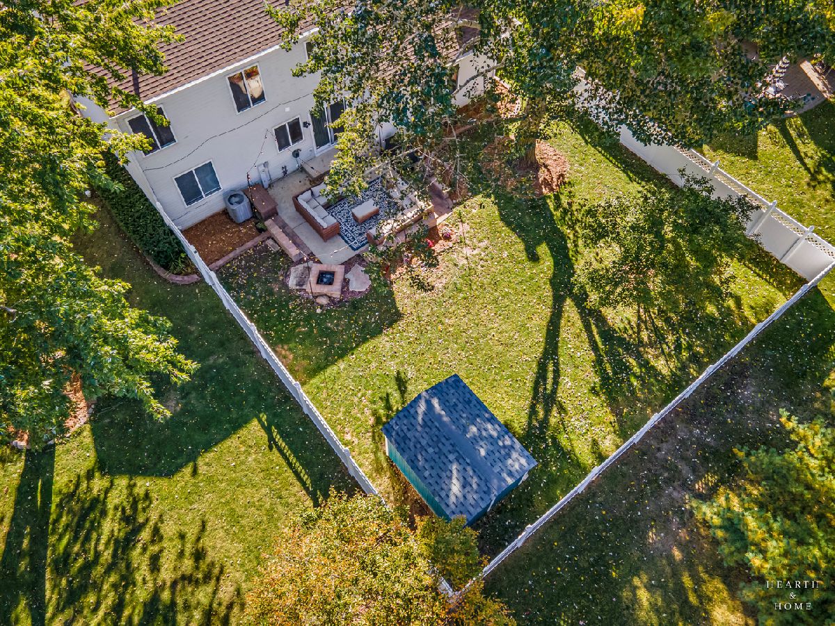 Absolutely Gorgeous and Move-In Ready home featuring 3 bedrooms, 2.5 bathrooms, and a beautifully updated 2-story residence! Welcome to your dream home - every detail has been lovingly cared for, creating a space that feels warm, inviting, and ready for new memories. Step inside to find a spacious living room that flows seamlessly into a formal dining area and a cozy family room highlighted by a stunning brick-accent wall - perfect for gatherings and entertaining. The bright and updated kitchen features a stylish backsplash, desk area, and a sunny breakfast nook with a large picture window overlooking the backyard. Hardwood and ceramic tile floors enhance the home's elegant main level. Upstairs, the primary suite is a true retreat with soaring ceilings, dual closets, and a private bath. Two additional bedrooms share a well-appointed hall bath, offering comfort and space for everyone. The partial basement provides great extra storage space. Outside, enjoy your own private oasis with a beautifully landscaped yard and brick paver patio, fire pit, and custom-built shed, all within a fully fenced yard. Recent updates include fresh paint and new carpet (Oct 2023), new sliding patio door (2021), new garage door and smart opener (2022), and new windows (2022-2023). The home also boasts a newer roof (2017), added brick accents, custom shed (2021), and a newer fence (2020). Perfectly located close to the historic Woodstock Square, schools, shops, and dining, this home blends timeless charm with modern upgrades for truly effortless living.