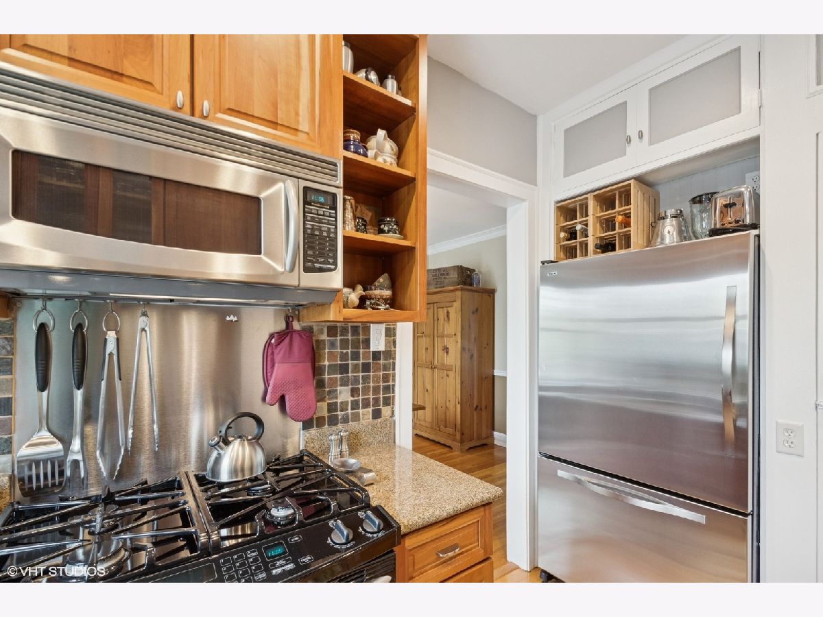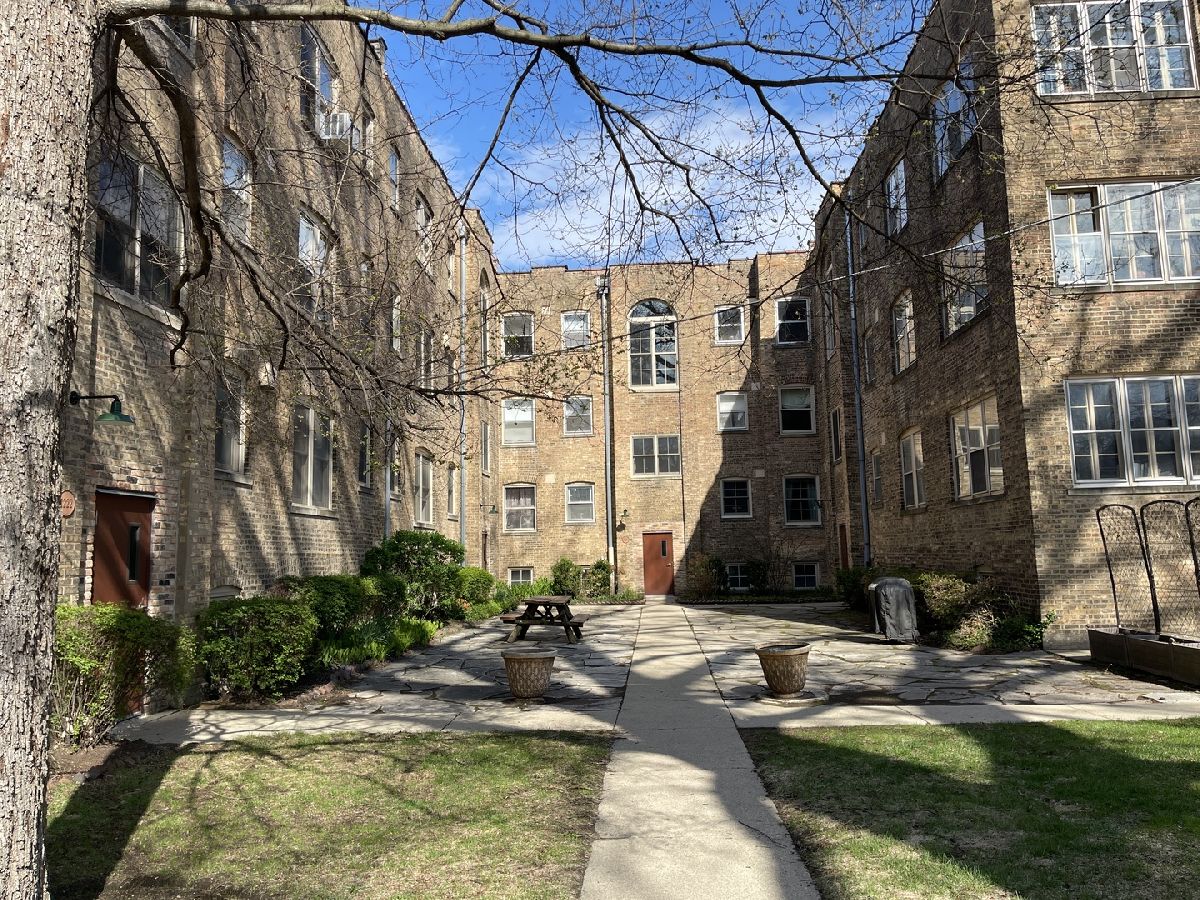 Fabulous Central Street Location . Timeless craftsmanship and thoughtful updates in this spacious and beautifully updated 1-bedroom, 1-bath condo which offers the best of Evanston living. The fully gutted and rebuilt kitchen features custom solid cherry Craftmaid cabinetry, updated electrical and plumbing, an insulated exterior wall, a high CFM range hood vented to the outside, and commercial-grade fixtures - all designed for modern convenience and timeless style. Stainless steel appliances and a smart layout complete the kitchen's transformation. Other highlights include hardwood floors, Living room ceilings supplemented with additional drywall, restored crown molding, walls Hand plaster restoration of walls. Can lighting installed in kitchen and bath. Electric updated, custom wood-insulated radiator covers, a cedar closet, beautifully renovated bath, generous room sizes, and gorgeous new Marvin wood windows add comfort and character throughout the home. This bright and airy unit enjoys peaceful views and a prime location overlooking the 13th hole of Evanston's Canal Shores Golf Course. Close to El and Metra, and only about five blocks to Lighthouse Landing Park and the beach. The impeccably maintained building compliments the home's charm with important updates, including a * Complete restoration of 1210 clay tiled roof area. New copper gutters. Restoration of soffits, comprehensive tuckpointing and lintel repair of southwest alley, 1222 north, and 1218 east elevations and a beautifully landscaped common patio perfect for BBQs . Move in conidtion right in and enjoy.