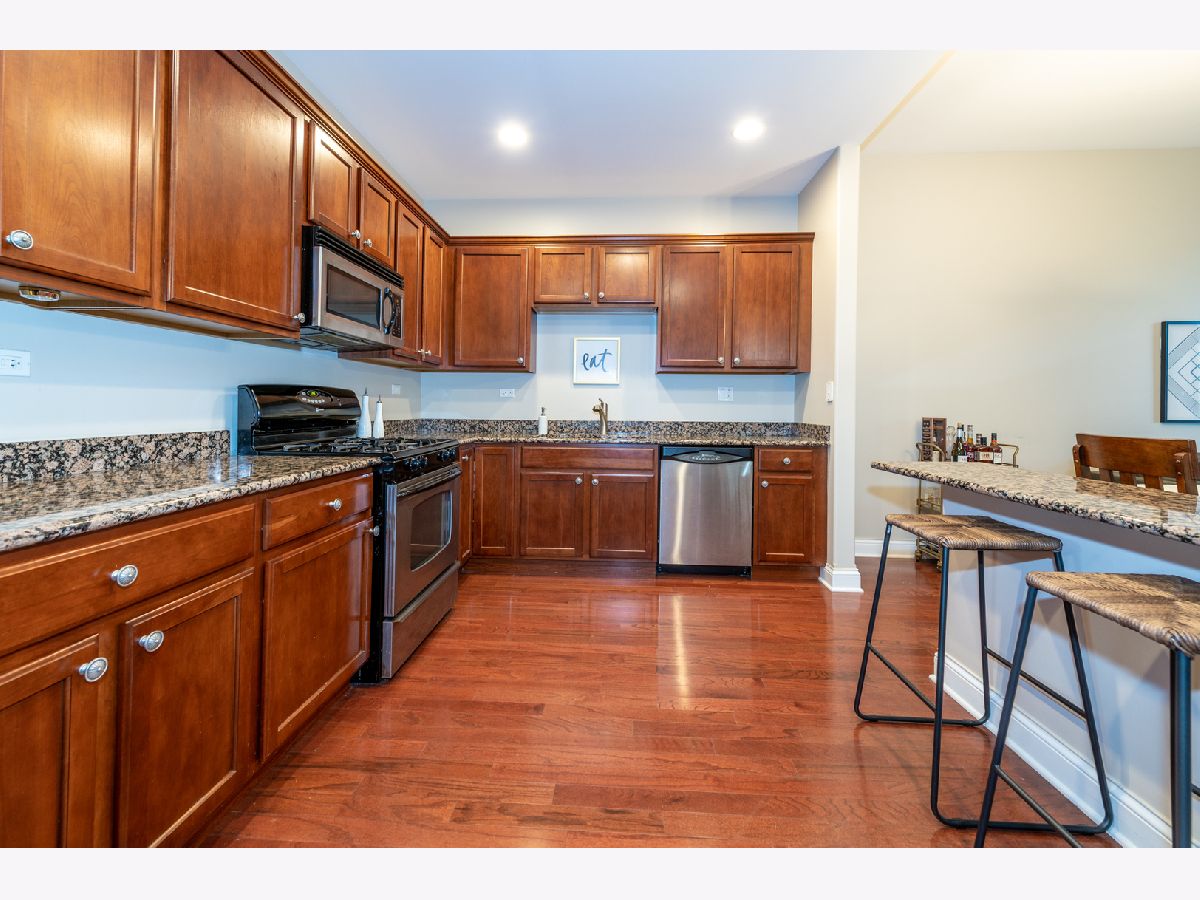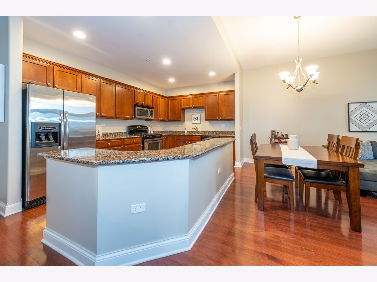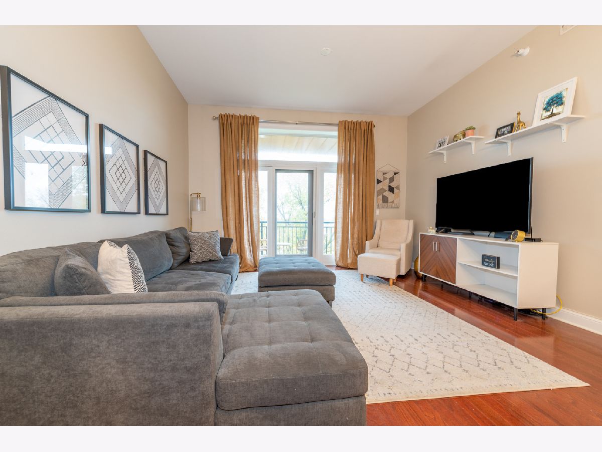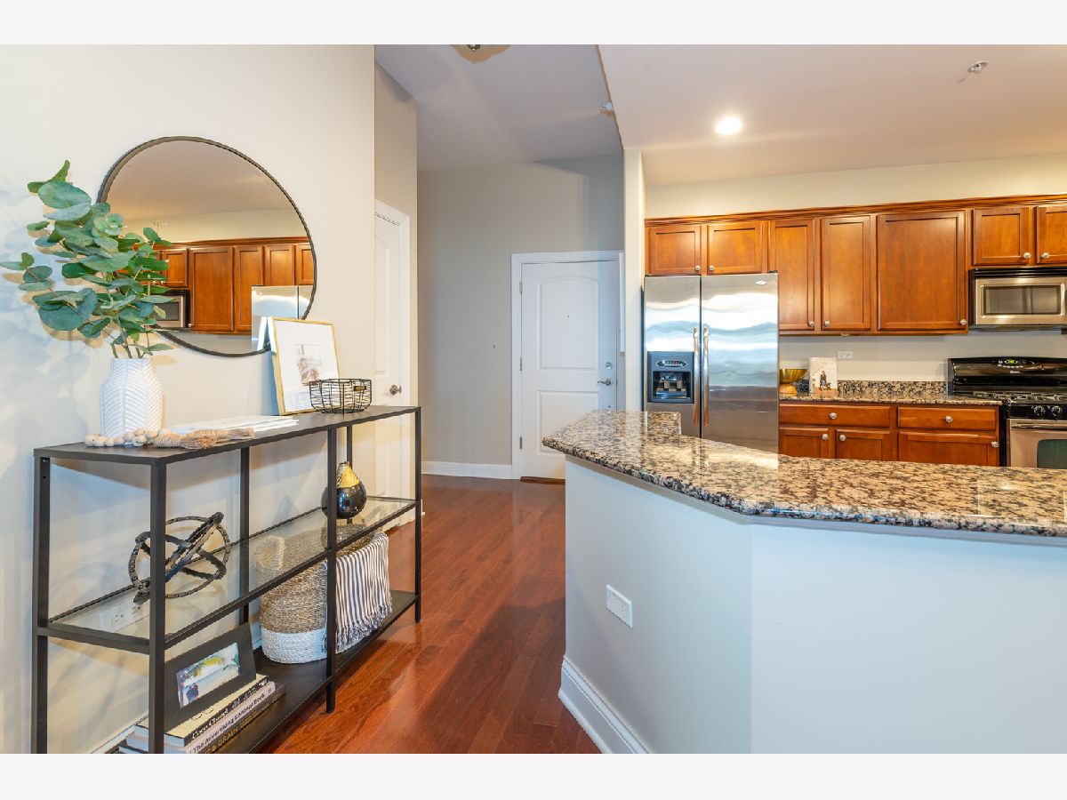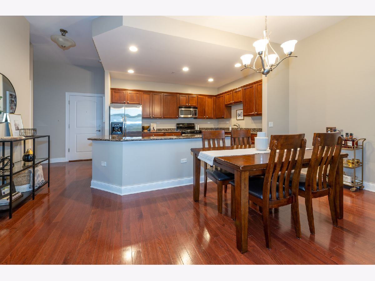 Pristine and spacious 1 Bed 1 Bath unit ~ Open concept with 10 foot ceilings that makes all the difference~ large windows with tons of natural lighting~ Gorgeous updated kitchen complete with 42" cabinets, granite counters, stainless steel appliances & a breakfast bar~ beautiful hardwood floors throughout ~ Dining area combined with living room lead to a private balcony allowing for a great spot to enjoy fresh air~ Nice size bedroom w/ generous closet space~ bathroom suite with all the upgrades including tub & shower ~ Laundry room complete with utility sink, washer/ dryer & extra storage cabinets~ heated garage space and large storage closet included. Monthly assessments include heat, water, gas, exercise & party room, security door locks, and elevator. Conveniently located near major expressway, great restaurants and shopping.