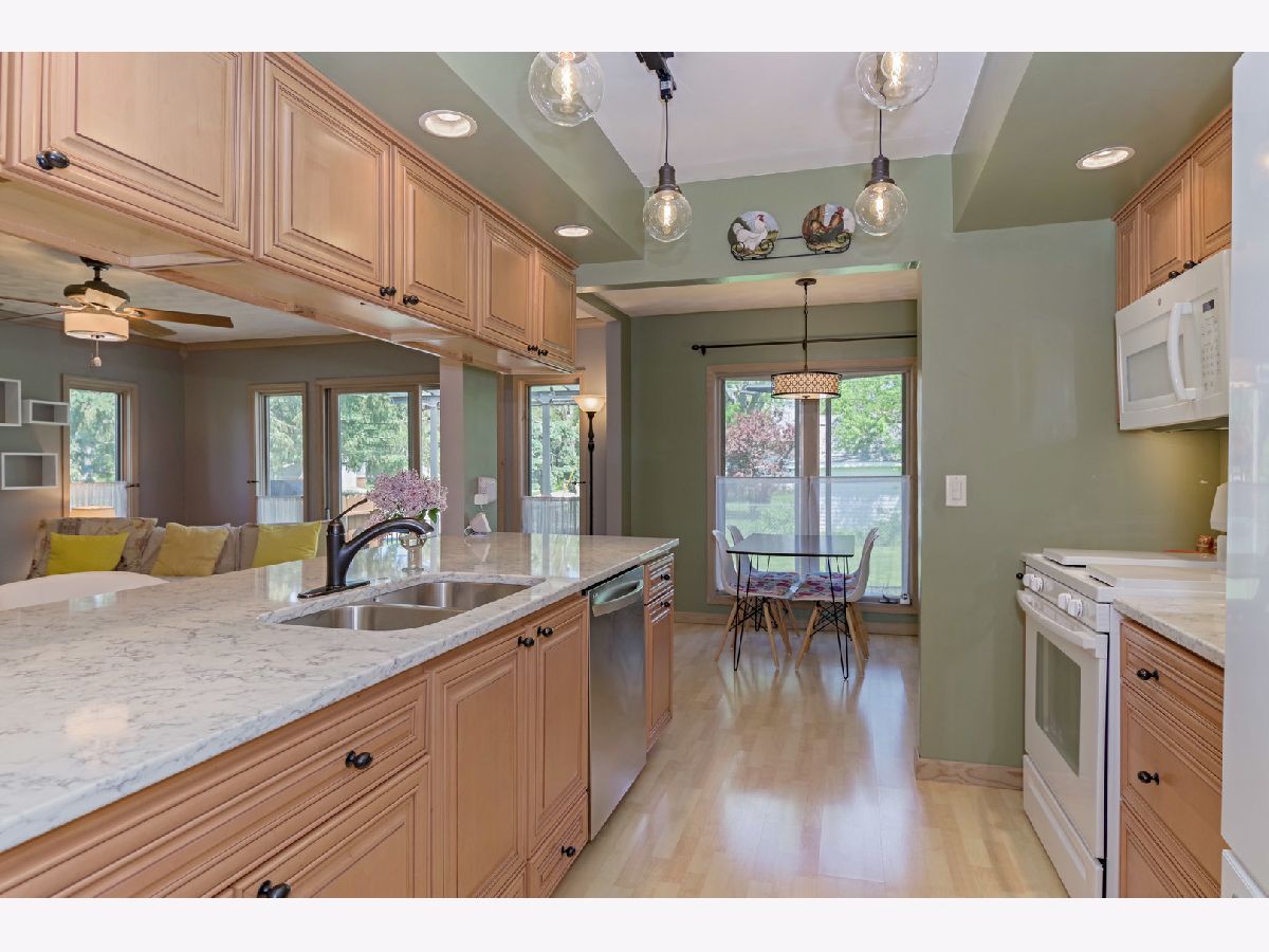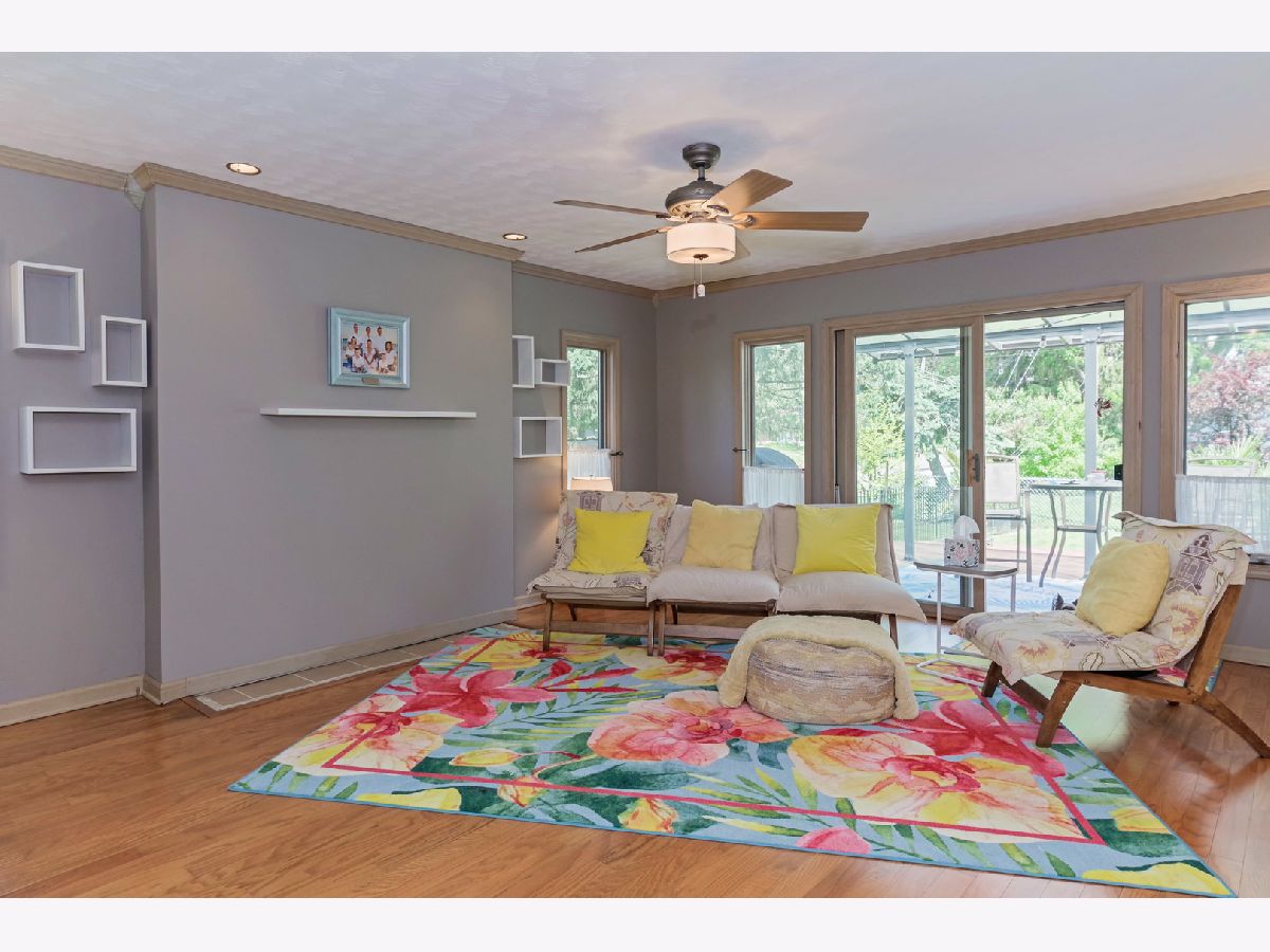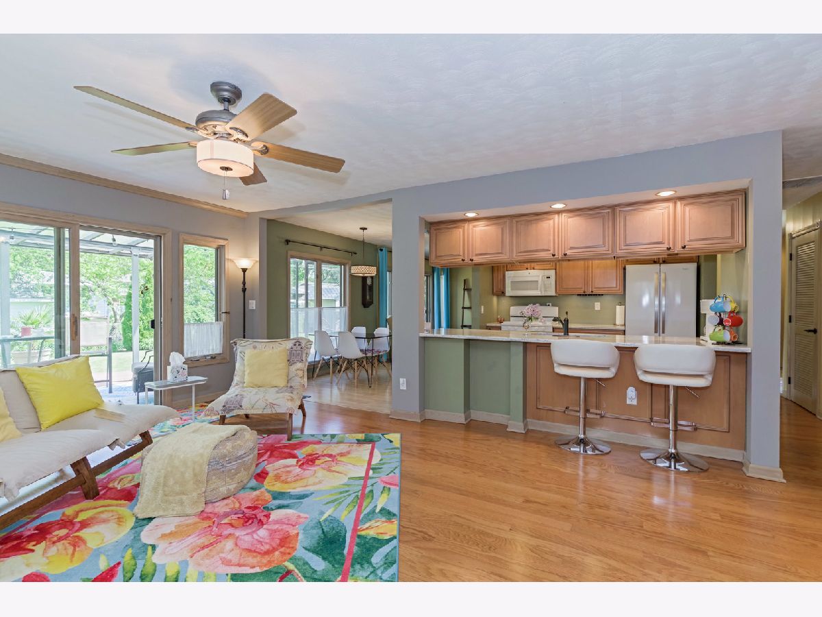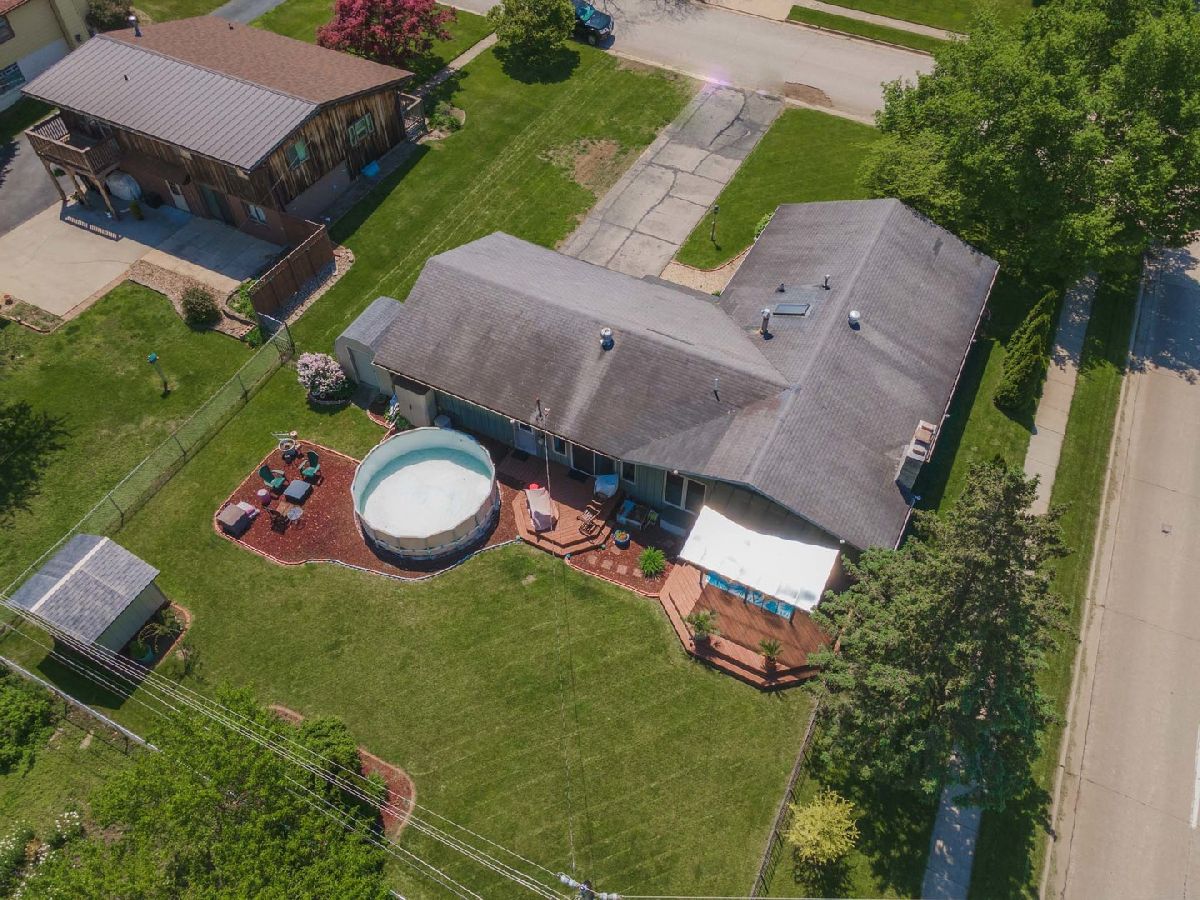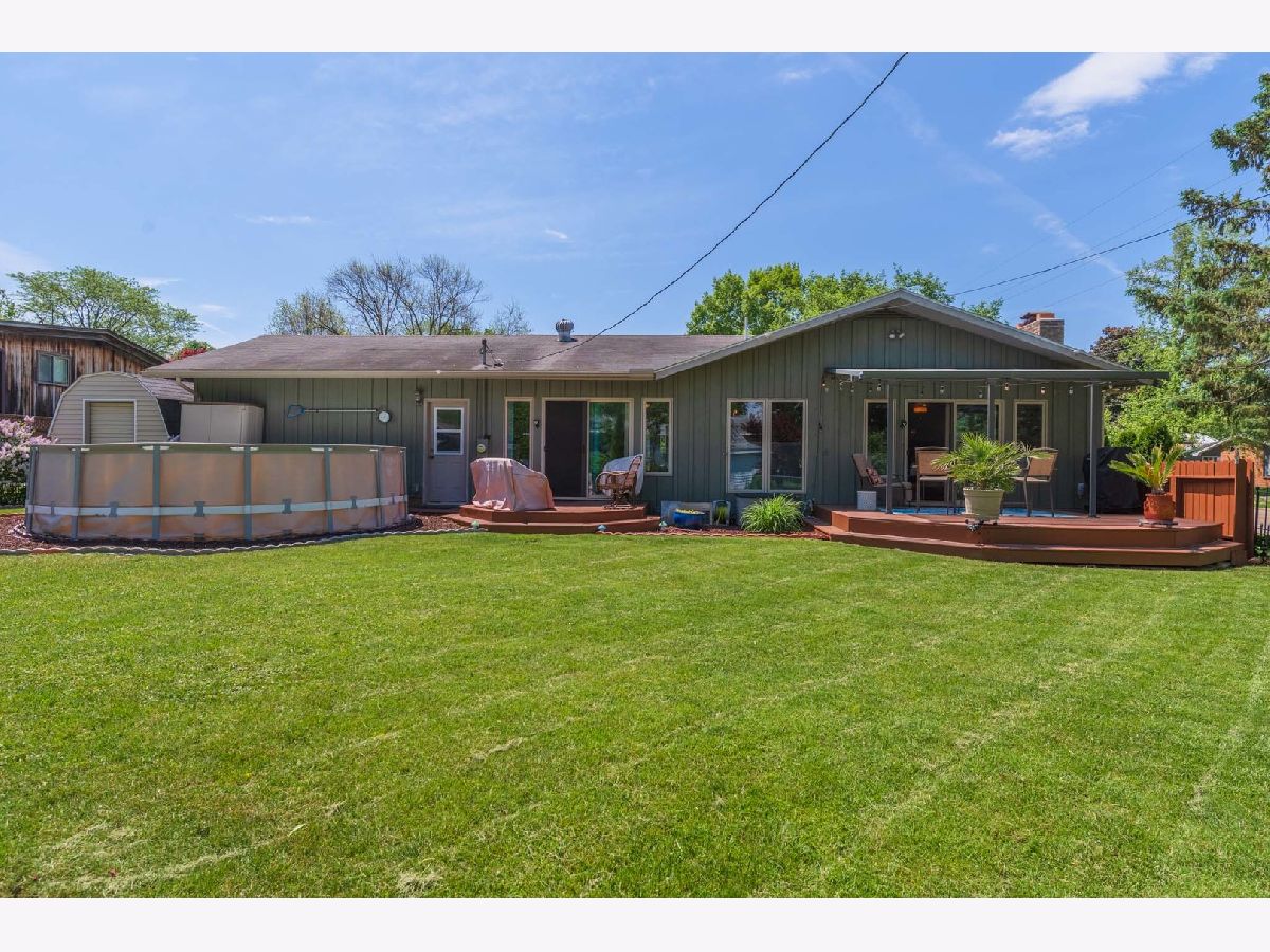 Sunshine and No steps in this ranch! Pickled trim and solid doors! Fun layout with lots of updated long windows, double sliding doors off living room and family room that leads to both decks. (One deck covered with a pergola awning) Wonderful fenced yard with 2 big sheds and an above ground pool. Kitchen and 2 baths have been updated very tastefully! Walk-in pantry and laundry in front closet next to oversized garage. All new cold air returns and bedroom closets pre-lit. Furnace replaced in 2021, and water heater in 2020. Kitchen appliances are only 4 yrs old. Washer and dryer only 1 yr old. 3 portable AC units will stay with the home. (AC outside is not working). Crawl access is in the garage. Too cute not to see!!!