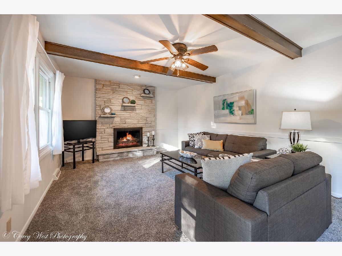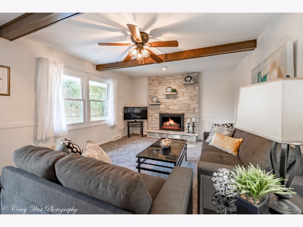Lovely ranch home in the Bradt Park Subdivision. This lovingly cared for 3 bedroom, 2 bath home is very spacious and has a gorgeous park-like setting in the backyard. Walk up through the beautifully landscaped entrance of the home to the welcoming front porch. The porch is a nice place to bird or people watch. The entryway leads one to the living room or hallway where the bedrooms are located. The living room has laminate flooring with a beautiful picturesque window to view the mature trees lining the street. The dining room is centrally located in the home. It is a great room for everyday eating and a lovely place for formal dinners. The updated kitchen has ceramic tile flooring, quartz countertops, an abundance of custom cherry cabinets, and newer appliances. The sink overlooks the park-like setting backyard. The family room with gas fireplace and beamed ceilings are a wonderful place to relax, watch tv or view the perennials in the back yard. The hallway from the dining room to the bedrooms has a roomy and updated full bath. The primary bedroom has a lot of sunlight streaming through and a private bathroom with a stand-up shower. There is a LARGE walk-in closet in this hallway that can easily be plumbed in and made into a first-floor laundry if you wish. Bedrooms 2 and 3 have hardwood floors and newer windows for much sought-after warmth of the sun. The partially finished basement has a nice-sized family room, a storage room that can easily be finished off, and a lengthy utility room/laundry room area with a sink. The backyard is the pride and joy of the current sellers. The large deck is adorned with flower boxes - a lovely way to decorate for all seasons and to enjoy the views from indoors. The yard is like a park-like setting with many mature trees and plenty of grass for the kids and dogs to enjoy. Fully fenced in too. This home is sure to please the pickiest of buyers. So much new in the last 10 years - routing sump pump and deck built in 2010 and refinished (2021); kitchen flooring and kitchen updated (2012); basement flooring, family room carpet, soffits, and facia (2020), bathrooms redone, laminate wood flooring, and roof (2014); HVAC (2017); driveway and sidewalk (2018); fireplace converted to gas (2019). Close to I-88 access, downtown DeKalb, schools, and shopping. Drive down the tree-lined street and fall in love with your new home!