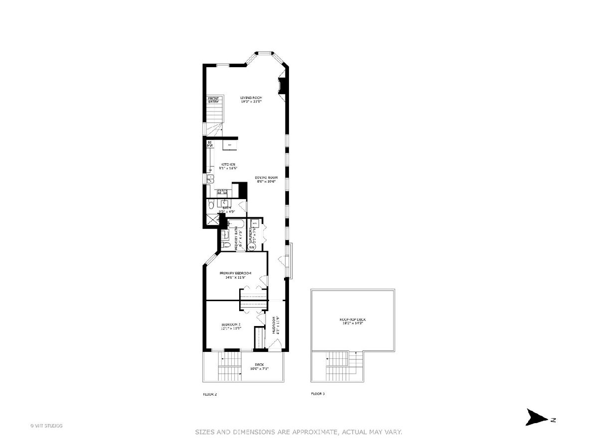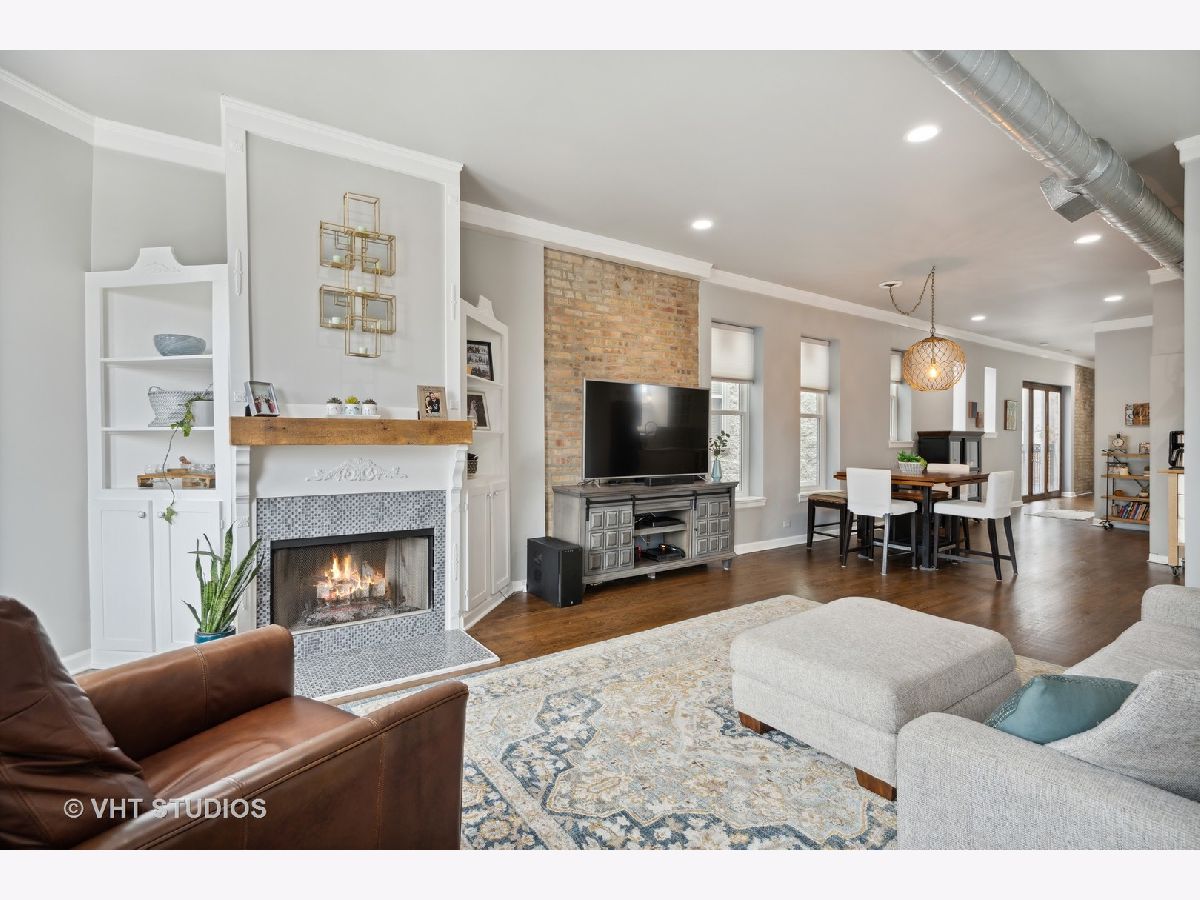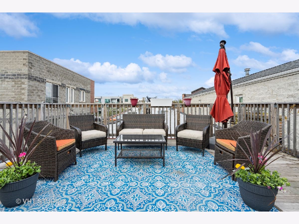 Spacious, sunny and updated 2 bed/2 bath PENTHOUSE unit (one flight up) with parking in awesome Wicker Park location close to shops, restaurants, Blue Line. This unique and cool space has both a loft and vintage feel with its exposed ductwork and brick. With over 1400 sqft, there is plenty of space to entertain in the open floorplan and features high ceilings with crown molding, hardwood floors throughout, great flexible space to work from home. The oversized living room has a beautiful bay window, newly tiled fireplace and custom built-ins. The completely updated white kitchen offers marble backsplash, quartz countertops, stainless steel appliances and opens to a separate dining space. There is great privacy with both bedrooms in the back of the unit, each with their own bath. The primary is en-suite with a tub and the hall bath has a walk-in shower. This unit also offers a large laundry closet with new washer/dryer and tile and mudroom with coat closet. Private back deck plus common rooftop. Deeded exterior parking included in price. Ask about the extensive list of improvements which includes the kitchen, living room, all windows, HVAC, laundry, new doors and much more! Rental and pet friendly building.
