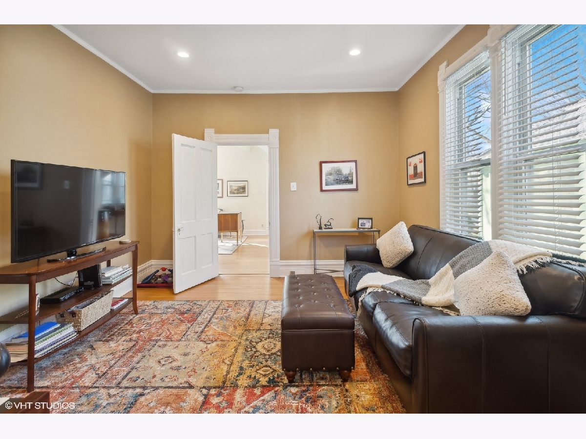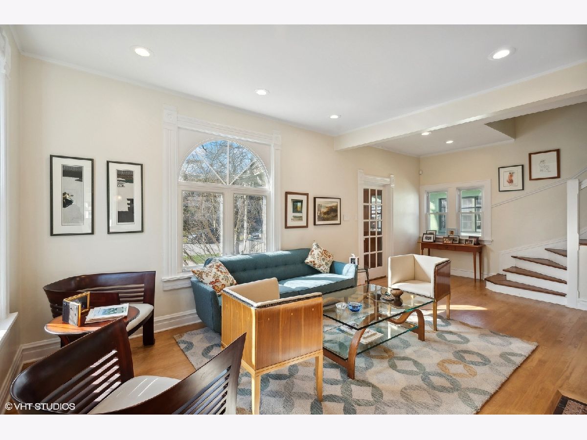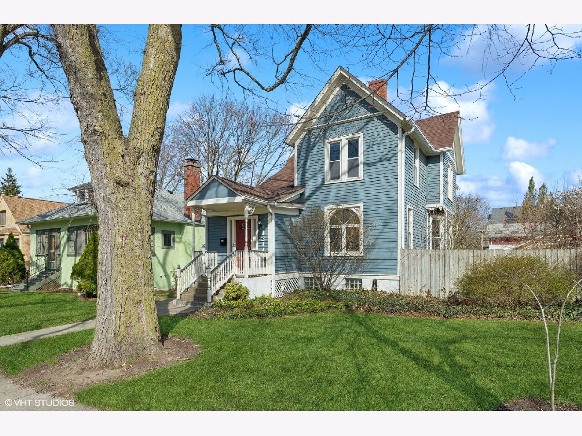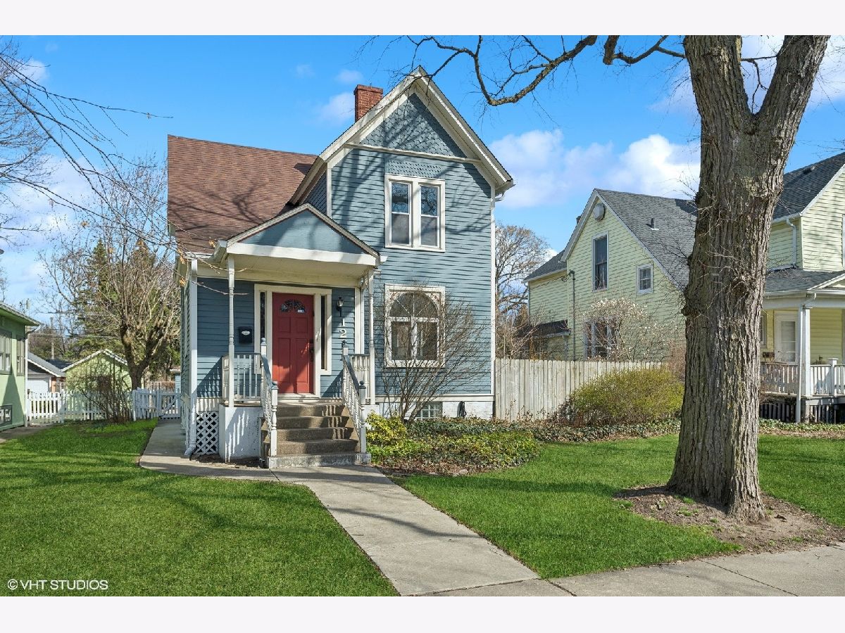Charming 4-bedroom, 2-bathroom home boasting a blend of modern updates and original Victorian features. Bright and spacious interior includes a stylishly renovated kitchen and baths, complemented by timeless Victorian elements. The first floor showcases a cozy living room with an elegant Victorian fireplace, a separate dining room featuring delightful bow windows, a private bedroom with a newer bath, and a modern kitchen updated in 2017. Upstairs, the generously sized bedrooms bask in natural light, with the primary bedroom featuring a walk-in dressing room, ideal for an office or nursery. Recent upgrades encompass a newer hall bath, recessed lighting throughout, a furnace installed in 2020, and newer windows. The lower level space has lots of storage and a rec room for watching TV, playing or just hanging out. Outside, an expansive backyard offers a charming brick patio installed in 2017, alongside a convenient two-car garage. New sewer line to the street in 2012. Situated just a short stroll from public transportation, shopping, esteemed schools, and the Robert Crown Community Center.