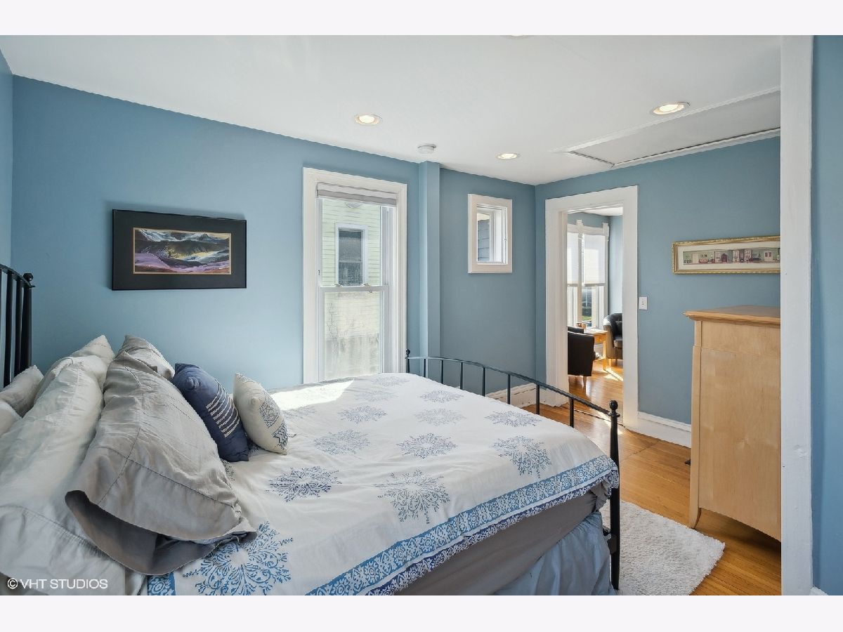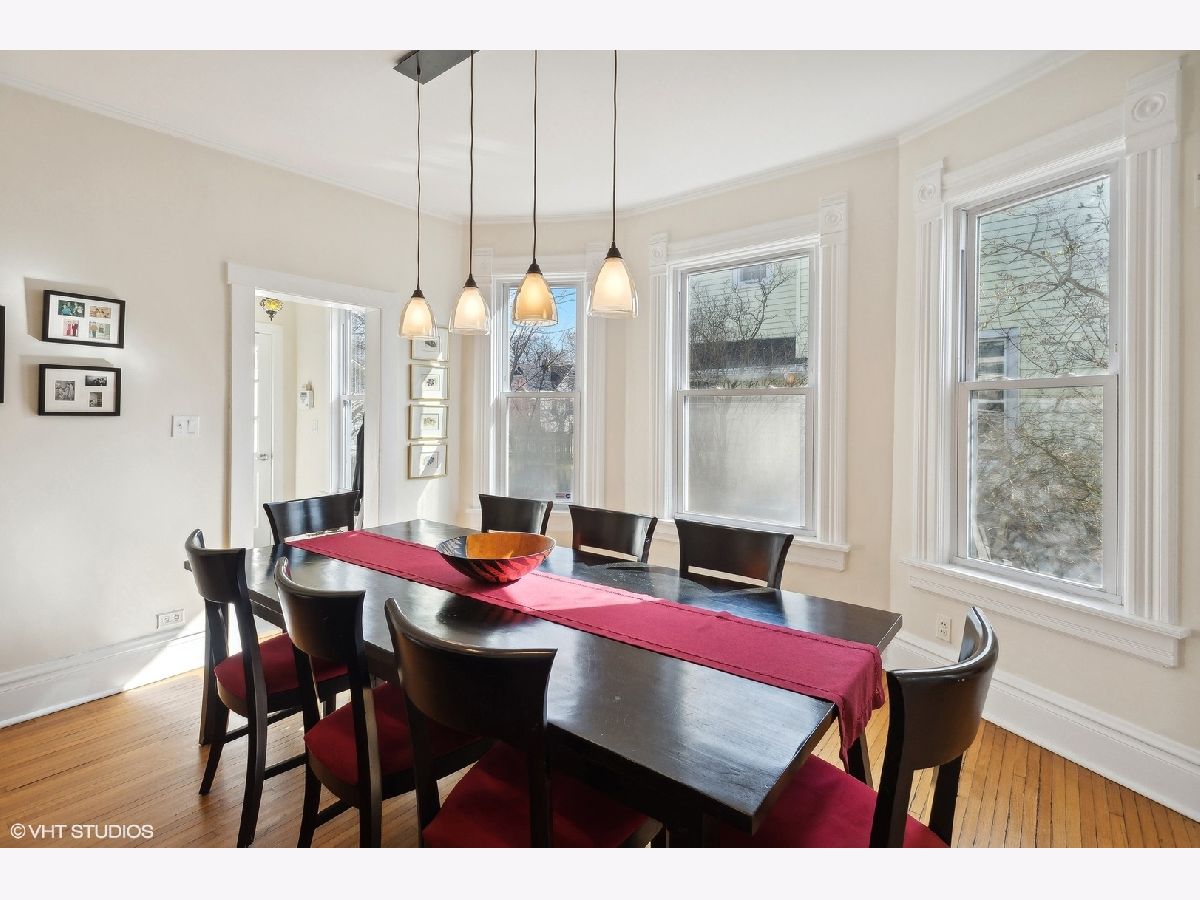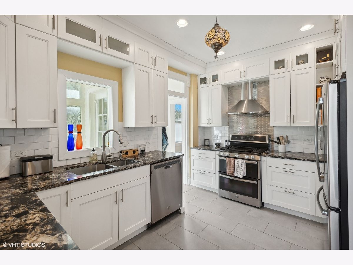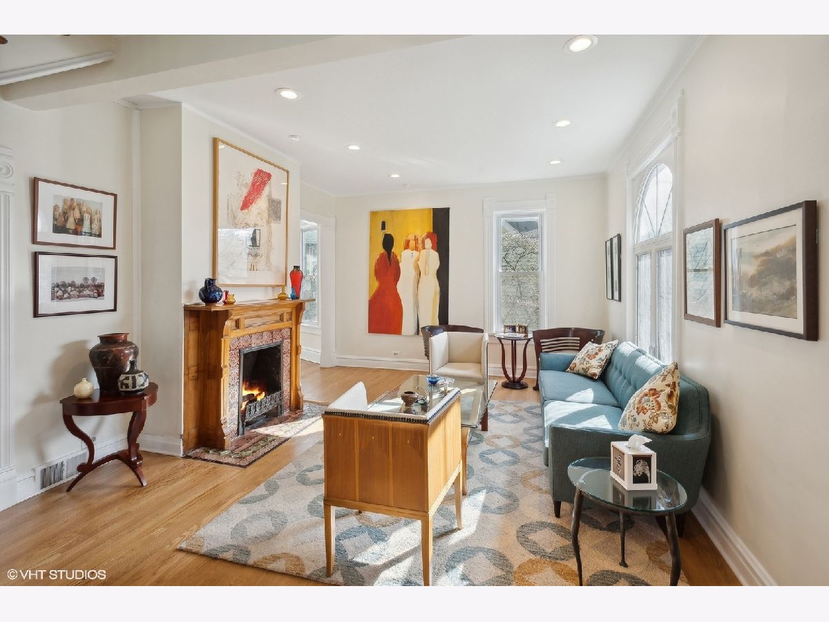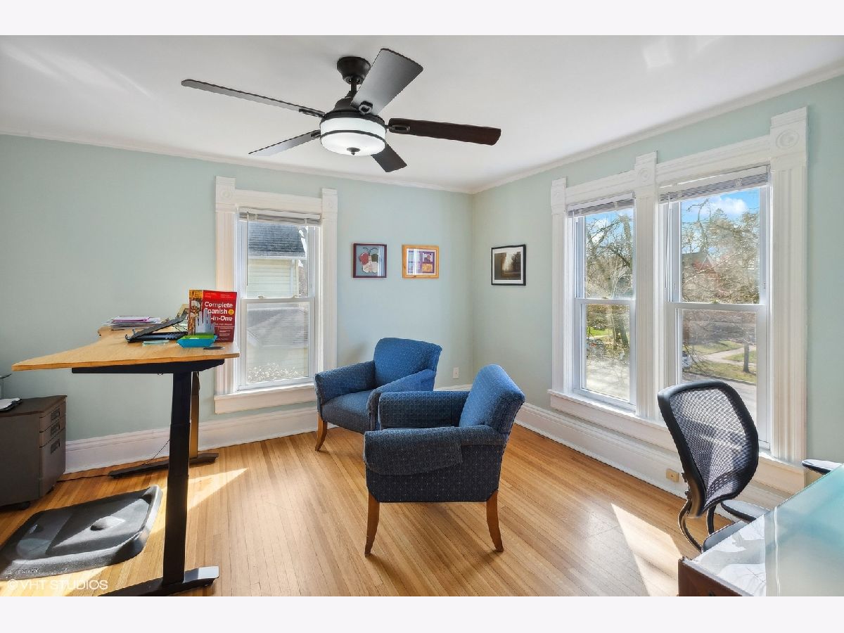 Charming 4-bedroom, 2-bathroom home boasting a blend of modern updates and original Victorian features. Bright and spacious interior includes a stylishly renovated kitchen and baths, complemented by timeless Victorian elements. The first floor showcases a cozy living room with an elegant Victorian fireplace, a separate dining room featuring delightful bow windows, a private bedroom with a newer bath, and a modern kitchen updated in 2017. Upstairs, the generously sized bedrooms bask in natural light, with the primary bedroom featuring a walk-in dressing room, ideal for an office or nursery. Recent upgrades encompass a newer hall bath, recessed lighting throughout, a furnace installed in 2020, and newer windows. The lower level space has lots of storage and a rec room for watching TV, playing or just hanging out. Outside, an expansive backyard offers a charming brick patio installed in 2017, alongside a convenient two-car garage. New sewer line to the street in 2012. Situated just a short stroll from public transportation, shopping, esteemed schools, and the Robert Crown Community Center.