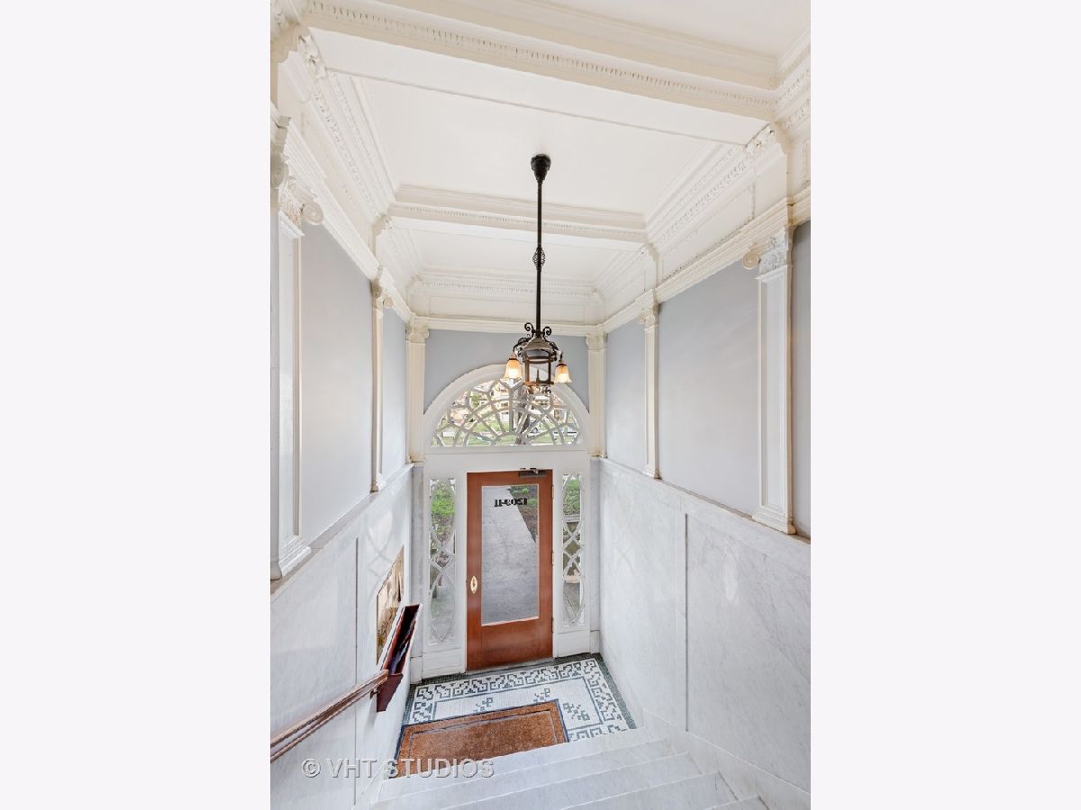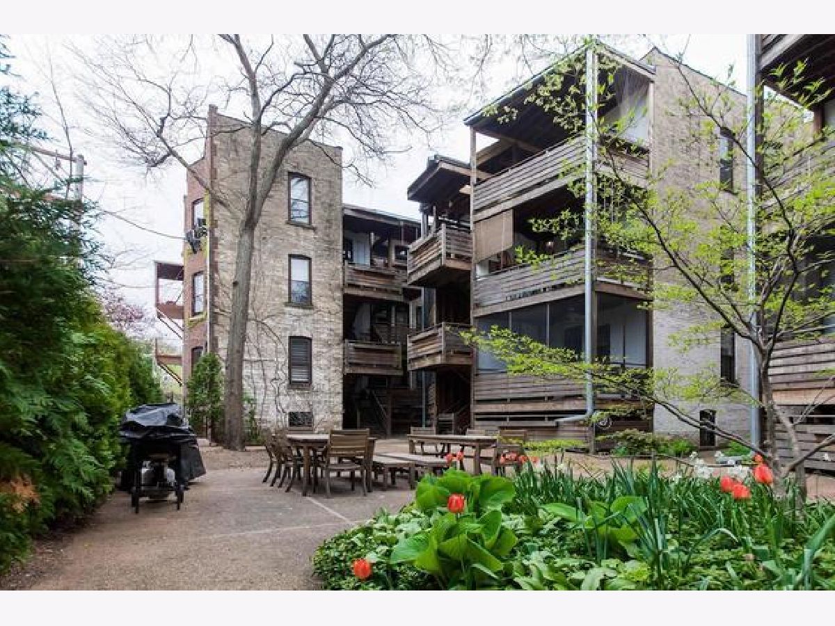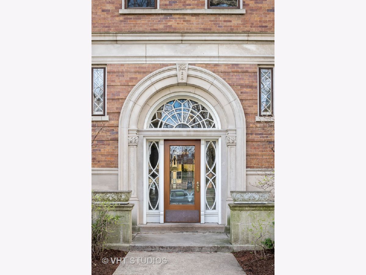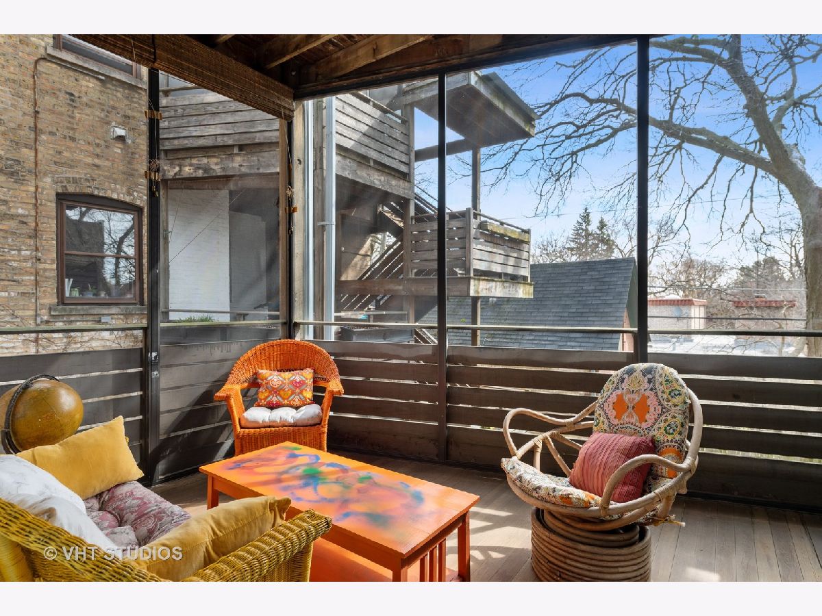 Step into one of Evanston's historical landmarks! This condominium building, built in 1901 and the first to be constructed in Evanston, has a picturesque and charming European feel and look. It's perfectly placed on a tree-lined street, surrounded by single-family homes and gorgeous boulevard views. This 3-bedroom condo is currently configured as a 2 bedroom, with an enlarged master that includes a dressing room/office. This condo features coved 10 ft ceilings and hardwood floors in every room. A newly updated kitchen leads to a unique and special screened-in porch that gives access to the outdoor gated courtyard, ideal for dining al fresco and entertaining. Private laundry access and a generous storage room are in the basement. Street parking is plentiful in an area of single-family homes. This is an ideal location with nearby amenities including the lake, beach, biking and walking paths, parks, dining, shopping, Metra, CTA Purple line, and historic downtown Evanston!
