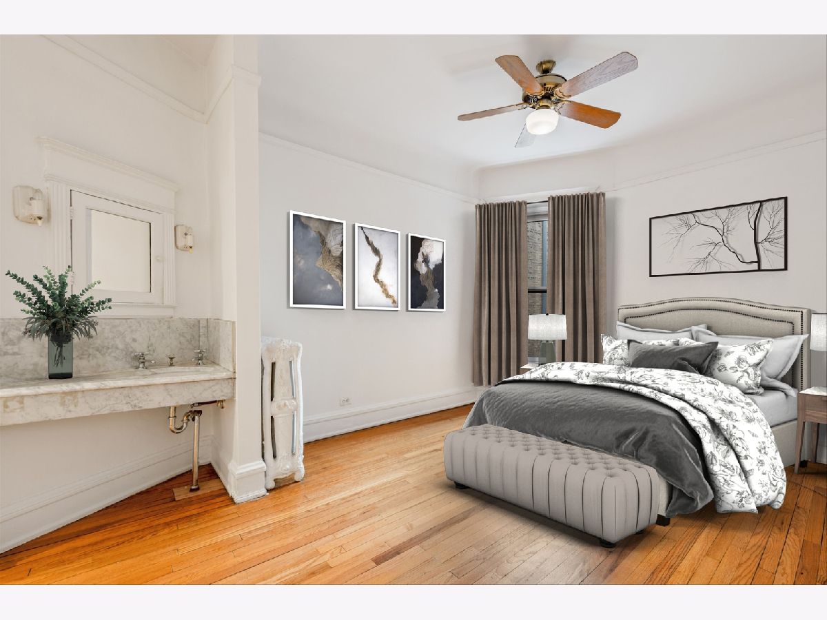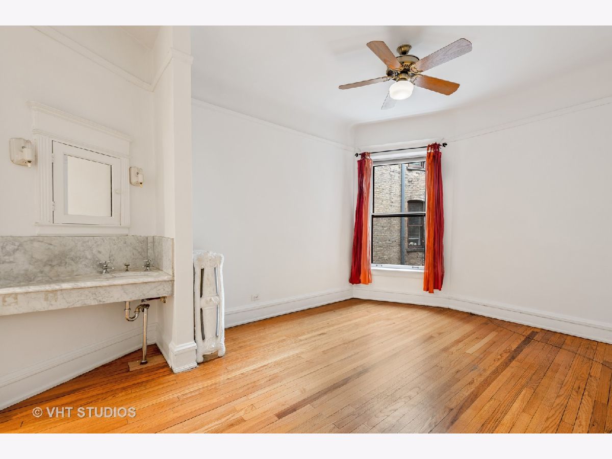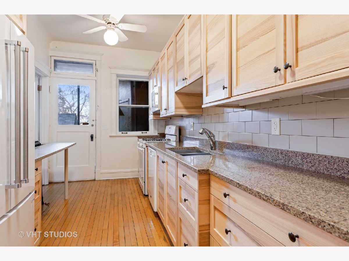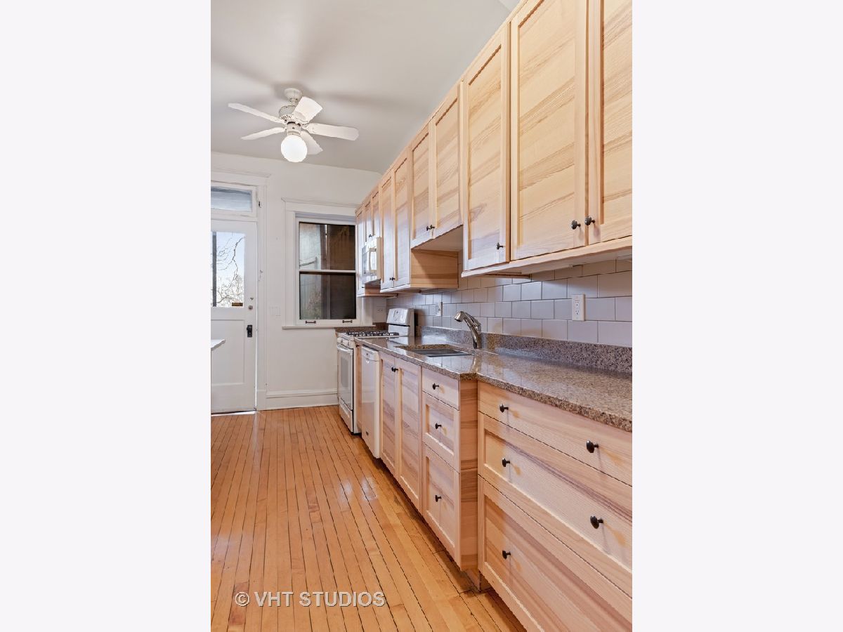 Step into one of Evanston's historical landmarks! This condominium building, built in 1901 and the first to be constructed in Evanston, has a picturesque and charming European feel and look. It's perfectly placed on a tree-lined street, surrounded by single-family homes and gorgeous boulevard views. This 3-bedroom condo is currently configured as a 2 bedroom, with an enlarged master that includes a dressing room/office. This condo features coved 10 ft ceilings and hardwood floors in every room. A newly updated kitchen leads to a unique and special screened-in porch that gives access to the outdoor gated courtyard, ideal for dining al fresco and entertaining. Private laundry access and a generous storage room are in the basement. Street parking is plentiful in an area of single-family homes. This is an ideal location with nearby amenities including the lake, beach, biking and walking paths, parks, dining, shopping, Metra, CTA Purple line, and historic downtown Evanston!