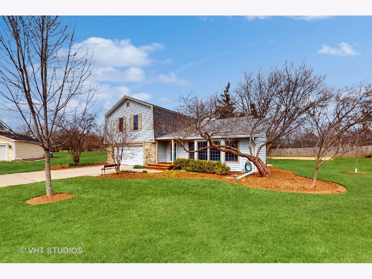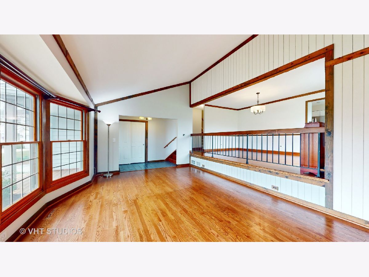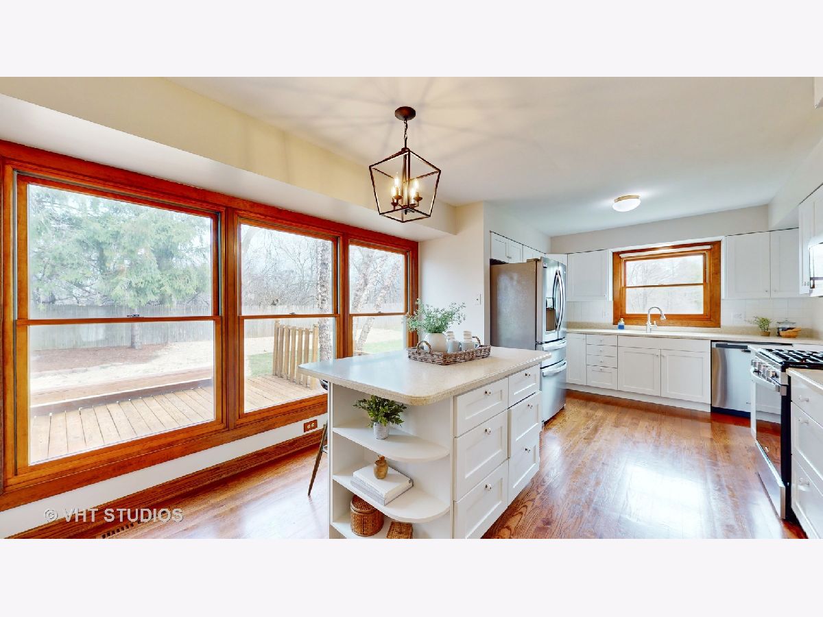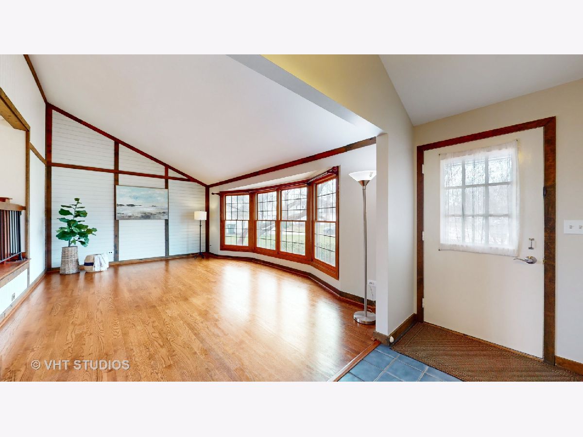Mod and bright split level with quality updates, hardwood flooring, and a fresh neutral decor. D70 Butterfield Elementary and Highland Middle, & D128 Libertyville High. Just move in and start enjoying life! You will love the flow of this home. On entry you are greeted by a dramatic split-level living room and dining room space underneath a vaulted ceiling that is well-suited to modern decor and entertaining. The kitchen is a bright space to work and socialize and features a stainless appliance suite, solid surface counters and a big island. Adjacent to it is an open family room with a beautiful Lannon-stone fireplace. A large mud room/laundry room is between the family room and the attached 2 car garage. Upstairs you will find four bedrooms, two full baths, and a primary suite with a huge walk-in closet! Outside there is a nearly 1/2 acre lot to enjoy - a big deck, a shed tucked off to the side, privacy landscaping, and attractive gardens featuring many perennials, ornamental trees, and beautiful towering shaggy birch trees. Other great spaces include a finished basement, lots of storage space, and a great family room off the kitchen with sliding doors to the patio. This location is close to town, METRA station, and schools. Welcome to Libertyville!