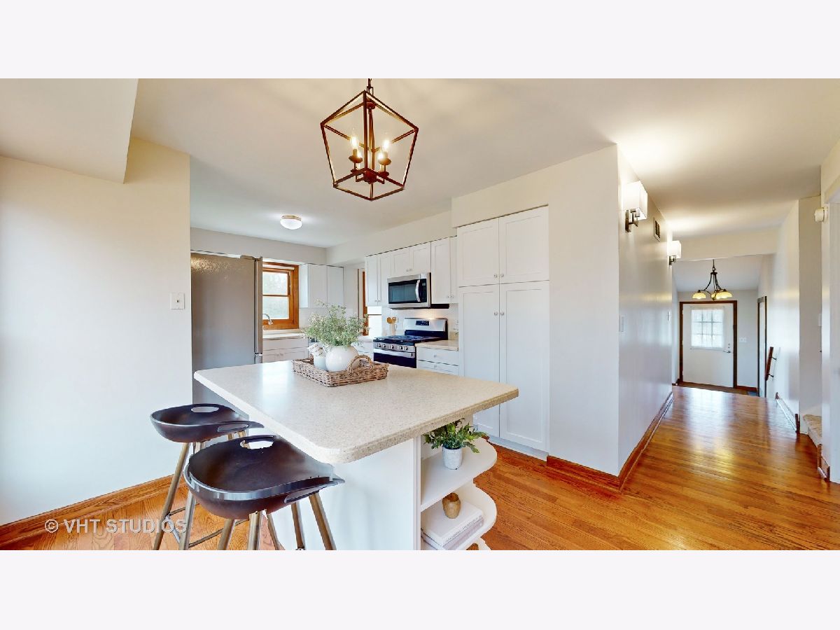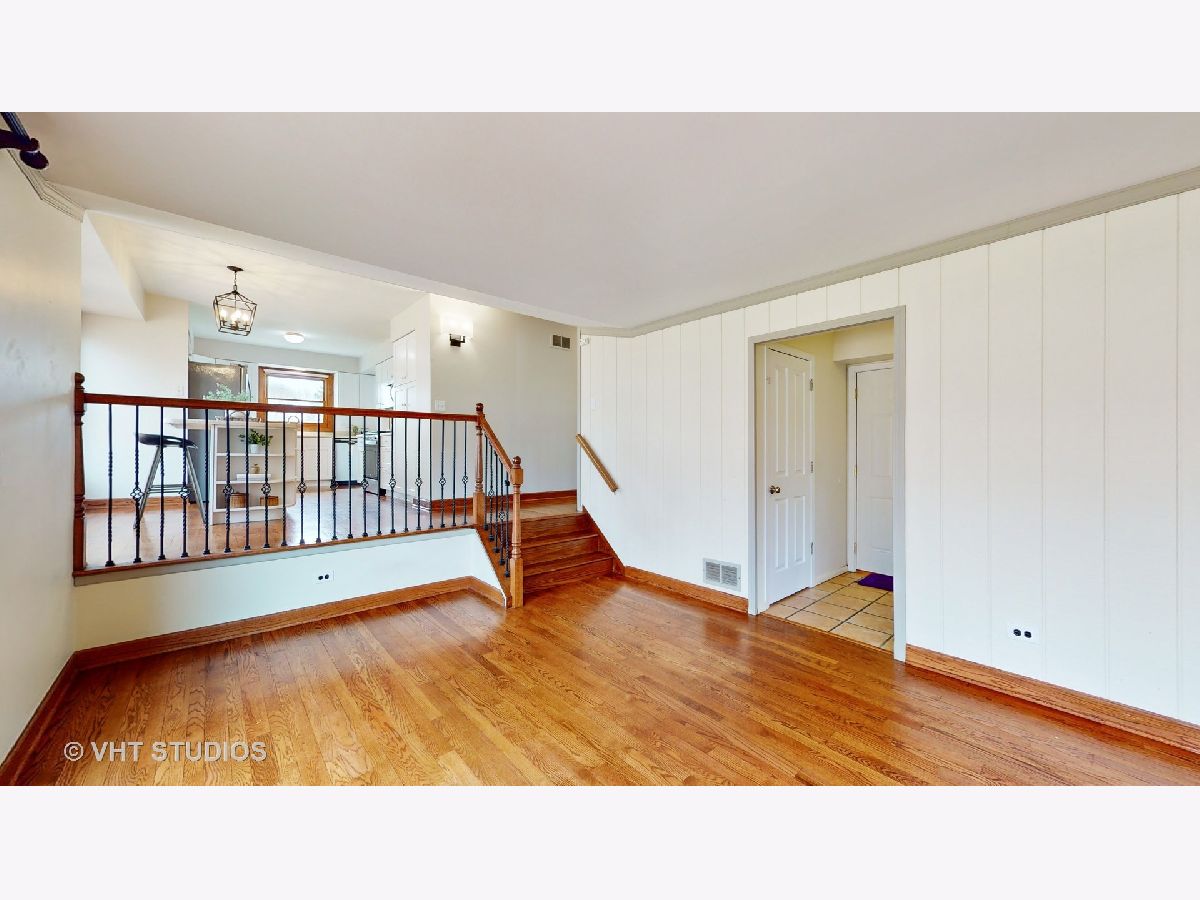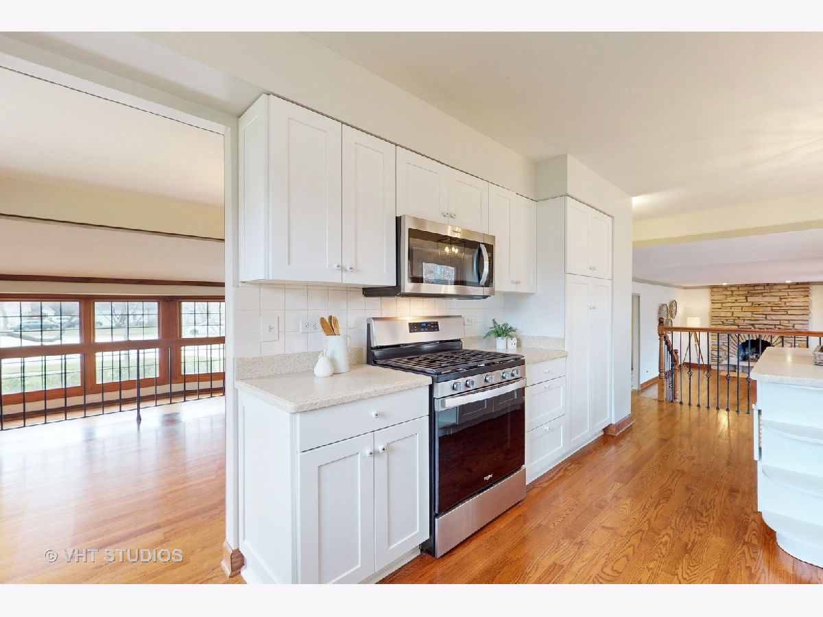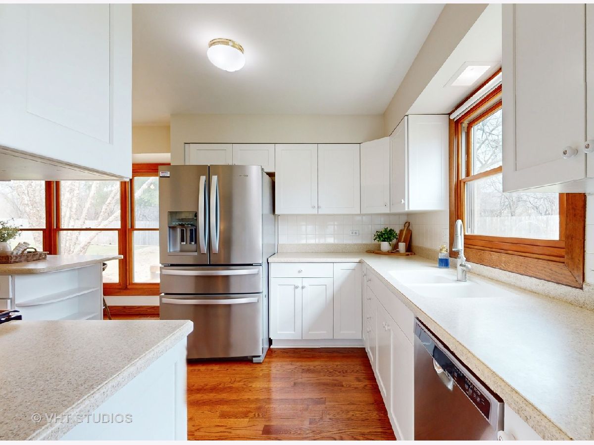 Mod and bright split level with quality updates, hardwood flooring, and a fresh neutral decor. D70 Butterfield Elementary and Highland Middle, & D128 Libertyville High. Just move in and start enjoying life! You will love the flow of this home. On entry you are greeted by a dramatic split-level living room and dining room space underneath a vaulted ceiling that is well-suited to modern decor and entertaining. The kitchen is a bright space to work and socialize and features a stainless appliance suite, solid surface counters and a big island. Adjacent to it is an open family room with a beautiful Lannon-stone fireplace. A large mud room/laundry room is between the family room and the attached 2 car garage. Upstairs you will find four bedrooms, two full baths, and a primary suite with a huge walk-in closet! Outside there is a nearly 1/2 acre lot to enjoy - a big deck, a shed tucked off to the side, privacy landscaping, and attractive gardens featuring many perennials, ornamental trees, and beautiful towering shaggy birch trees. Other great spaces include a finished basement, lots of storage space, and a great family room off the kitchen with sliding doors to the patio. This location is close to town, METRA station, and schools. Welcome to Libertyville!