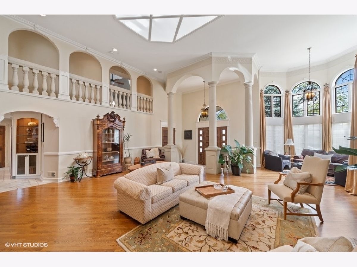 Magnificent custom built beauty in desirable Southwest Woods for those who appreciate the finest of finishes, quality of workmanship, attention to detail, and smart home design!! Be wowed as you enter the stunning 2 story foyer and living room with classic architectural details, palladian windows, 2 story pillars, intricate moldings, arched doorways, premium wrought iron railings and spectacular 2nd story balcony with a filtered skylight ceiling! Custom hardwood floors, cornices, millwork and built-ins throughout. Kitchen boasts cabinets with pull out drawers, heated granite breakfast bar, Thermador SS double oven range w/grill & griddle combo, convection & proofing feature, Bosch dishwasher, custom range hood w/quiet fan and water filtration system under the sink. Enjoy the Media/Family room with a remote retractable 95" HD projection screen, built-in speakers, remote control drapes, sound absorbing walls and coffered ceiling for an Amazing home theater viewing and sound experience! Great family room space with built-ins galore! Whole house surround sound speaker system! French doors welcome you to the Master bedroom suite w/vaulted ceiling, and gorgeous master bath with travertine, Jacuzzi tub, steam shower, hidden bidet and huge walk-in closet w/built in cabinets & shelves. Finished basement features radiant heated ceramic floors, wall and ceiling designer paint with a Tuscan theme, large wet bar, wine cellar, 5th bedroom or game room and full bath. Walk up attic space is finished with parquet flooring for extra storage. Smart house design includes heated snow sensor melting system on the brick driveway and brick patio, quiet exhaust fans, sound insulated main floor powder room, central drain vac system, instant hot water, and lawn sprinkler irrigation system on both front lawn and back yard. Two car heated attached garage and brick patio with a lovely newer gazebo. New cedar fence in 2019, plus a storage shed. Most of the house was recently professionally painted! New Lennox furnace and A/C in 2018, all ceiling fans replaced in 2018 and all updated electronics. Excellent location in award winning Washington, Lincoln, Maine South High School district. Close to schools, parks, forest preserve, expressways, O'Hare airport, shopping and all amenities. A remarkable home!! Too much to list! Must see to appreciate!!