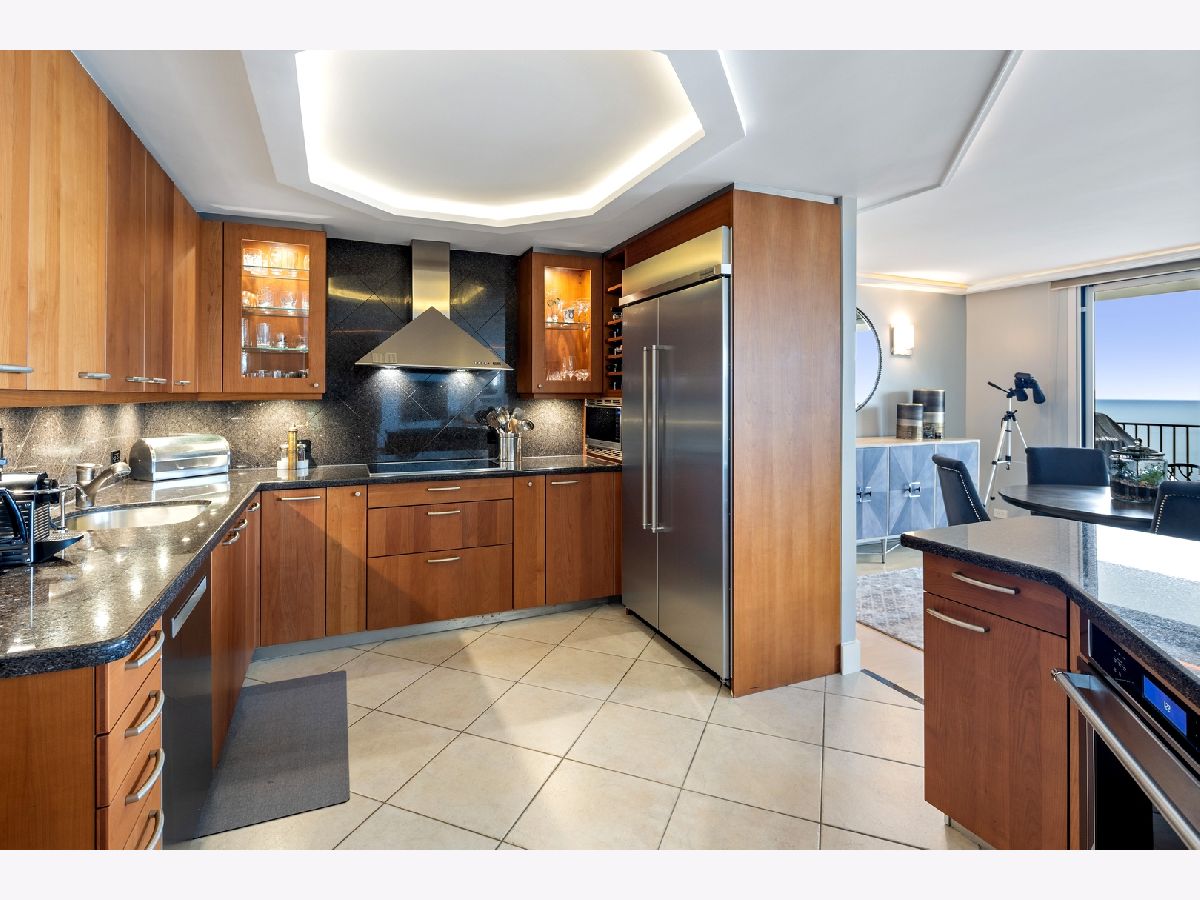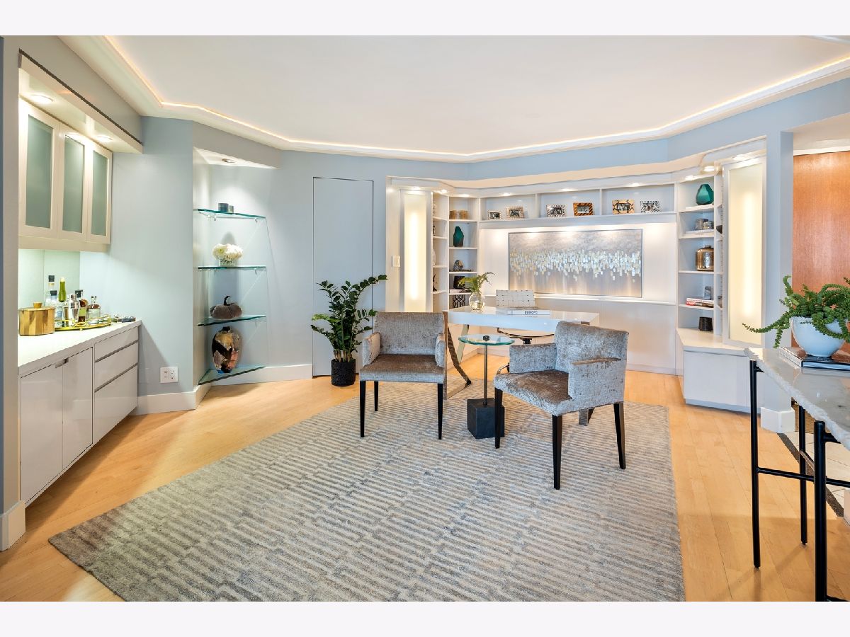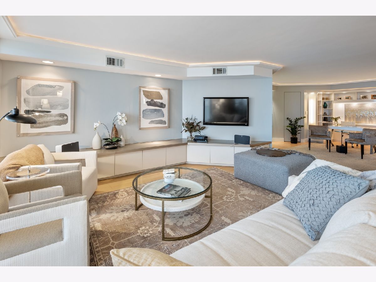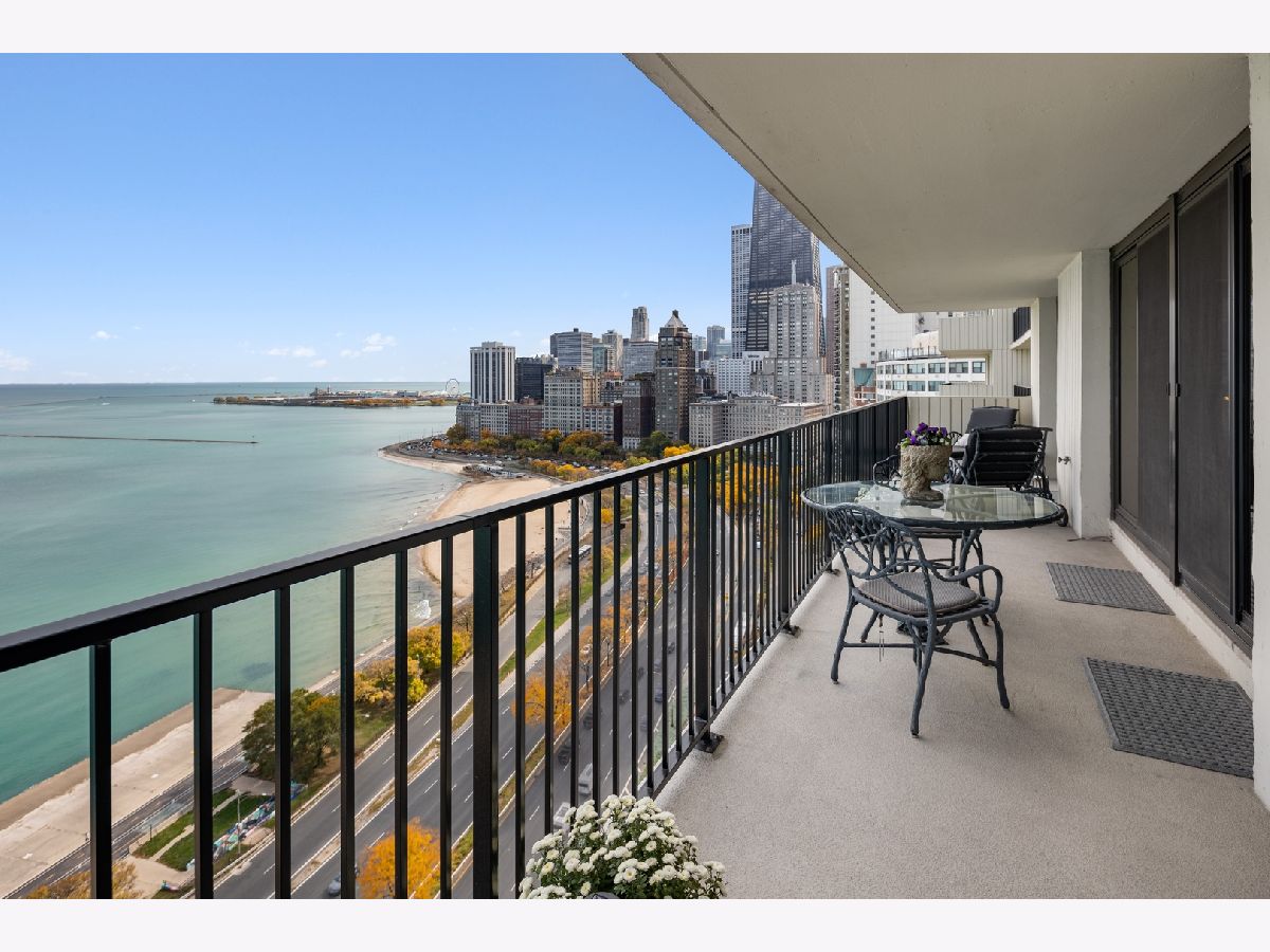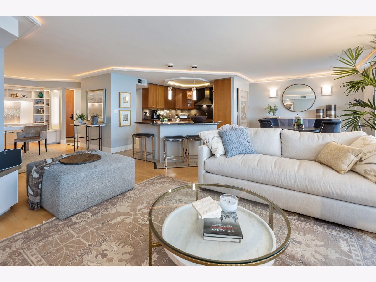 "Location, Location, Location" is everything in real estate. This beautiful home has it all. Located in the heart of the Gold Coast, it has unobstructed views of Lake Michigan from the 42-foot balcony. The morning sun pours in through four new large sliding glass doors flooding the home with light. Night time is also spectacular. The moon sends beams dancing across Lake Michigan right into the heart of this home. The open floorplan allows you to enjoy views of the lake and all the activity no matter where you are. This two bedroom was changed to a LARGE one bedroom to provide more entertainment space. (It can be easily changed back.) The home's beautiful furnishings can be sold with the unit. The building has it all: garage. balconies, a new party room, two large roof terraces, exercise room and a large indoor pool with changing rooms. Plus, you're walking in distance to restaurants, shopping and entertainment.