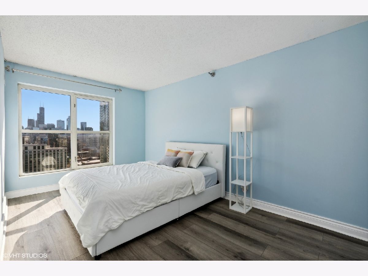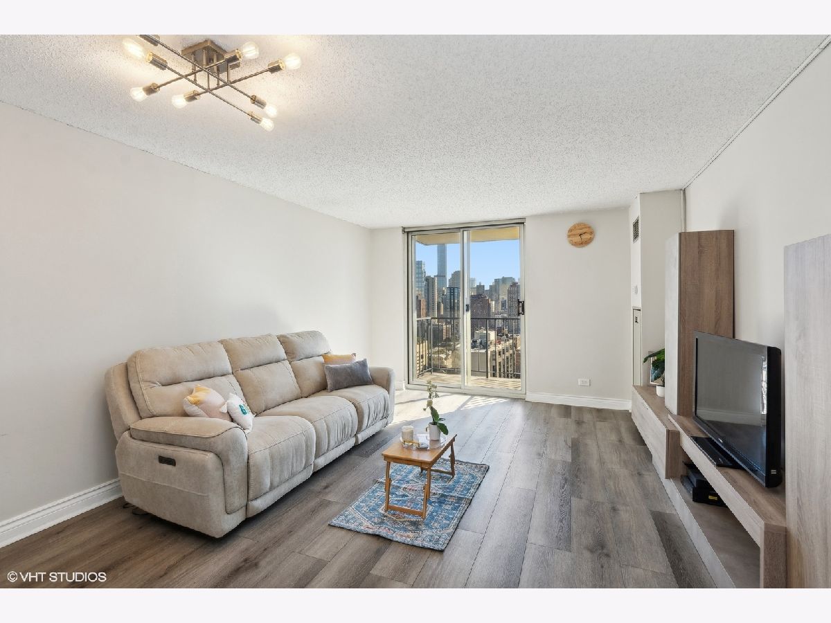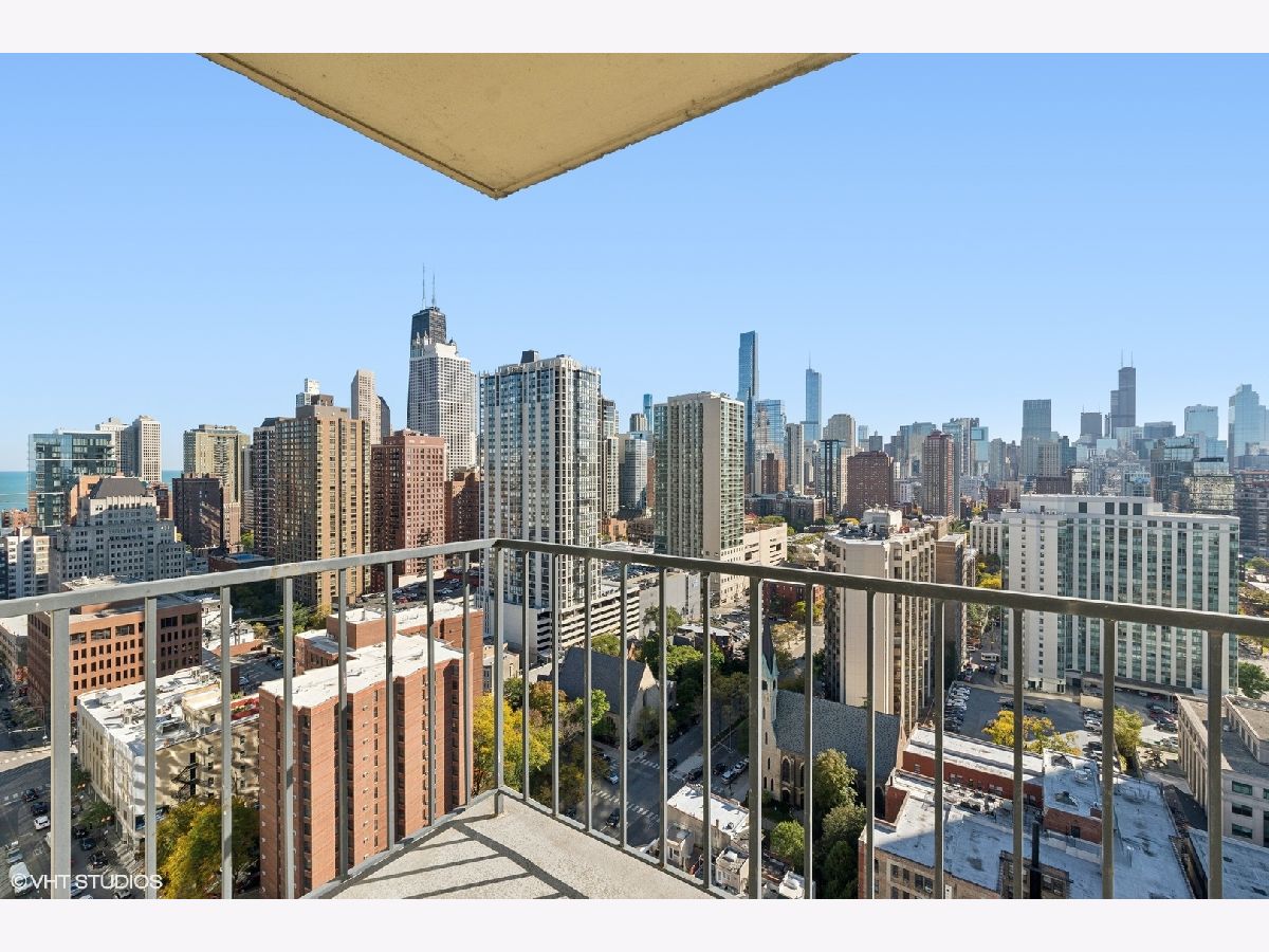 Gorgeous skyline views from this SOUTH FACING high, 26th floor 1 bedroom condo at the LaSalle Private Residences. Perched on the edge between two of Chicago's most desirable neighborhoods - Old Town and the Gold Coast. This bright and sunny home is a true 1Bedroom layout with hardwood flooring throughout, an oversized bedroom with a large double closet, a modern kitchen with stainless steel appliances, granite countertops and maple cabinetry with an overhang breakfast bar/extra seating. New marble bathroom with shower/tub combo. Great closet/storage space throughout the unit. This desirable high-rise unit offers jaw-dropping south facing skyline views, a private balcony and a deeded GARAGE parking space INCLUDED. This full amenity building offers unbeatable convenience with 24-hour door staff, a covered circle entry drive, fitness center, bike storage, dry cleaning and laundry room. The building is pet friendly and investor friendly with reasonable assessments that include internet, cable, heat and AC - only electric bill each month. Enjoy everything this bustling area has to offer - from the endless dining and nightlife options, 5-minute walk to The Lakefront and two Farmer's Markets. Very efficiently laid out space works great for working from home and/or commuting with the convenient CTA options right outside the door.