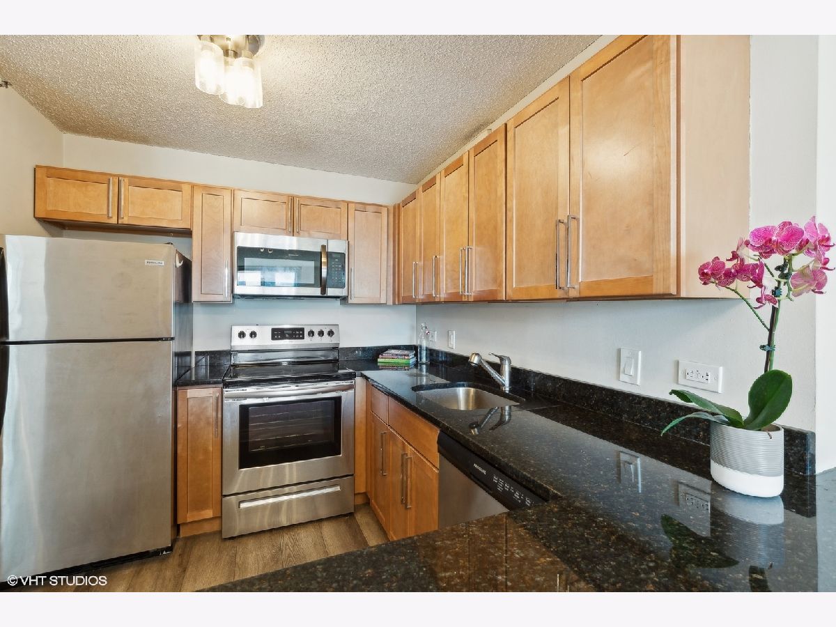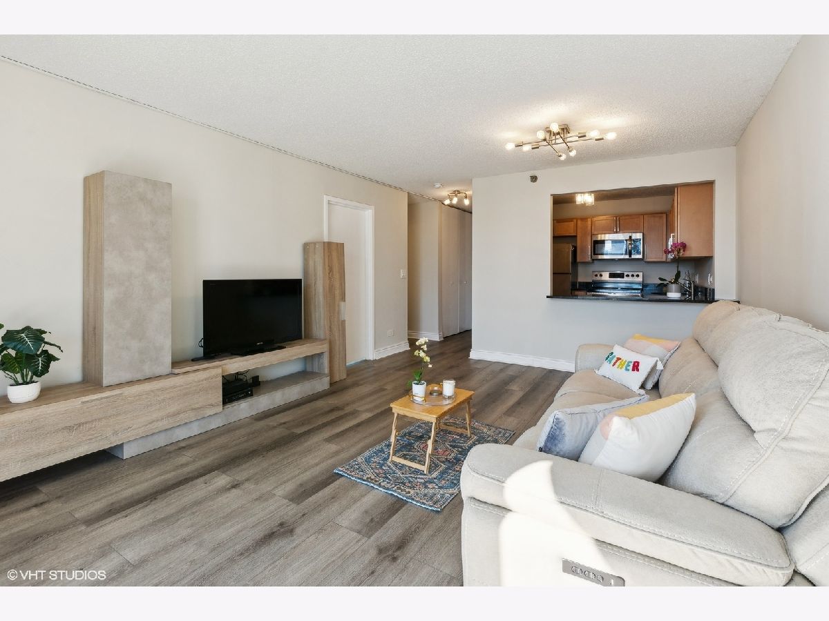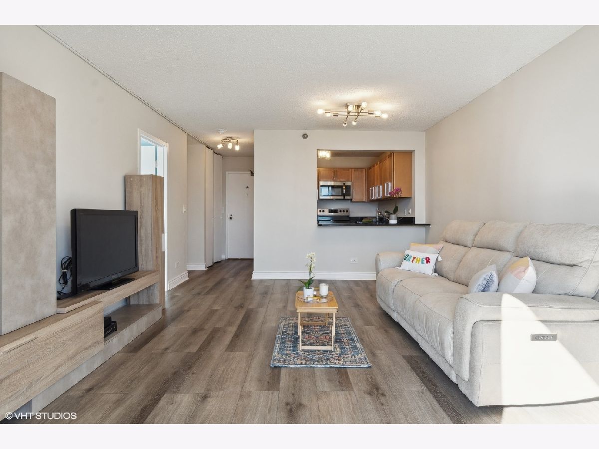 Gorgeous skyline views from this SOUTH FACING high, 26th floor 1 bedroom condo at the LaSalle Private Residences. Perched on the edge between two of Chicago's most desirable neighborhoods - Old Town and the Gold Coast. This bright and sunny home is a true 1Bedroom layout with hardwood flooring throughout, an oversized bedroom with a large double closet, a modern kitchen with stainless steel appliances, granite countertops and maple cabinetry with an overhang breakfast bar/extra seating. New marble bathroom with shower/tub combo. Great closet/storage space throughout the unit. This desirable high-rise unit offers jaw-dropping south facing skyline views, a private balcony and a deeded GARAGE parking space INCLUDED. This full amenity building offers unbeatable convenience with 24-hour door staff, a covered circle entry drive, fitness center, bike storage, dry cleaning and laundry room. The building is pet friendly and investor friendly with reasonable assessments that include internet, cable, heat and AC - only electric bill each month. Enjoy everything this bustling area has to offer - from the endless dining and nightlife options, 5-minute walk to The Lakefront and two Farmer's Markets. Very efficiently laid out space works great for working from home and/or commuting with the convenient CTA options right outside the door.