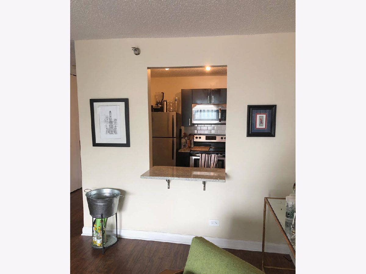 Gorgeous skyline views from this SOUTH-FACING, light filled 1 bedroom condo at the LaSalle Private Residences! This renovated space features all wood flooring and neutral paint colors. Updated kitchen has hardwood cabinets with espresso finish, SS appliances and beautiful granite countertops with a breakfast bar open to living room. King sized bedroom has space for a desk and dresser. Great closet space. Marble tiled bath with espresso finishes and full sized tub. Private balcony with city views - great for grilling and enjoying the view. Unbeatable Old Town/Gold Coast location - steps to Wells St, Division, and Oak/Rush. Red Line train stop and LaSalle bus right outside the door - easy walk to lake front path. Building has a welcoming entry perfect for drop offs and deliveries. The 24/7 door staff is amazing. On site laundry room, fitness center and dry cleaners offer convenience. Low monthly assessment includes Internet, heat, and AC. You only pay electric. Healthy association with over $1mil in reserves. Investor friendly. Pets ok. Reserved Parking included!!